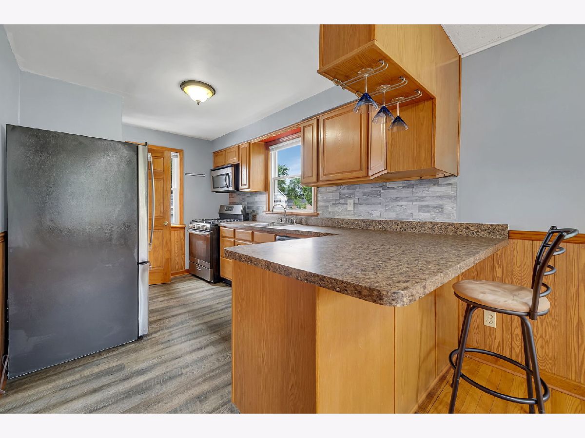 MULTIPLE OFFERS RECEIVED Charming 3-Bedroom CAPE COD with FULL FINISHED BASEMENT and 2 CAR GARAGE. This well-maintained home features UPDATED KITCHEN with stainless steel appliances and LVT flooring. Bathroom updated has new vanity and sink and modern updates. Original Hardwood Floors on the main level. Main floor Bedroom and Bathroom. FINISHED BASEMENT is a fantastic bonus space complete with a rec room, bar, and laundry room. Outdoor Space: FENCED YARD, shed with playhouse, and patio area with GAZEBO Shade Structure perfect for entertaining or relaxing after a long day. Benefit from RECENT IMPROVEMENTS including new trim and doors (2019), windows (2020) and a roof (2021) sump pump, furnace (2015ish), kitchen floor (2024) kitchen cabinets (2014), bathroom (2022) (all dates are approximate). Don't miss out on this move-in ready gem! Contact your REALTOR to schedule a viewing and make this wonderful house your new home.
