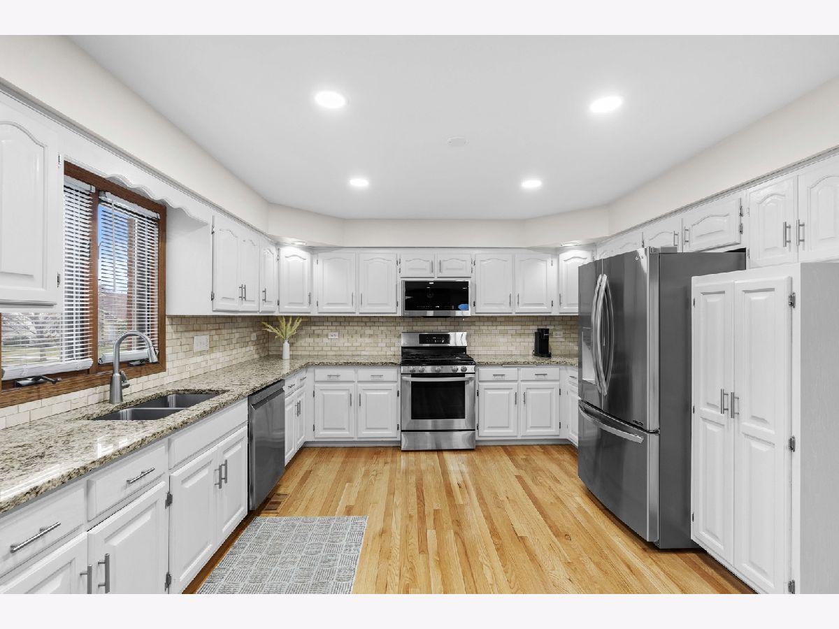 Now is your opportunity to own this absolutely stunning 5 bedroom, 2 1/2 bathroom, mostly brick, two-story home nestled on a prime corner lot in Orland Park. This is the epitome of a meticulously maintained home! BRAND NEW ROOF AND GUTTERS INSTALLED THIS YEAR! TWO brand new hot water heaters in 2022! All carpeting BRAND NEW within the last 2 years! Refinished hardwood floors in 2022! Dual HVAC systems with 1 AC and Furnace BRAND NEW in 2019! Brand new VINYL fencing in 2019! All window hardware was replaced in 2020! Walk inside and immediately you are greeted by gorgeous, gleaming hardwood floors and a two-story living room with grandiose windows providing an abundance of natural light. The large kitchen was updated in 2019 with granite countertops, white cabinetry, stainless steel appliances, modern tile backsplash, recessed lighting and an eat-in table space. The separate, formal dining room is the perfect place to host the holidays with friends and family. Enjoy your morning cup of coffee or unwind after a long day in front of the cozy, all brick fireplace in the family room with beautiful views of the private, fenced backyard. Highly desirable first floor bedroom with closet space. Main level also features a convenient first floor laundry room and powder room so guests won't need to traipse upstairs to use the restroom. Upstairs you will find the spacious primary bedroom with a stunning double tray ceiling, an additional sitting area, three closets and an attached primary bathroom. The primary bathroom features a whirlpool tub, separate step-in shower, and a dual sink vanity with granite countertops. The 3 additional bedrooms located upstairs are also a great size with tons of closet space. The second full bathroom upstairs also features granite countertops, a beautiful skylight, and a brand new shower/tub combo installed in 2023 with a grab bar for ease of access. The full, unfinished basement is awaiting your finishing touches offering endless possibilities whether you envision a home office, gym, or extra storage space. Finished 3 car garage means no fuss with snowy cars come winter time while the oversized, concrete driveway provides ample parking for guests. The fully fenced backyard is sprawling and features maintenance free Trex decking. Amazingly located near some of the best shopping, dining, schools and parks that Orland Park has to offer! You won't want to miss this one, book your showing today!