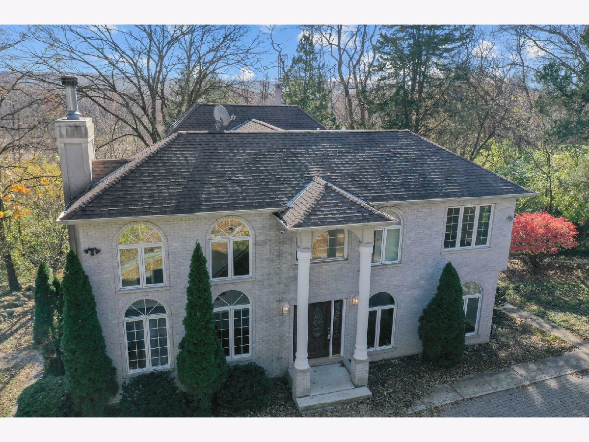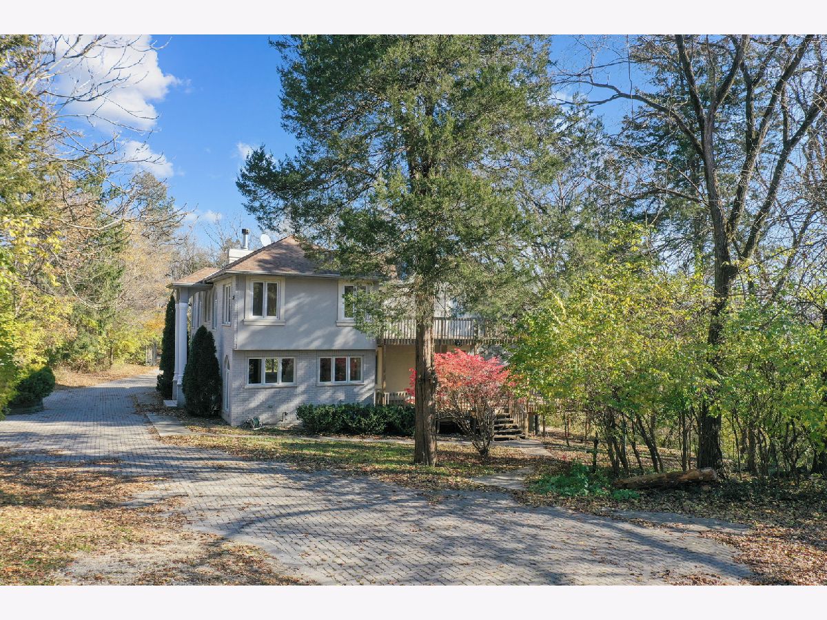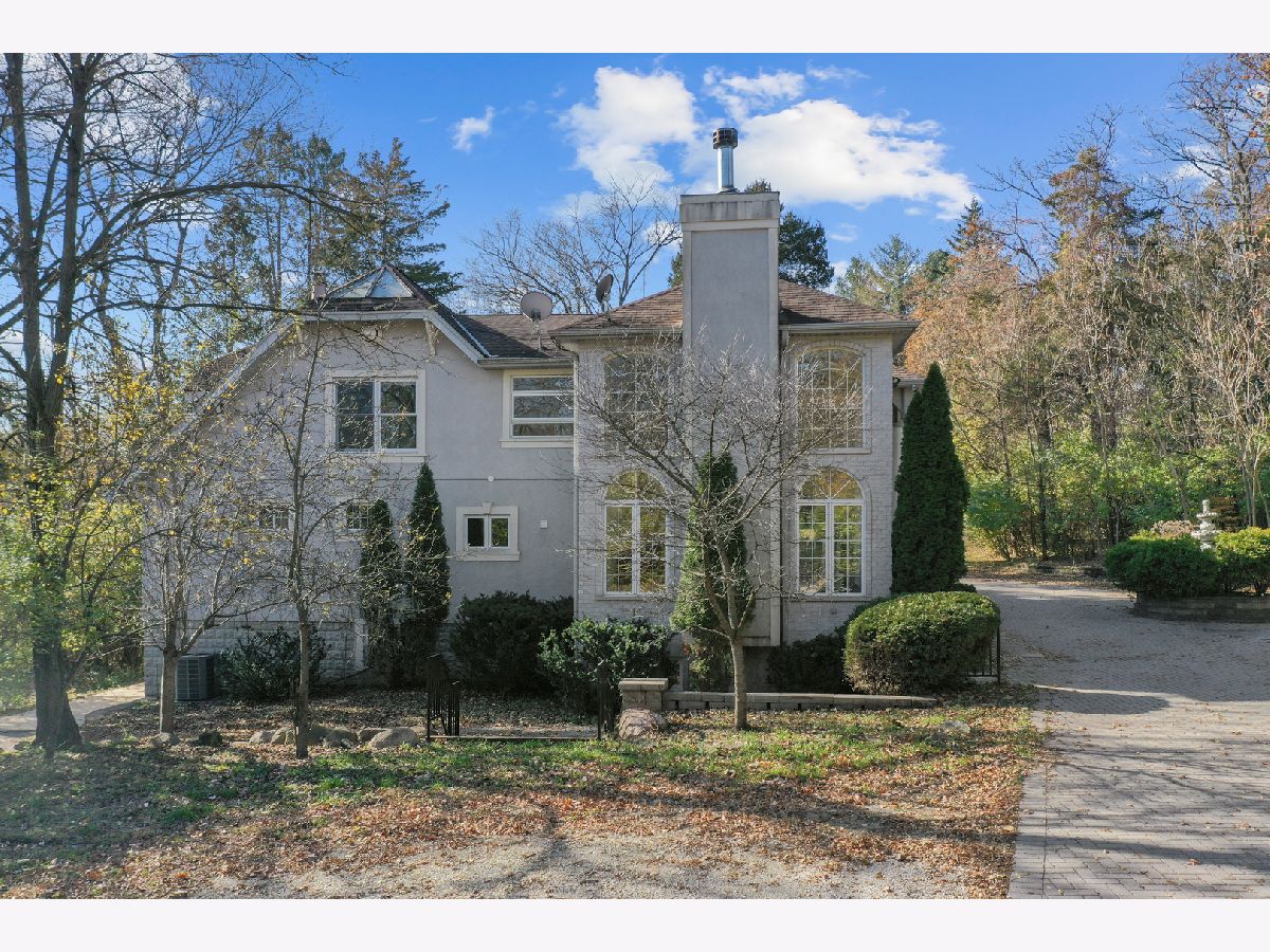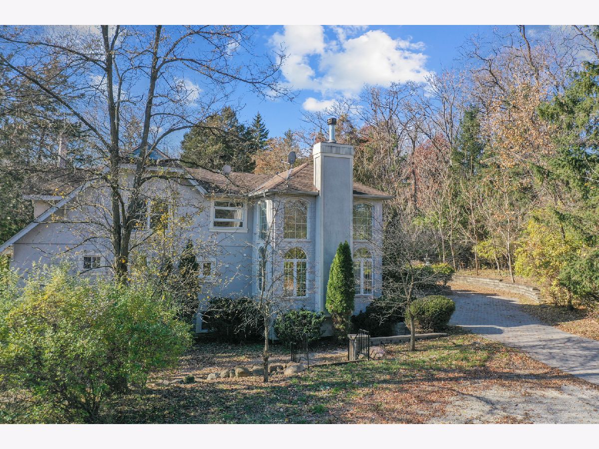 Great opportunity to own a beautifully appointed home on a wooded 4.67 acre lot. A private retreat with gated entry. Country living at its best. 5 bedrooms, 4 full and 2 half bathrooms, 3 car garage. Open floor plan and sunlit with large windows. Hardwood flooring. 2 story entry and great room with a beautiful fireplace open to the dining room.The dining room open to large deck overlooking the yard. The kitchen is open to breakfast area, has an island, stainless steel appliances, maple cabinetry and granite countertops. First floor bedroom with first floor en-suite bathroom. The luxurious primary bedroom has access to terrace overlooking the beautiful greenery and yard and ensuite primary bathroom with separate shower and tub. The second bedroom has entry to large terrace/balcony and has a fireplace. One more bedroom and a loft overlooking the 2 story great room and grand staircase. The finished lower level has a recreation room, full kitchen, plus a separate living space with bedroom, sitting room and separate walk-out entrance. Nature abounds! Great location with easy access to major roads and highways, Burr Ridge Village Center, shopping and restaurants, Lifetime Fitness and Kathy Legge Park.