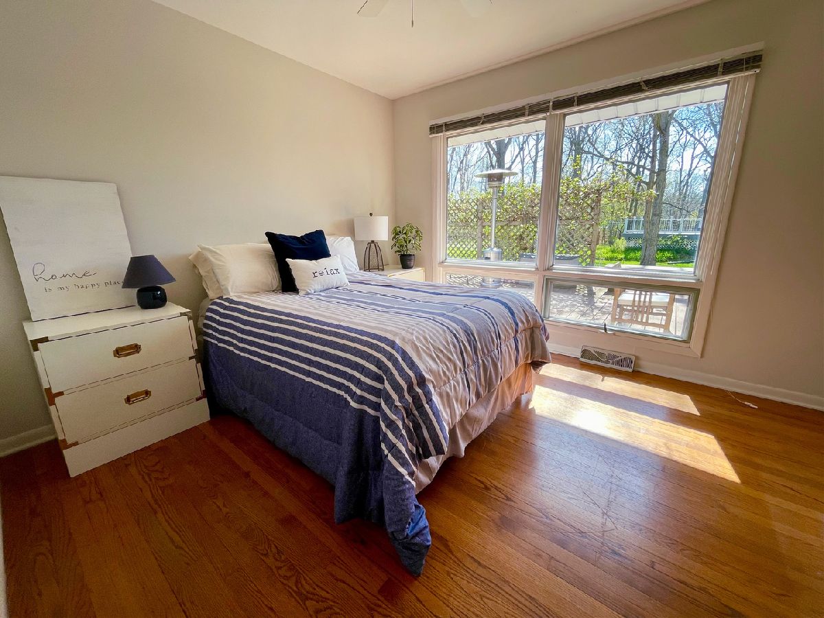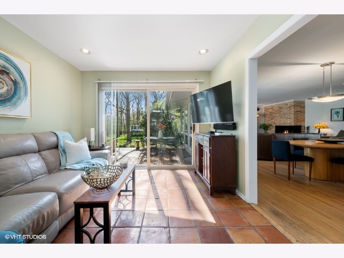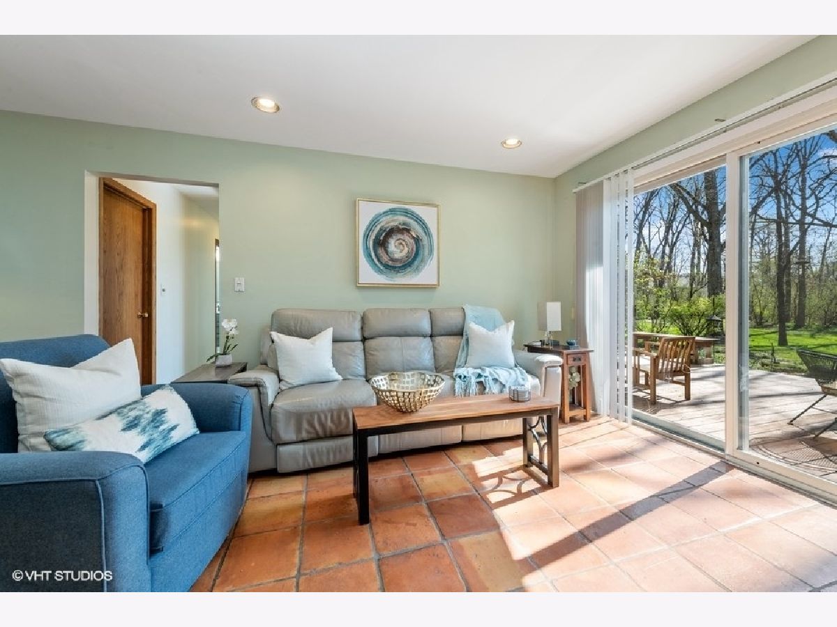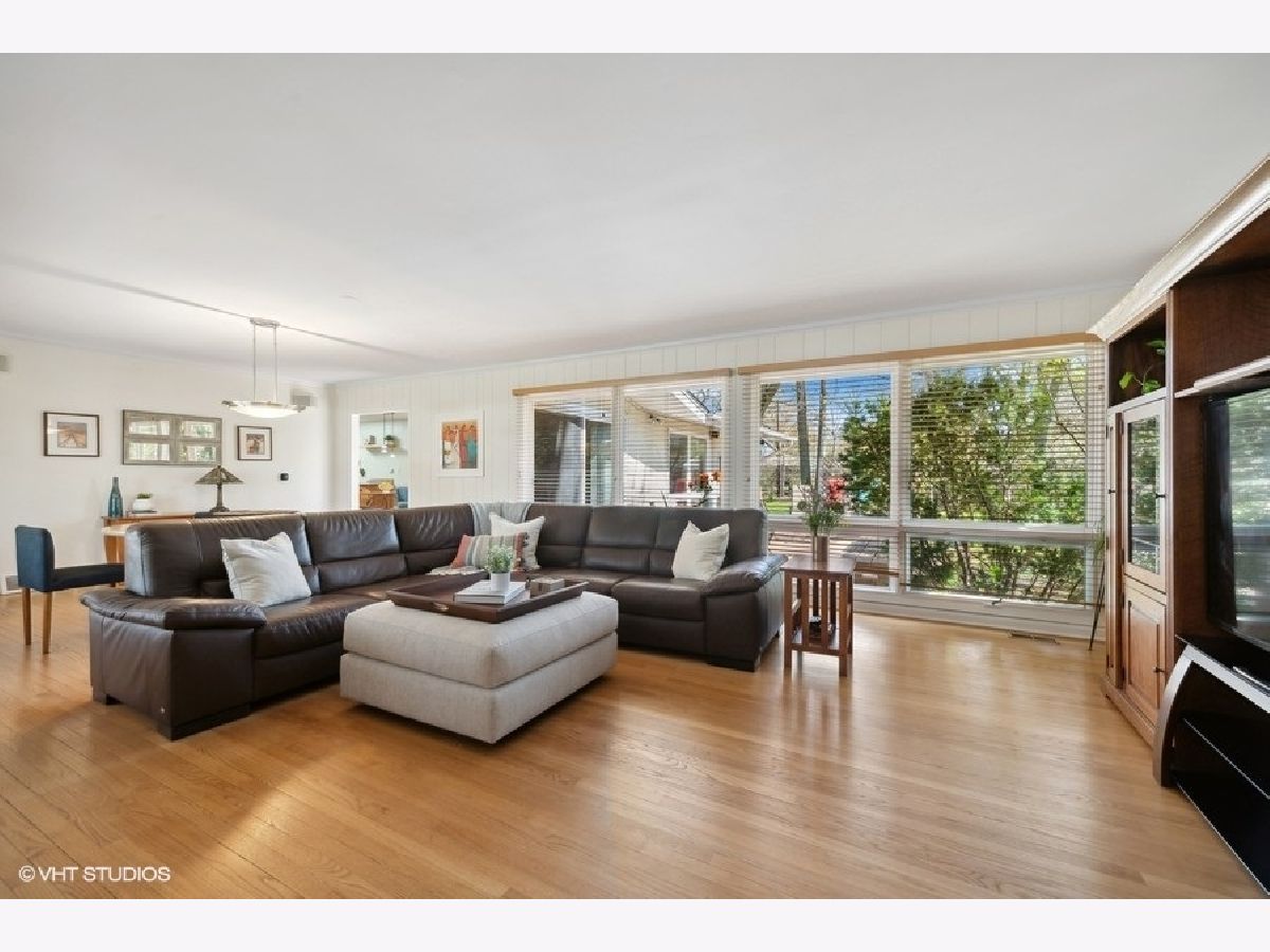 You will love this delightful ranch on a beautiful tree-filled, cul de sac lot in highly sought after AWARD WINNING STEVENSON and District 103. This 3 bedroom, 2 bathroom home boasts an open and inviting floor plan, with hardwood flooring throughout much of the space. As you enter through the front door, you are greeted by the dining area and the large living room where you can imagine cuddling up with a book near the warmth of the fireplace. The gorgeous maple kitchen with granite countertops has a wine fridge, eat-in area and a door to a deck for grilling. An adjacent sitting room opens to the expansive main deck that lines the exterior with sliders that open from two of the bedrooms. The primary suite has an updated vanity and large tub. Two more bedrooms share an updated hallway bath with a skylight bringing natural light in. The finished basement includes a rec room for hanging out, generous storage space and a laundry room. Just wait till you see the enormous lush yard with stepping stones, the perfect place to spend the summer. Updates include: Roof 2019, Water Heater 2022, Sump Pump 2022, Furnace 2012. All of this in a convenient, friendly neighborhood with easy access to schools, shopping and highways. Welcome Home!