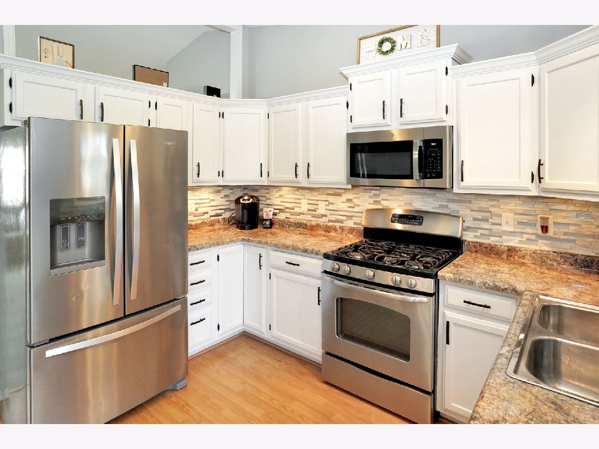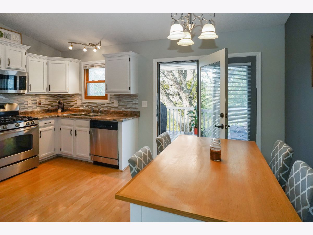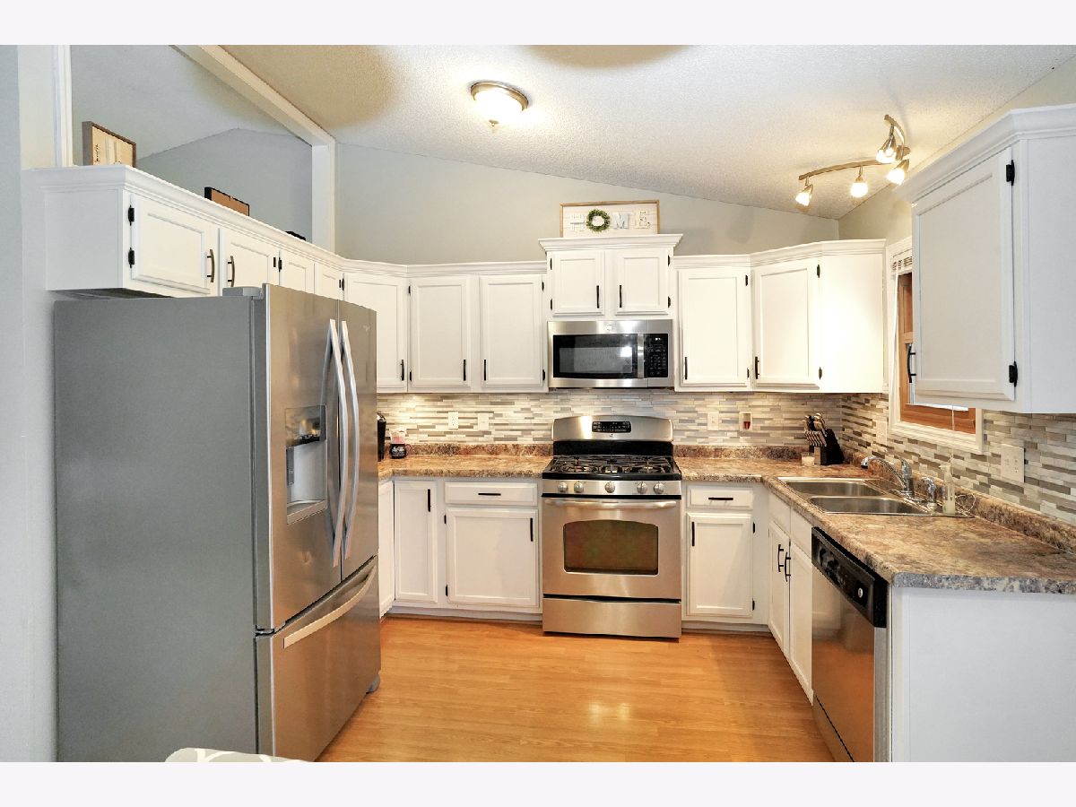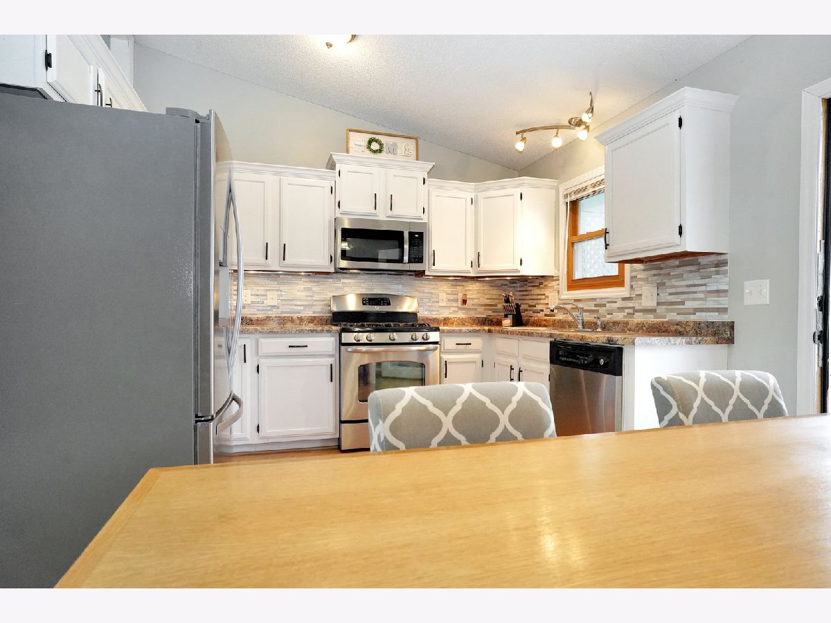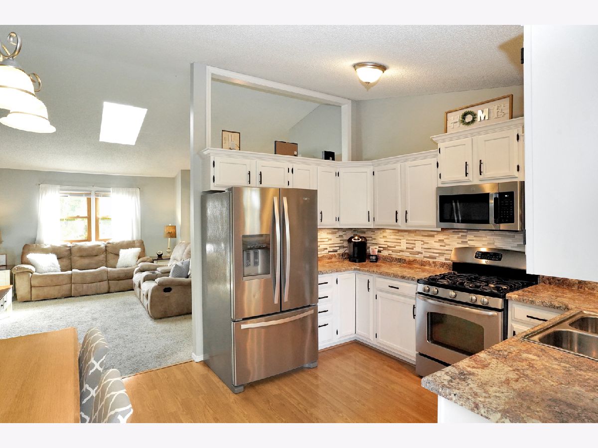 This modern updated home will have you saying yes to this address! This home has an updated kitchen with white cabinetry, new hardware, a beautiful glass mosiac tiled backsplash, gorgeous counter tops & stainless steel appliances! The home has energy efficient windows that were installed in 2013. It has an open concept with the kitchen eating area opening to the living space. The vaulted ceiling give the space amazing natural light (skylight in living room was new in 2014). The grand bedroom suite has vaulted ceilings, ceiling fan and an attached in suite full bathroom. The bathroom has a nice crisp white shower surround and a new glass door. New vanity and sink! Stunning tile work makes this a great attached bathroom! The other two bedrooms on the main floor feature vaulted ceilings and great space! The other full bath on the main floor is a show stopper! It has a magazine quality finish. With a tiled shower featuring a built in tiled seat and a recessed area for bath products. The shower is amazing. The bathroom also has vaulted ceilings and a skylight. You will be amazed by the quality and upgrades of this bathroom. The lower level has a finished large great room and a separate laundry room. The fenced backyard backs up to an exclusive private park for this subdivision. There is green space and a bit further down there is a playground in that area. The deck has a nice pergola and is freshly painted! The roof was done in 2009. Water Heater 2011. New garage door 2010. Make it yours, today!