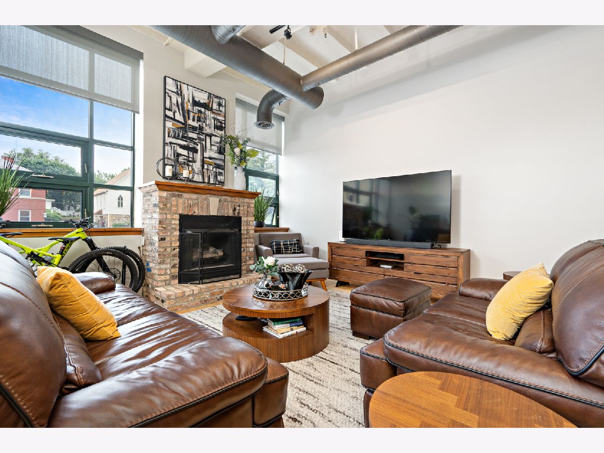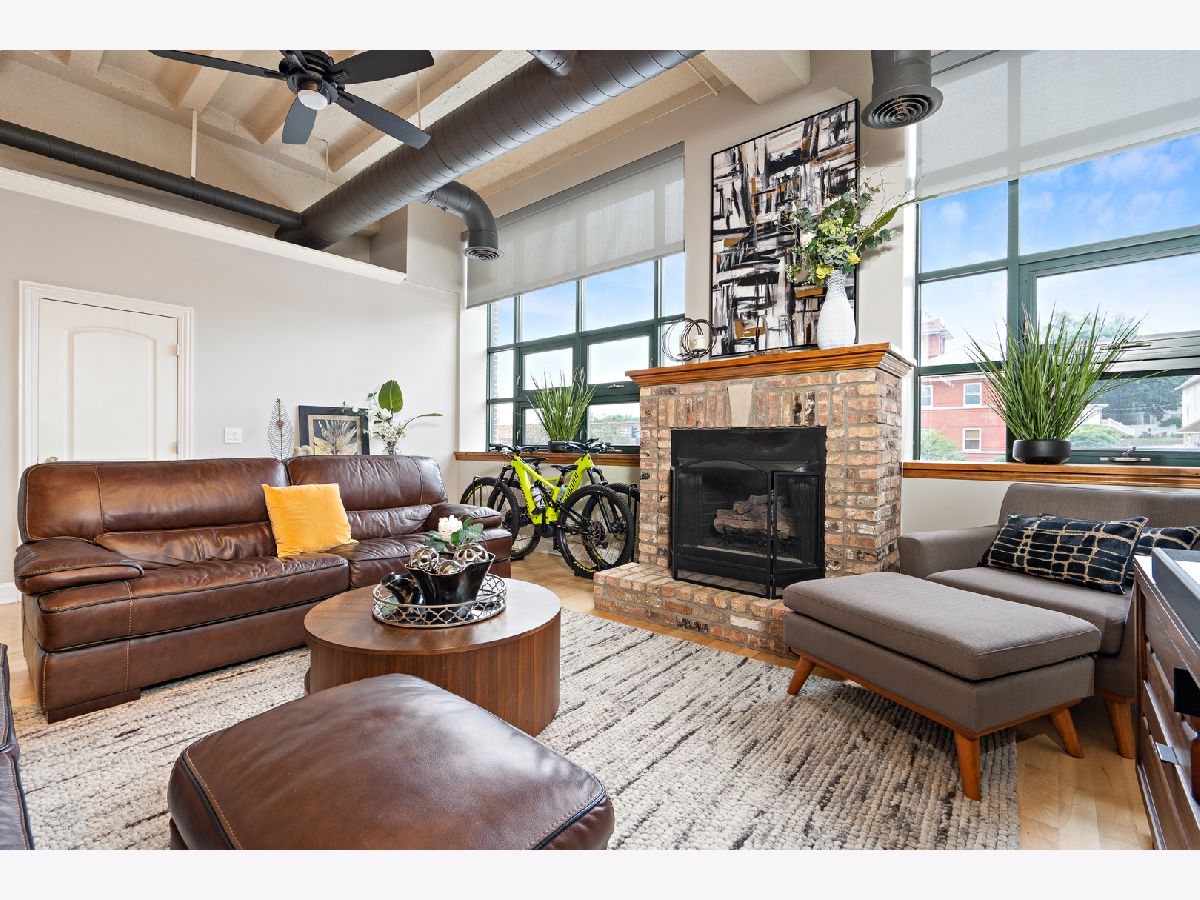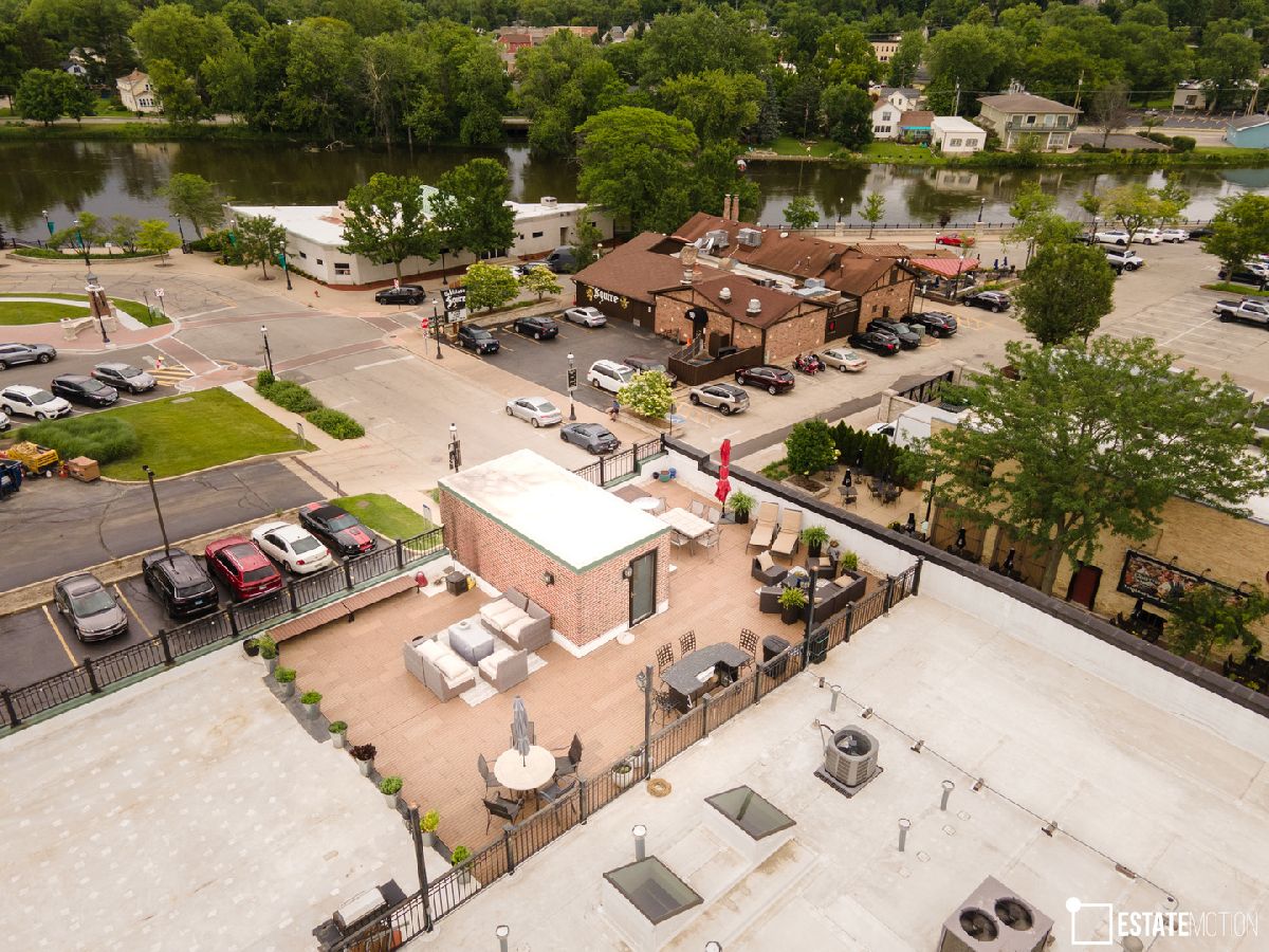 This stunning industrial style condo is move-in ready for it's next lucky owner.Open floor plan with exposed duck work with 11 ft.ceiling has enormous windows to captures the city view with solar shades and mechanical remote for your convenience.The spacious Living Room with fireplace features high ceilings and gas fireplace, perfect for a cozy evenings. The fully equipped kitchen has granite countertops and stainless-steel appliances including Viking stove and convenient breakfast bar.The Master Suite with private bath. Laundry in the unit with convenient storage shelves.All lighting has been updated including Bluetooth ceiling lights and fans!There are two parking spaces in heated garage, as you drive into the garage, it is the 3rd &4th space on the left, also there is a locked storage closet . The highlight of the building is the spectacular roof top patio overlooking the town and the river.The restaurants and pubs are literally across the street. Enjoy the serenity of living.
