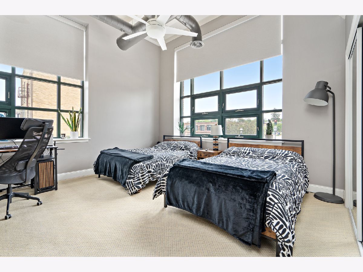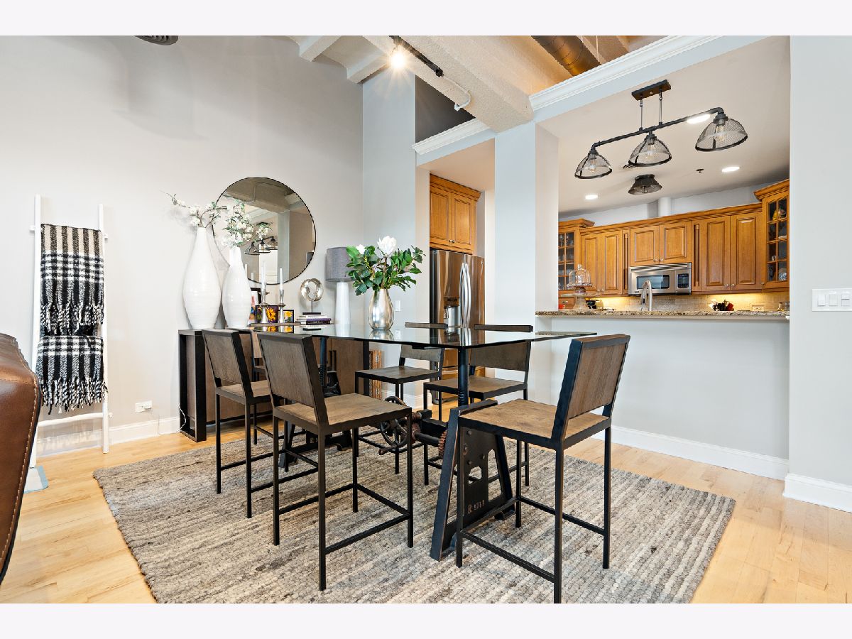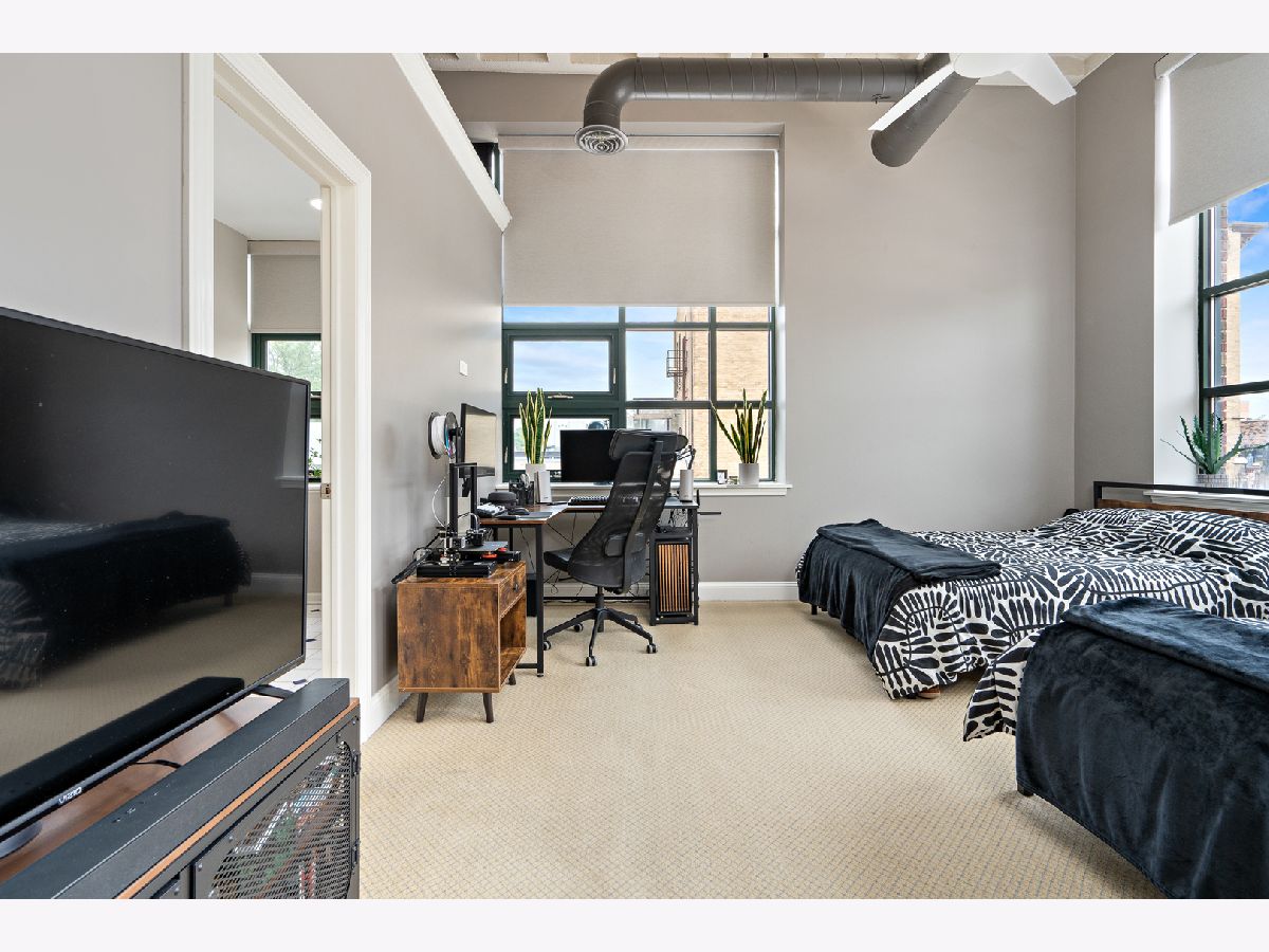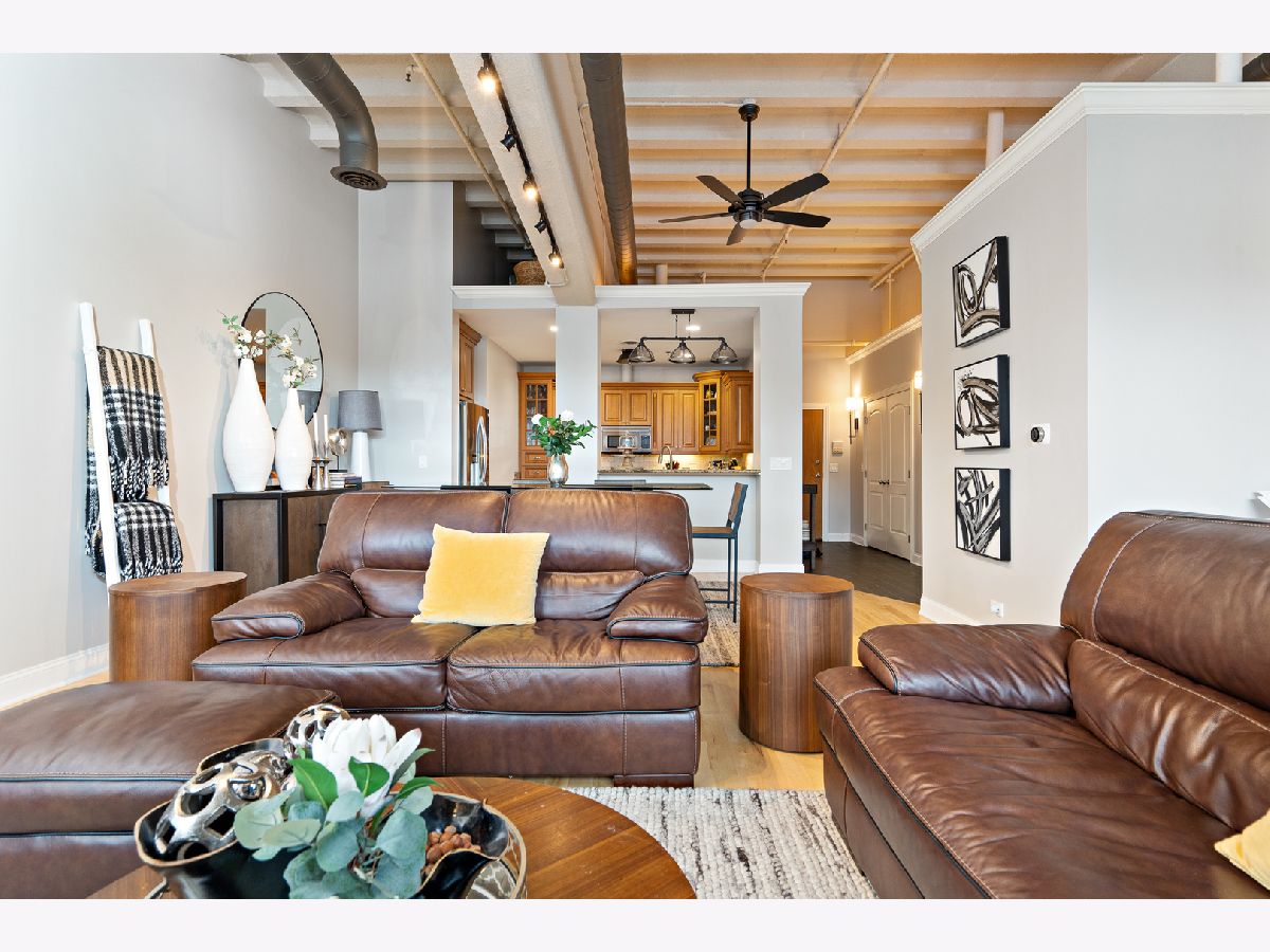 This stunning industrial style condo is move-in ready for it's next lucky owner.Open floor plan with exposed duck work with 11 ft.ceiling has enormous windows to captures the city view with solar shades and mechanical remote for your convenience.The spacious Living Room with fireplace features high ceilings and gas fireplace, perfect for a cozy evenings. The fully equipped kitchen has granite countertops and stainless-steel appliances including Viking stove and convenient breakfast bar.The Master Suite with private bath. Laundry in the unit with convenient storage shelves.All lighting has been updated including Bluetooth ceiling lights and fans!There are two parking spaces in heated garage, as you drive into the garage, it is the 3rd &4th space on the left, also there is a locked storage closet . The highlight of the building is the spectacular roof top patio overlooking the town and the river.The restaurants and pubs are literally across the street. Enjoy the serenity of living.