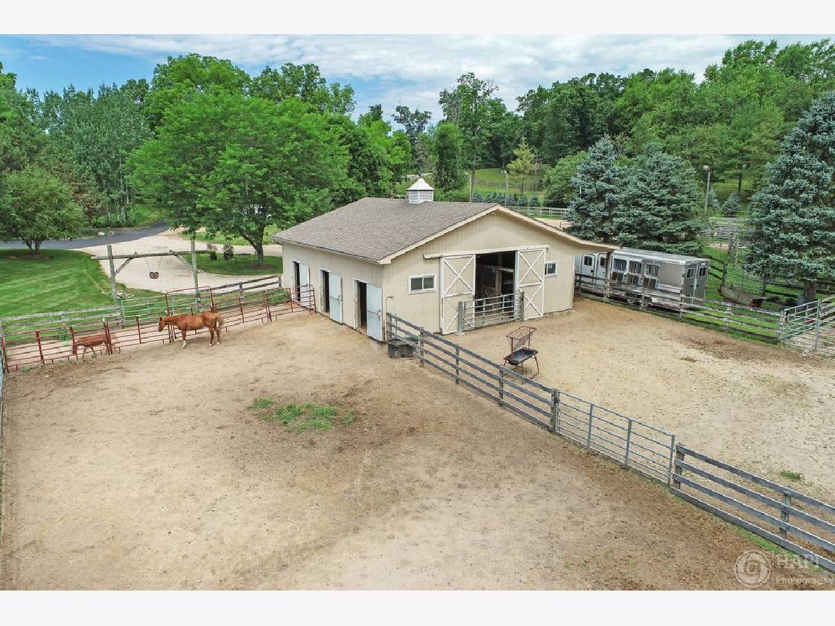 Beautiful Evan Harris built home is located on a spectacular horse property. The property includes a gorgeous country home along with a 5 stall barn, 100 x 200 outdoor arena plus pastures for your horses. You will fall in love with this 4 bedroom, 4 1/2 bath home with an open floor plan. The kitchen is open to the large dining area and the two-story great room with wood beams, soaring stone fireplace with hardwood floors all offering amazing views of the property. The private study also on the main level features custom built-ins and is perfect for a home office. You'll also enjoy relaxing in the screened-in porch overlooking the gorgeous pastures. The first-floor primary suite also overlooks the pastures offering a tray ceiling with ensuite bath featuring 2 separate vanities, soaking tub and separate shower. 3 spacious bedrooms upstairs, one ensuite and the other two with a Jack & Jill bath featuring separate vanity areas. The finished walkout basement with access to the yard has a wood fireplace to cozy up in front of, a bar area for entertaining, a billiards area, a full bath, and plenty of storage. NEW Roof! 3 car garage, professionally landscaped, the perfect home for you and your horses!