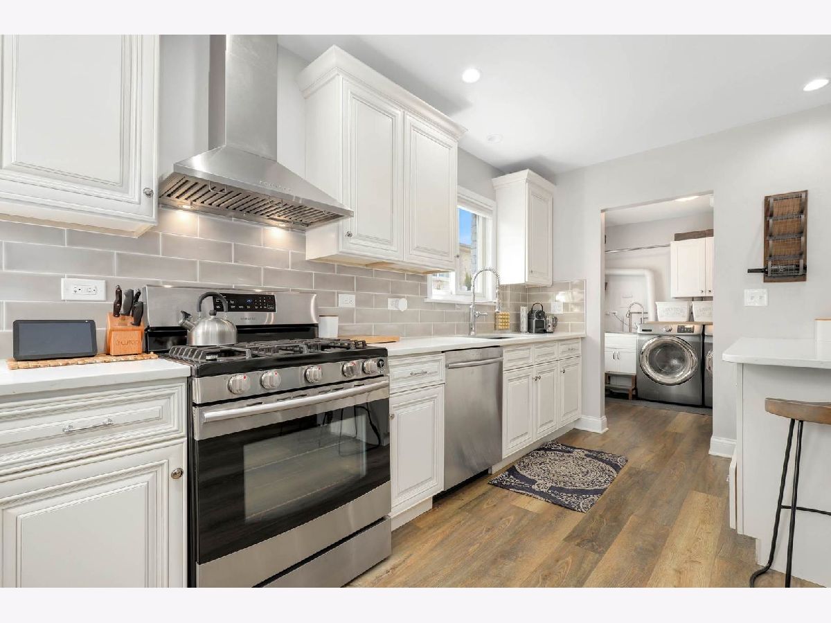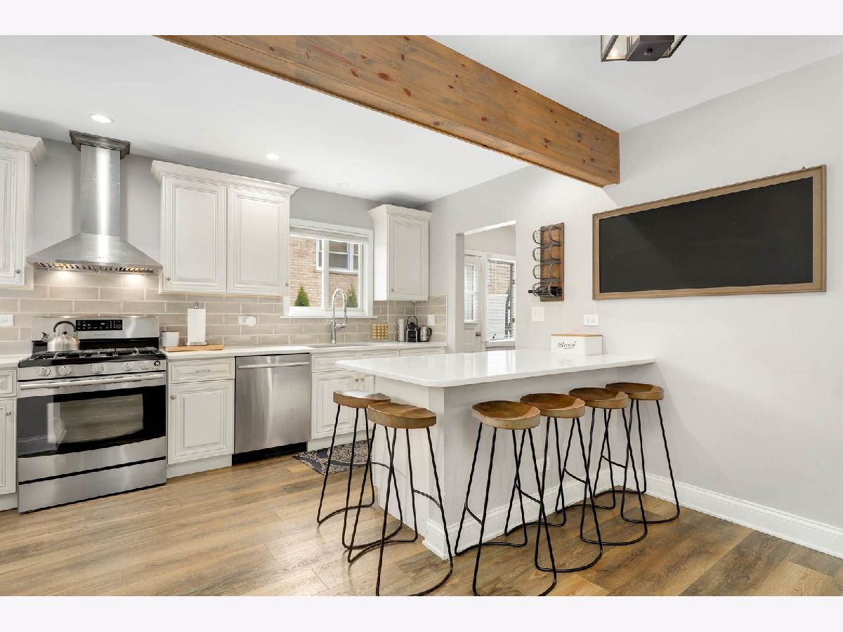 An absolute gem. The moment you cross the threshold this completely renovated (2017) home begins to unfold seamlessly from one beautiful space into another. The open concept high end kitchen is the heart of this home and greets you with white quartz marble counters, all stainless steel appliances and a spacious peninsula. Immediately adjacent to the kitchen and hidden (or not!) behind a sliding barn door are the high efficiency washer and dryer with room to fold and organize laundry. Two family bedrooms on this level share the beautiful new full bathroom (2017). The primary is on the top level and shares a bright full bath (2017)with the 3rd bedroom. The lowest level is a well equipped and comfy informal second living area. Two doors disguised as bookshelves give way to an additional office or project room perfect for getting work done with no distractions. Outside is a spacious green yard with two patios and an iconic exterior fireplace ideal for family and friends to gather around. (2020) The yard is fully fenced with a gate on the driveway to keep smaller friends and family members and their pets safely on the property. With access to beautiful Manor Park the only thing this 4 bedroom, 2 bath home in the Hoffman/Springman school district is missing, is you!