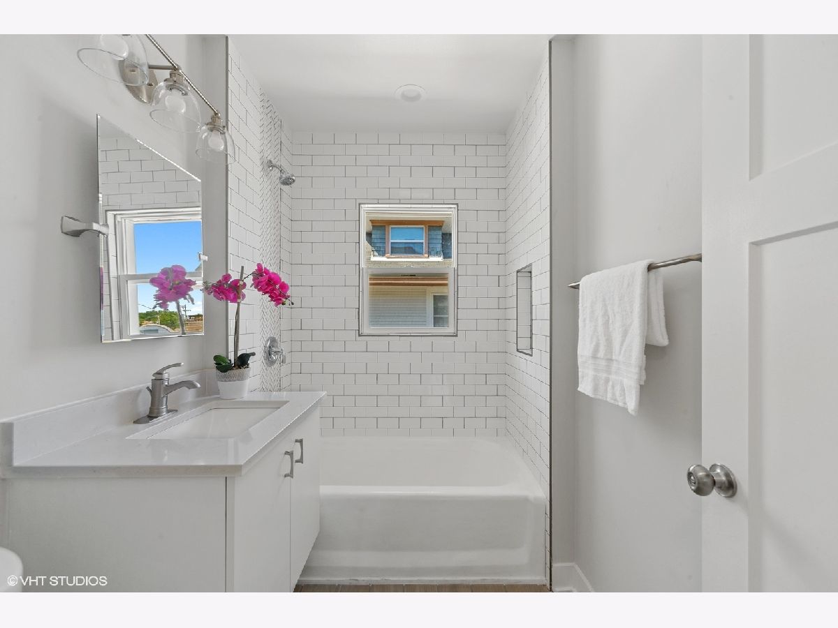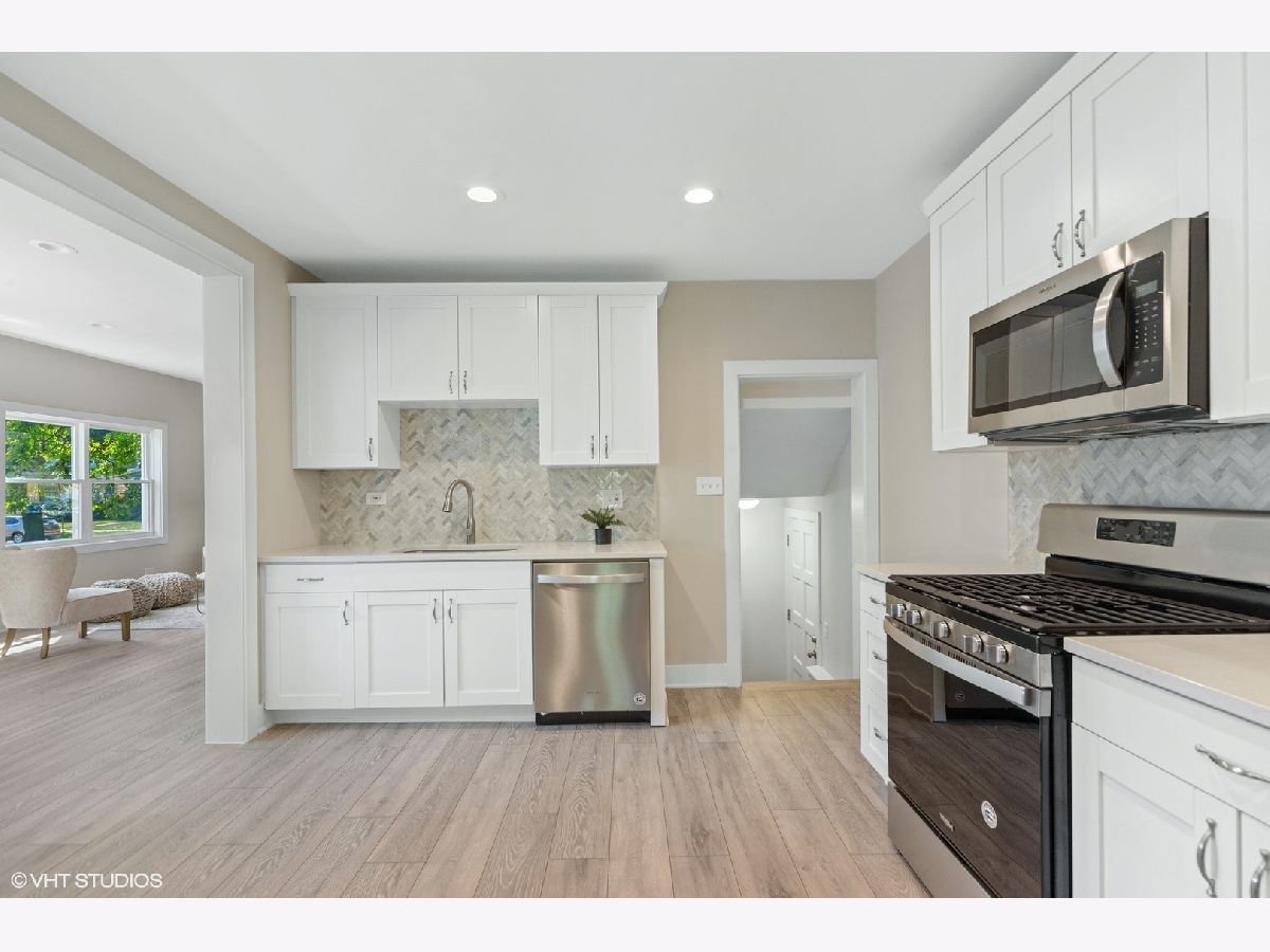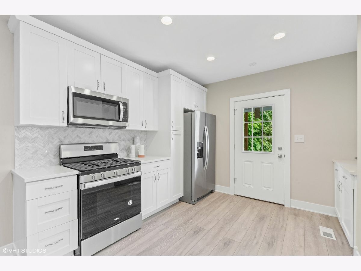 Renovated and revitalized, this quaint home features 2000+ square feet of comfort styled in todays current finishes with manufacturers warranties on all appliances, furnace, water heater, and air conditioner. An open floor plan, large sun filled windows allowing plenty of light, gray 8" plank oak floors throughout all levels, custom lighting, white shaker cabinets, Cambria Torquay countertops and stainless steel appliances are just a few of the renovated upgrades to this 3 bedroom 2.5 bath home. Full finished basement with light filled windows, a full bath with walk in shower and huge laundry room complete the finishes. Two blocks away from the CTA Green line, the location is perfect for commuters.