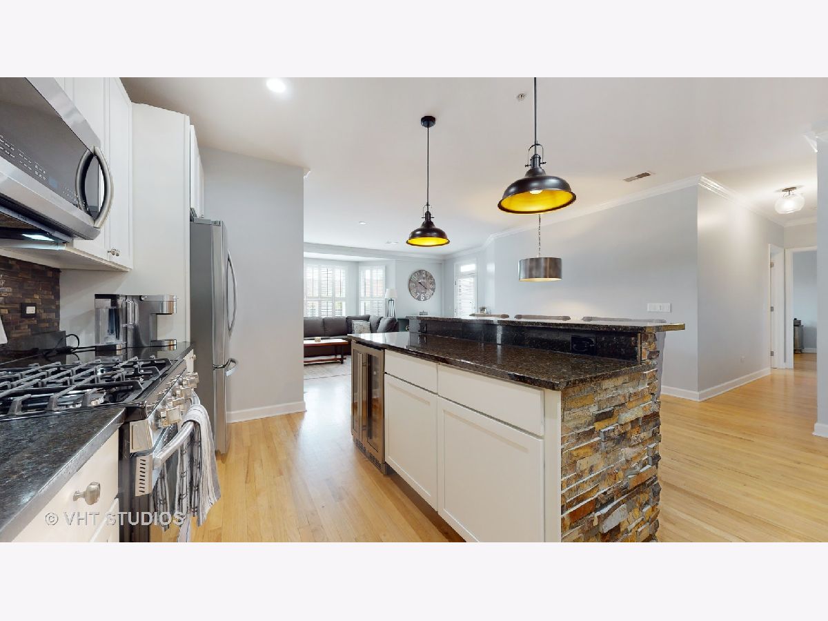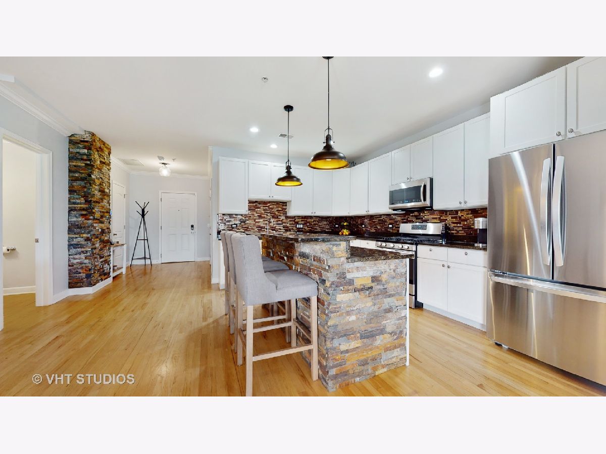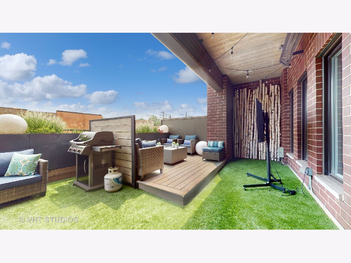 Location! This beautifully updated 2 bedroom + office, 2.5 bath condo is located in the heart of Oak Park and waiting for its new owner. Located in the Opera Club, this east facing condo features a chef's kitchen with tons of work, prep and cabinet space. A stacked stone island with a wine fridge and high-end stainless-steel appliances. The spacious living and dining rooms have a gas fireplace, custom shutters and open to an absolutely stunning professionally designed private terrace. The terrace features an amazing birch wall with lighting, a seating area, a raised deck with lovely mood lighting and a fire pit/table. There is faux grass and planters filled with colorful arrangements that will make you feel like you are on vacation. The retreat continues to the primary bedroom. The en-suite spa style primary bathroom has a Maax freestanding soaker tub, separate shower with frameless door, dual vanities and gorgeous tile work. The private and spacious office features French doors, perfect for working from home. The second bedroom has its own full bathroom as well. The laundry room is huge with side-by-side washer and dryer, cabinets for storage and a mud room area. This home also includes a heated garage parking spot. This wonderful property is steps from the Metra and CTA Green Line as well as everything downtown Oak Park has to offer including all of the restaurants, bars, shops, health clubs, parks and more. This is a special property and a must see!