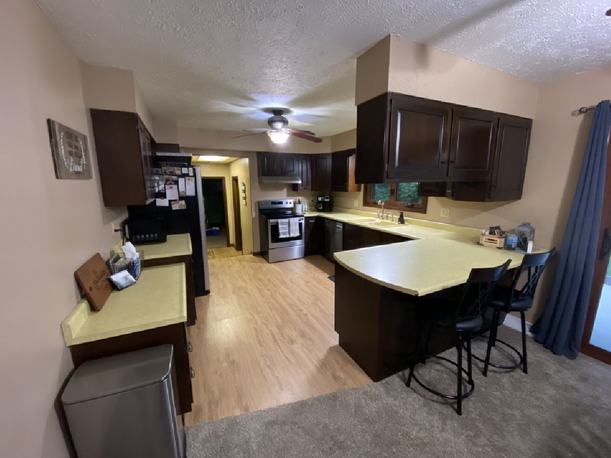 Check out this move in ready house with a private back yard that's within walking distance to the park! Brand new windows, entry doors, & sliding patio door, updated bathroom, recently updated flooring & carpet, brand new garage door opener with a two car attached garage! Enjoy summer evenings on the front porch with an extra large overhang or enjoy cozying up by the gas fireplace in the winter!