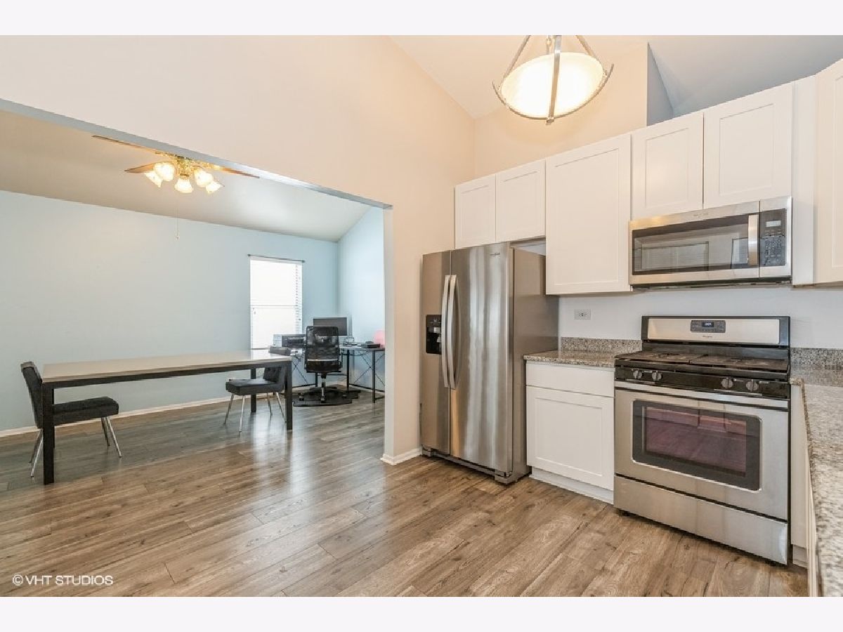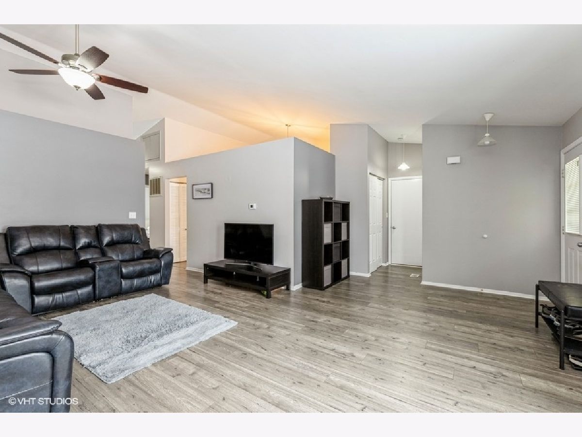 This updated ranch-style duplex two bedroom, one and half bath with walk-in closet for master bedroom is move-in ready! Kitchen completely updated in 2017 with 42 inch cabinets, all new stainless appliances, granite countertop, and stainless steal double bowl sink. Master bath has new vanity, mirror and toilet. New Pergo Max flooring in living room, family room, dining room, kitchen, half bath and hallways completed in 2017. New water heater in 2019. All new closet doors in 2021 in master bedroom, 2nd bedroom, linen closet and front hall. 2nd bedroom is also freshly painted. Two separate attic storage spaces. Screened in deck. In Vernon Hills High School District! Metra in town takes you right to Union Station. NO HOA FEES!
