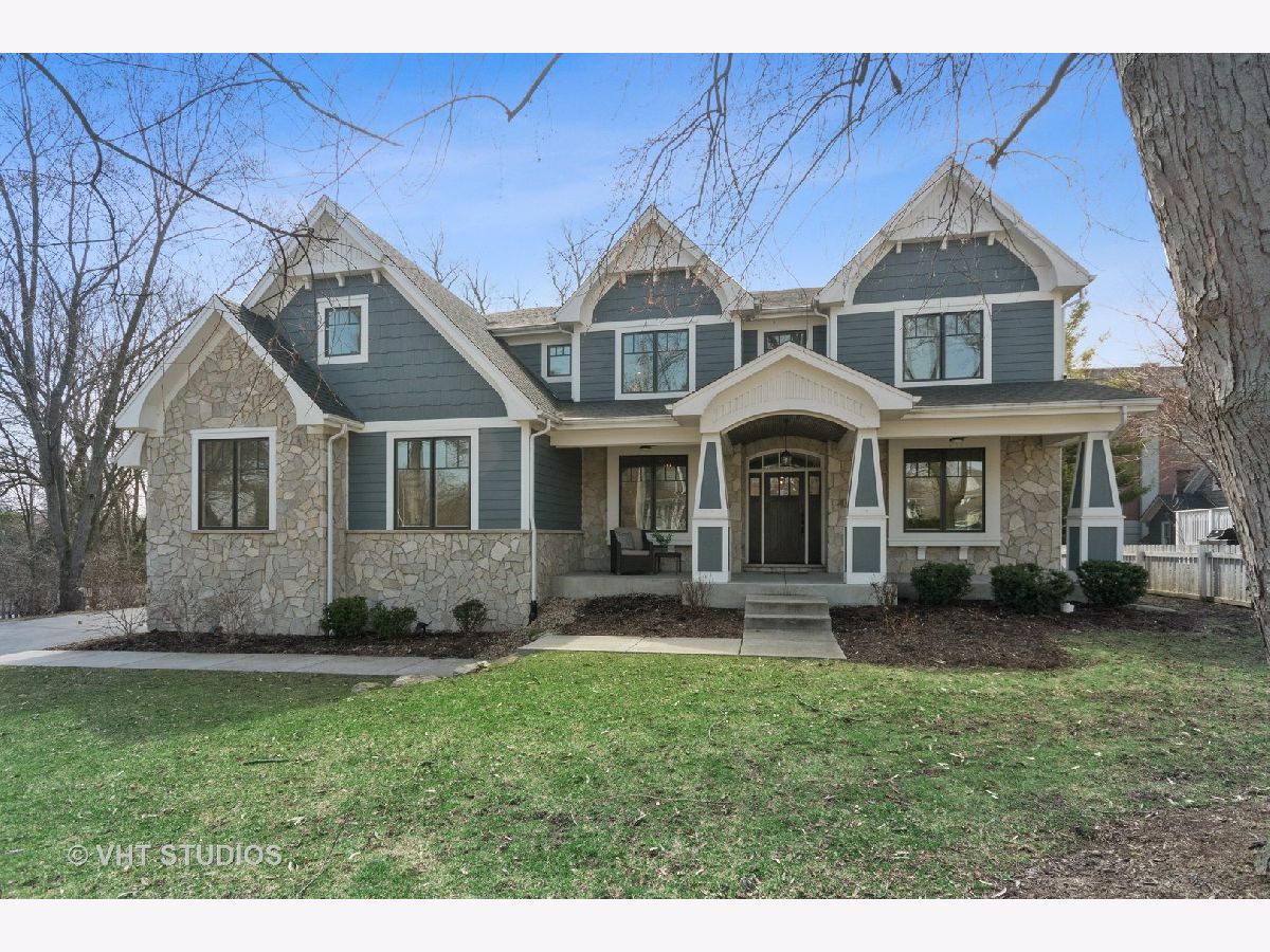 This head-turning, contemporary Craftsman home in the heart of picturesque downtown Geneva is a rare find! Ensconced on a tree-lined corner lot in the historic district, only a couple blocks walk from the Fox River and trails, boutiques and restaurants of Geneva's renowned Third Street, and the commuter train, this house has it all! Custom built, the property boasts front, side, and backyards, a lovely large front porch, a side-load 3 car garage, and a professionally-inlaid basketball net. You'll also find a large but private stunning screened-in porch, accessible from both the backyard and family room, equipped with ceiling fan and an all-season television, making it the perfect outdoor entertaining space. Inside this magnificent home, you'll find wide-plank hardwood floors, detailed millwork, custom lighting, vaulted ceilings, a wireless sound system, and character for days. The Chef's kitchen offers quartz counters, custom cabinets, an island with soft close doors & drawers, farmhouse sink, butler's pantry with beverage refrigerator and wine rack, a large walk-in pantry, and stainless steel appliances, including a six-burner professional gas range. Other unique interior features include a large and impressive mudroom with wainscot cubbies and counter area, a den/office in the front of the home with expertly-crafted wall and ceiling woodwork, a vaulted ceiling family room with a marble fireplace with gas logs, a 5th bedroom/guest suite with a private bath & walk-in closet, and a stylish but practical 2nd floor laundry room. There are 3 large bedrooms in addition to the master suite upstairs, 2 with an uber-chic jack-and-jill bath, another with a large private bath with deep-set tub; and all with enormous walk-in closets. The spacious master bedroom beckons, including sliding barnyard doors which open into the master bath oasis. Inside, marble floors, his-and-her custom sinks and cabinets, a stand alone tub with a boutique faucet, a huge shower with multiple jets, a private toilet area, and an impressive his-and-her walk-in luxuriously closet awaits. This impeccably designed and cared for home offers the quaint charm of downtown Geneva with the luxury, style, and convenience of contemporary construction. It won't last long. Agent related to the seller.