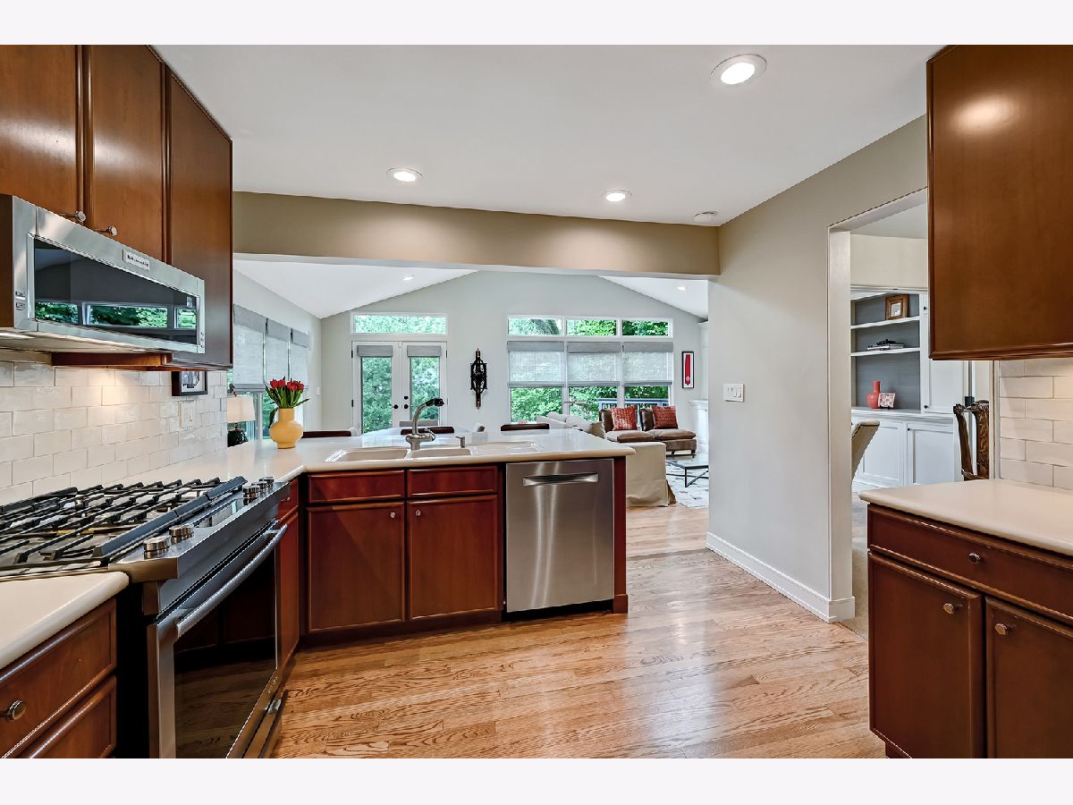 Welcome to this impeccably sophisticated mid-century home located in the beautiful Village of Hinsdale. Step inside and be greeted by a beautiful living room with fireplace, dining room with glass doors, updated kitchen, complete with modern appliances, sleek countertops and spacious breakfast bar. The kitchen is sure to inspire your inner chef to make meal preparation a breeze and enjoyable. The family room is a true highlight of this home, featuring custom built-ins and French door, skylights, multiple windows that flood the space with natural light. This inviting area is perfect for relaxing with loved ones or hosting gatherings with friends. As you explore the home, you'll be captivated by the views of the front and back yard from various vantage points. Whether you are enjoying a morning cup of coffee or simply taking in the serenity of nature, these views will surely leave you feeling refreshed and inspired. The property offers 4 bedrooms, providing private space for everyone. The two full baths are tastefully designed and offer both style and functionality. Other amenities include lower level workout area with fireplace, two car attached garage with epoxy floor, and gorgeous backyard with professional landscaping, landscape lighting and spacious deck. With its convenient location, you will have easy access to train, shopping, and dining. Don't miss your chance to make this stunning home yours-- It truly is move-in ready.