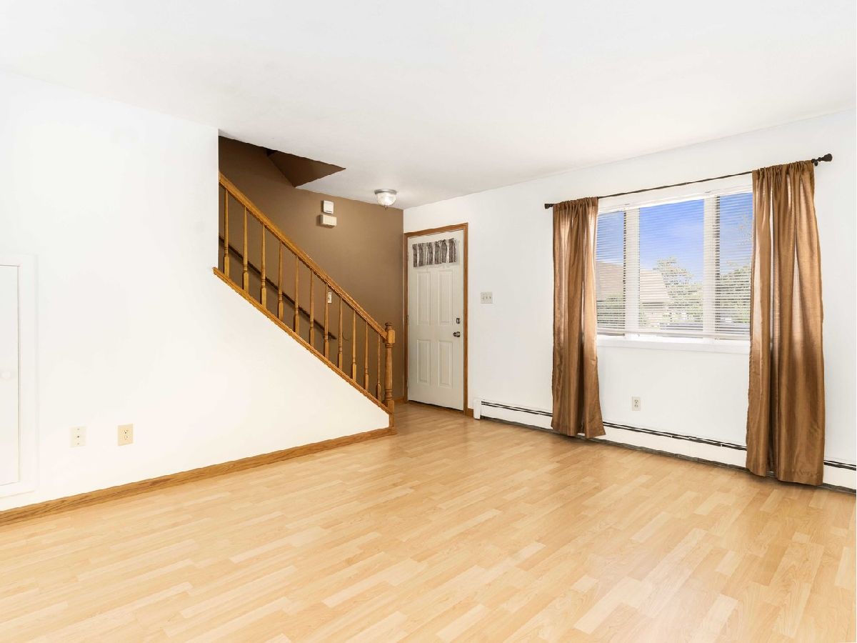 Affordable and Adorable! Move-in Ready, two-story brick condo unit. Enjoy your own private entrance. Two bedrooms and a full bath upstairs, kitchen and living room on the first floor. Kitchen offers oak cabinets, vinyl tile flooring and white on white appliances. In-unit laundry and washer & dryer included. The living room has plenty of natural lighting and offers wood laminate flooring and a storage closet. Both bedrooms are a nice size with newer carpet and ample closet space. This unit has its own storage locker complete with shelves located in the basement. There are 2 parking spots in the back of this unit. There is also close proximity to shopping, restaurants, and highways. The New Lenox Commons, Metra station, and Silver Cross Hospital are all nearby as well. The low monthly HOA includes water, gas for cooking, baseboard heat, snow removal, and lawn care. Pets up to 35lbs are allowed. This unit is being sold as-is.