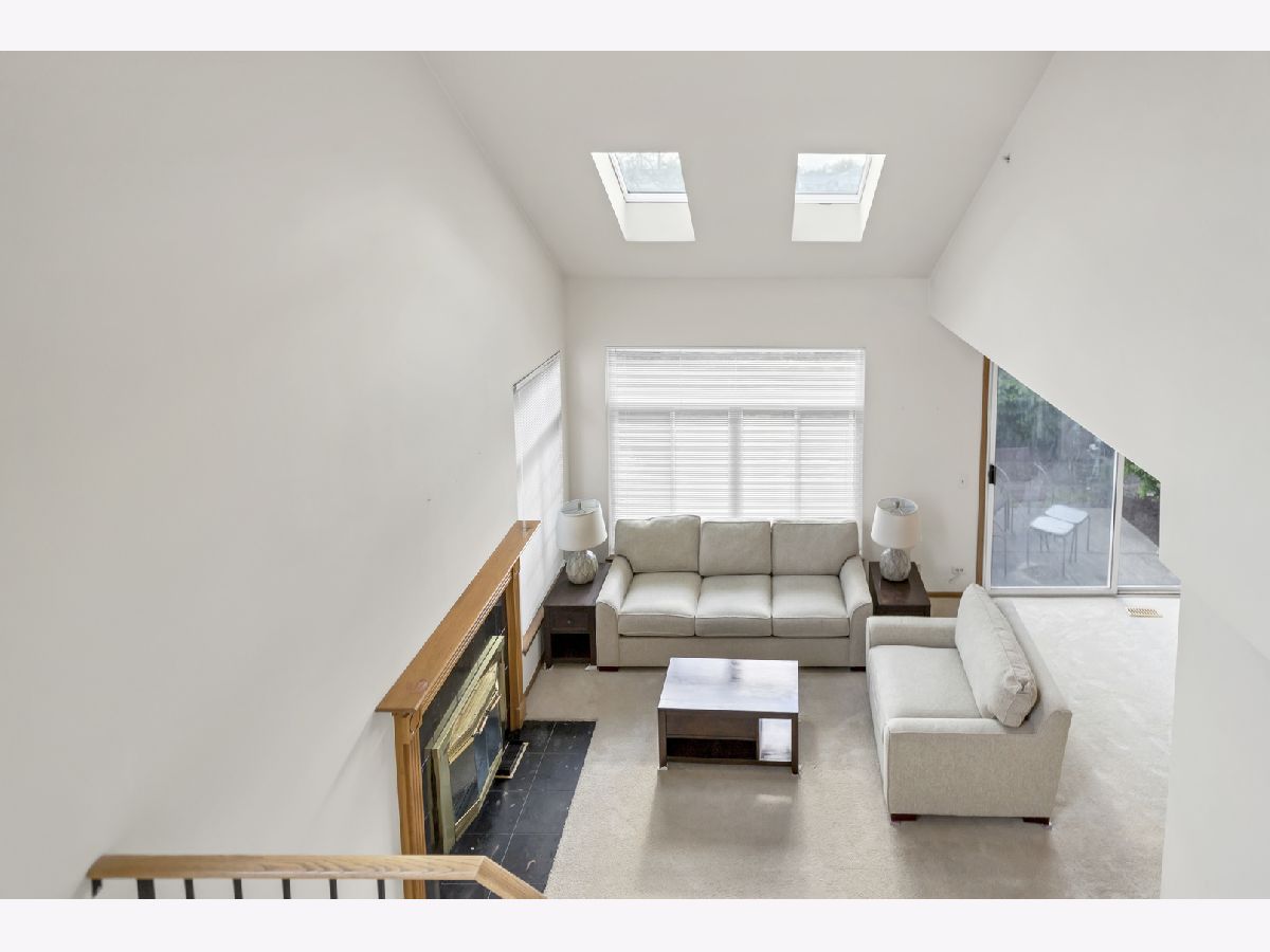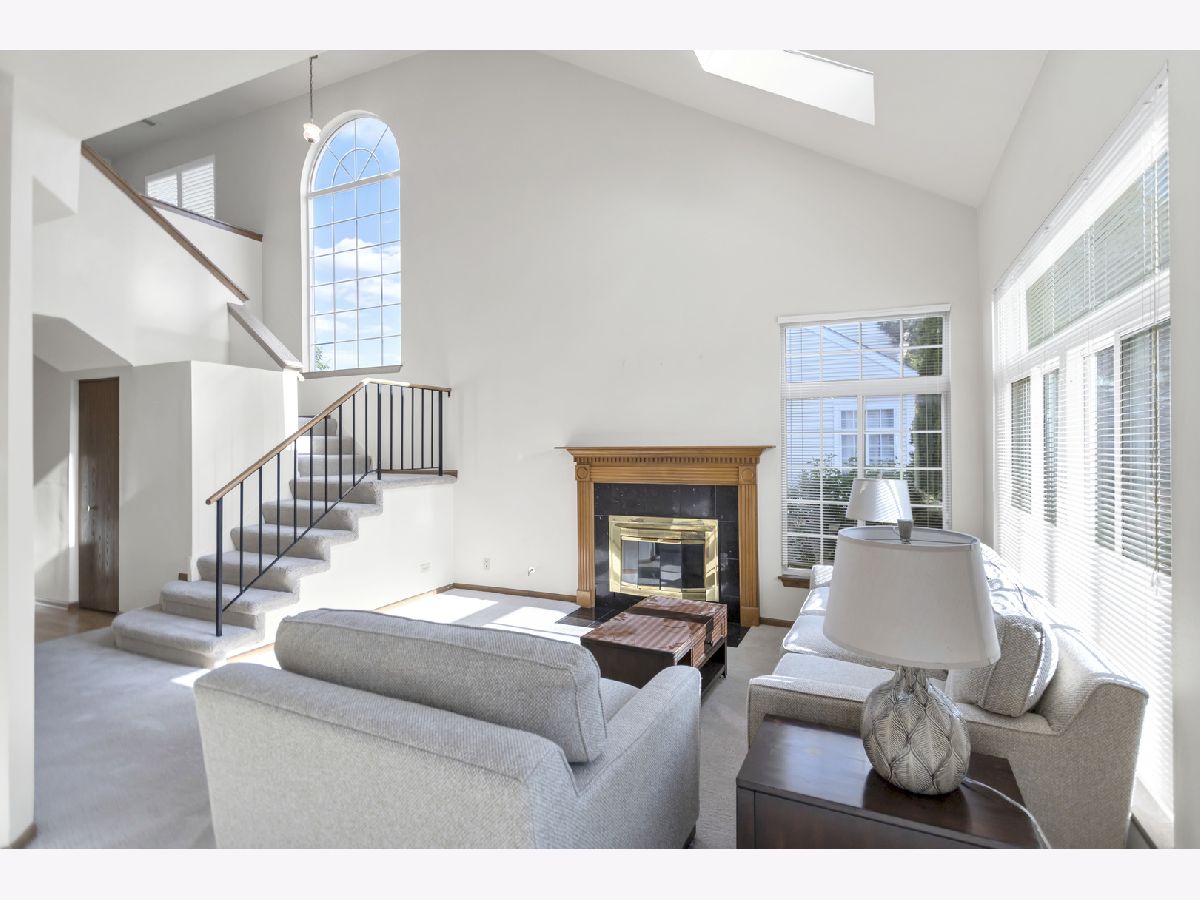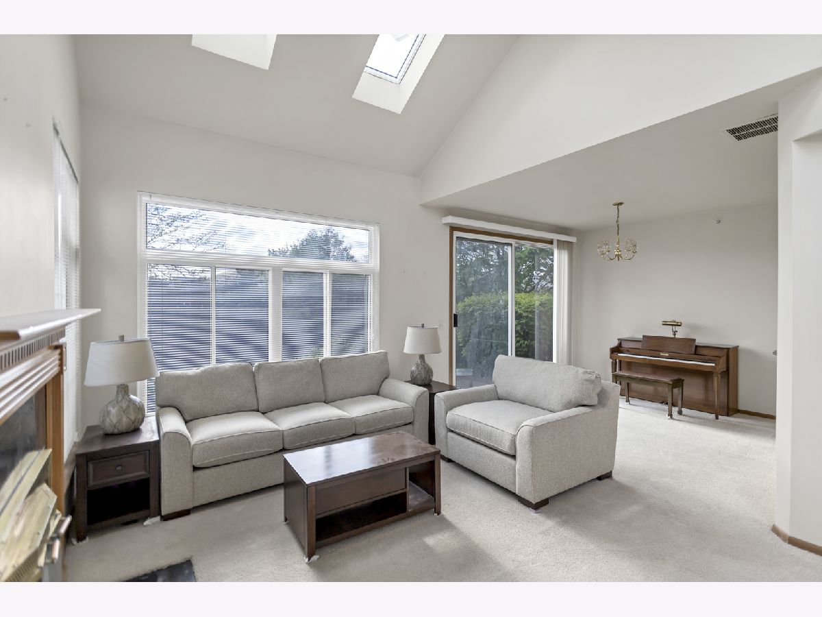 Welcome in! A charming covered front porch sets the tone as you step into a bright and inviting family room, complete with two skylights and an abundance of windows that flood the space with natural light. An elegant gas fireplace adds warmth and character. Just off the family room, the separate dining area connects effortlessly to the kitchen and glass sliding doors, offering an open concept flow that's perfect for gatherings. The kitchen is well-equipped with all stainless steel appliances, generous cabinetry, and a cozy breakfast nook for casual dining. A convenient half bathroom completes the main level. Upstairs, a spacious loft provides additional flexibility for a home office or reading area. The primary bedroom boasts a walk-in closet and an en suite bathroom with a walk-in shower. The second bedroom features mirrored closet doors and plenty of room to relax. A full hallway bathroom with a tub and shower and a separate laundry room add to the ease of living. Step outside to a concrete patio framed by lush landscaping-an ideal spot for outdoor dining or simply enjoying the serene surroundings. This home is ideally located close to beautiful parks, convenient grocery options, excellent dining, entertainment, and upscale shopping at Oakbrook Center.