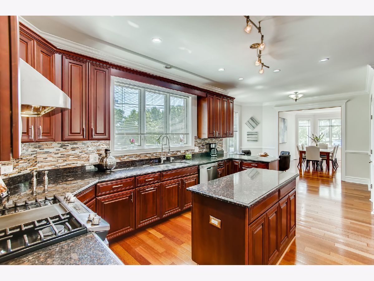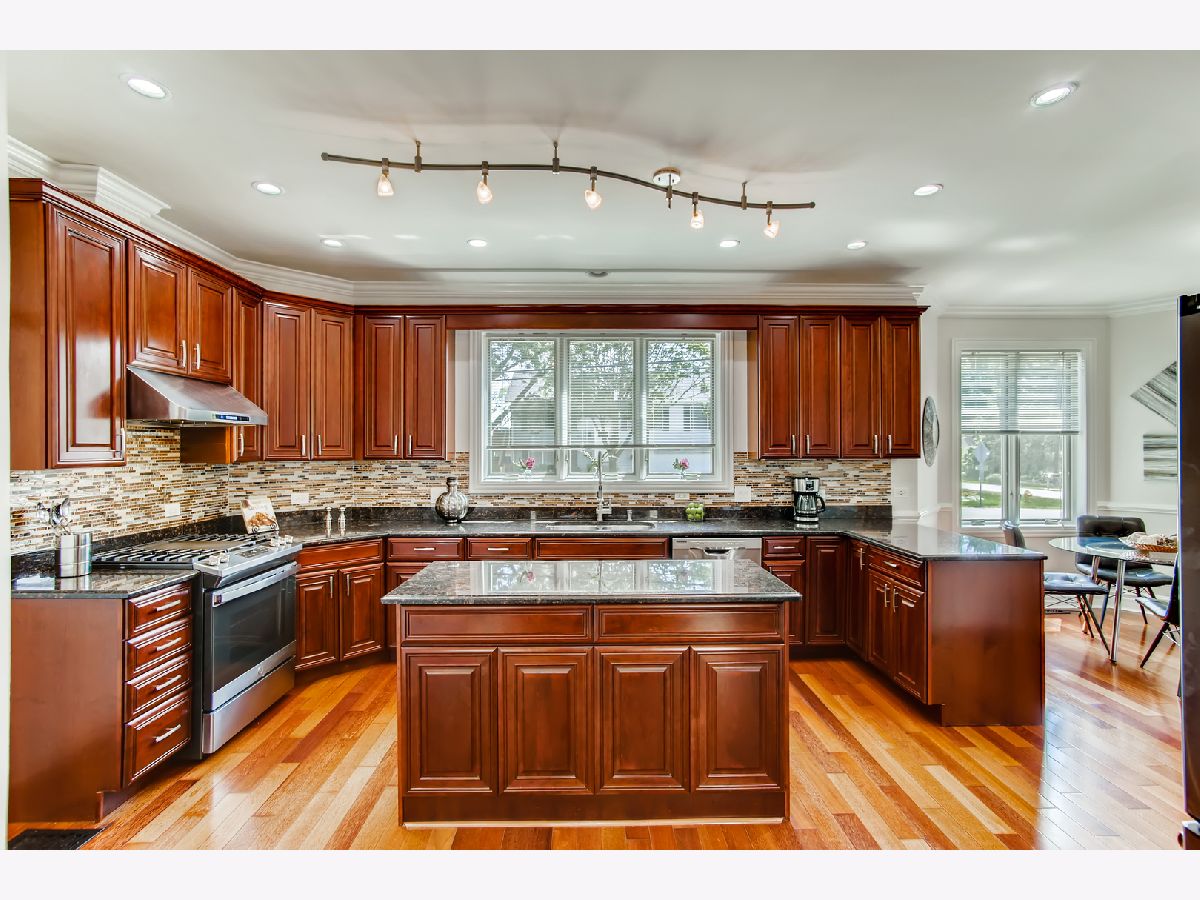 Builders custom all brick home. Impeccably maintained with gleaming Brazillian cherry hardwood floors, 9' ceilings & recessed lighting throughout main level. Wonderful natural light throughout. Gorgeous open kitchen featuring custom cherry cabinetry w/center island, granite counters, all stainless appliances & pantry closet. Kitchen eating area with table space. Generous family room featuring elegant brick floor to ceiling wood burning fireplace w/gas starter. Work from home w/ office space on main level & 2nd space in basement. Huge 25'x20 master bedroom retreat w/coffered ceiling & 2 walk-in closets. Master bath features custom cabinetry w/granite counter tops, double sinks, whirlpool tub, & separate shower. All 2nd floor bedrooms have ceiling ffans & walk-in closets w/ custom organizers. Basement features 28'x24' family room w/ tall 9' ceilings & 2nd brick fireplace, 5th bedoom/exercise room & 2nd office space. First floor laundry w/built-in cabinetry & large sink. Whole house intercom system. Enjoy outdoor entertaining on 24x14 brick paver patio w/custom brick oven. Private fenced yard with mature trees & large storage shed. Oversized 2 car garage w/ 22'x4' decked storage. Zoned HVAC system. 200 amp electric. Energy efficient Pella windows throughout home. Award winning Downers Grove schools w/ Kingsley Elementary school located at end of block. Great location close to train station, I-355 & I-88, shopping & restaurants.