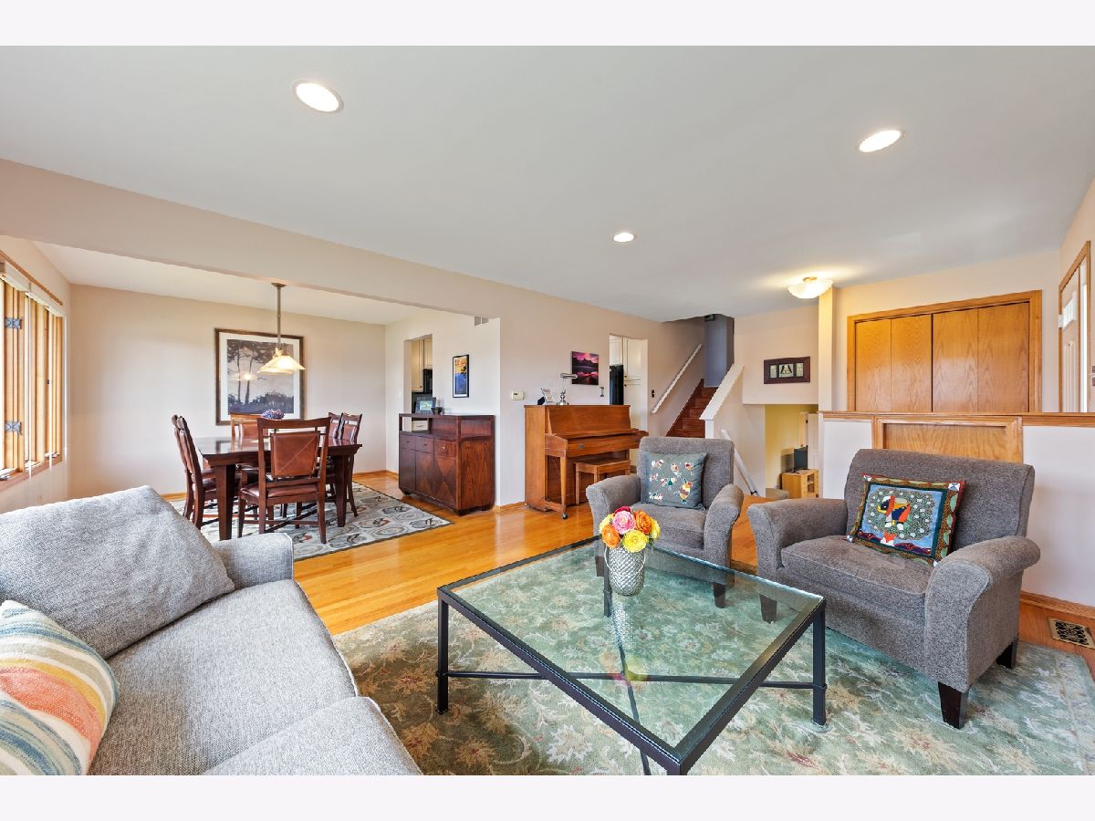 Picture perfect! Remodeled split level with open floor plan and wonderful sunlight throughout, maintenance free James Hardie Board and brick exterior. Kitchen has a skylight, stylish cabinets, island, newer refrigerator plus opens into the dining and living rooms. Renovated Bathroom to appreciate the look and cleanliness. All the bedrooms have fabulous closets!! Lower level has a sunny and spacious Family Room with above ground windows, Mud Room with extra refrigerator, Laundry Room has a large closet, sink, washer & dryer. Lighted Crawl Space with a concrete floor. Newer features include furnace, stove, skylight, recessed lighting, refrigerator, driveway, sidewalk, basketball hoop and landscaping. Plus a fenced yard with a deck. Great location to be so very close to the schools and McCullom Park. Move right in...literally!