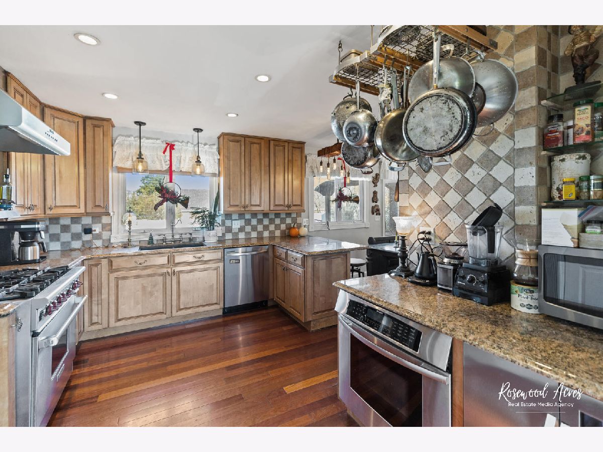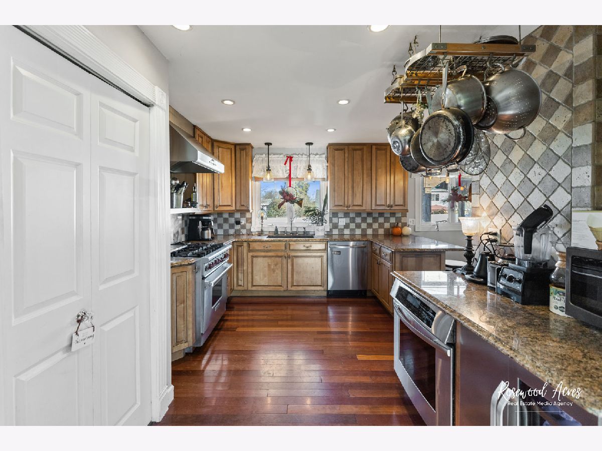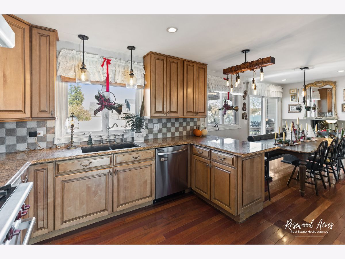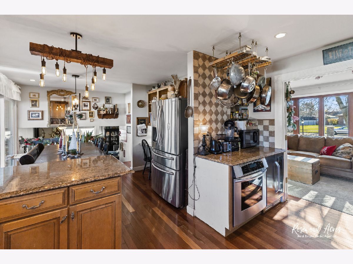 Exceptional home in Mokena! If you are looking for a great home with character, move in ready, high end appliances for the cooking enthusiast in you, and all the big ticket items are brand new...... then this is the home for you! Beautiful Brazilian Cherry wood floors on main level. Kitchen has solid Maple cabinets that extend to the ceiling, granite countertops, high end 6 burner Wolf oven with food warmer, a separate top of the line Thermador built in oven, built in wine refrigerator (new in 2024) and stainless steel dishwasher (new in 2024). The formal living room has beautiful glass double doors that lead you into a chefs "dream kitchen." On the lower level you will find a cozy, large family room with a fireplace and new flooring in 2024. The family room also has a full bathroom that has been completely remodeled in 2024, and a spacious laundry room with new washer and dryer (2024). Upstairs are 3 good sized bedrooms, new flooring in 2024 and a second bathroom, also completely remodeled in 2024! This meticulously taken care of home continues to the outdoors..... New roof 2024, new furnace with air purifier and humidifier 2024, new Central A/c 2024, new shed 2024, new landscaping 2024, new PVC privacy fence 2024, new gravel with seperate dog run 2024, new deck with permanent gazebo, new living room Anderson window in 2024 (all other Anderson windows are newer- 2019.) This home is truly a must see!