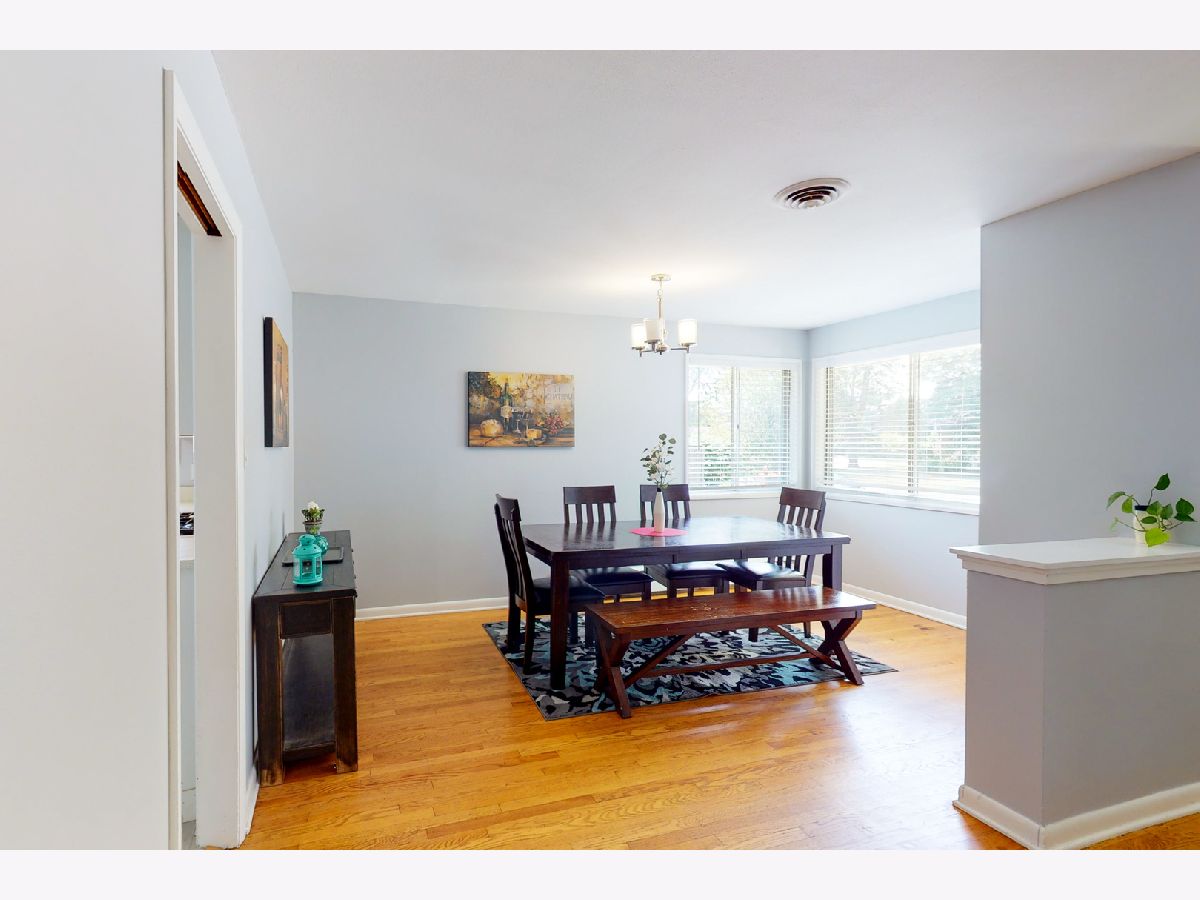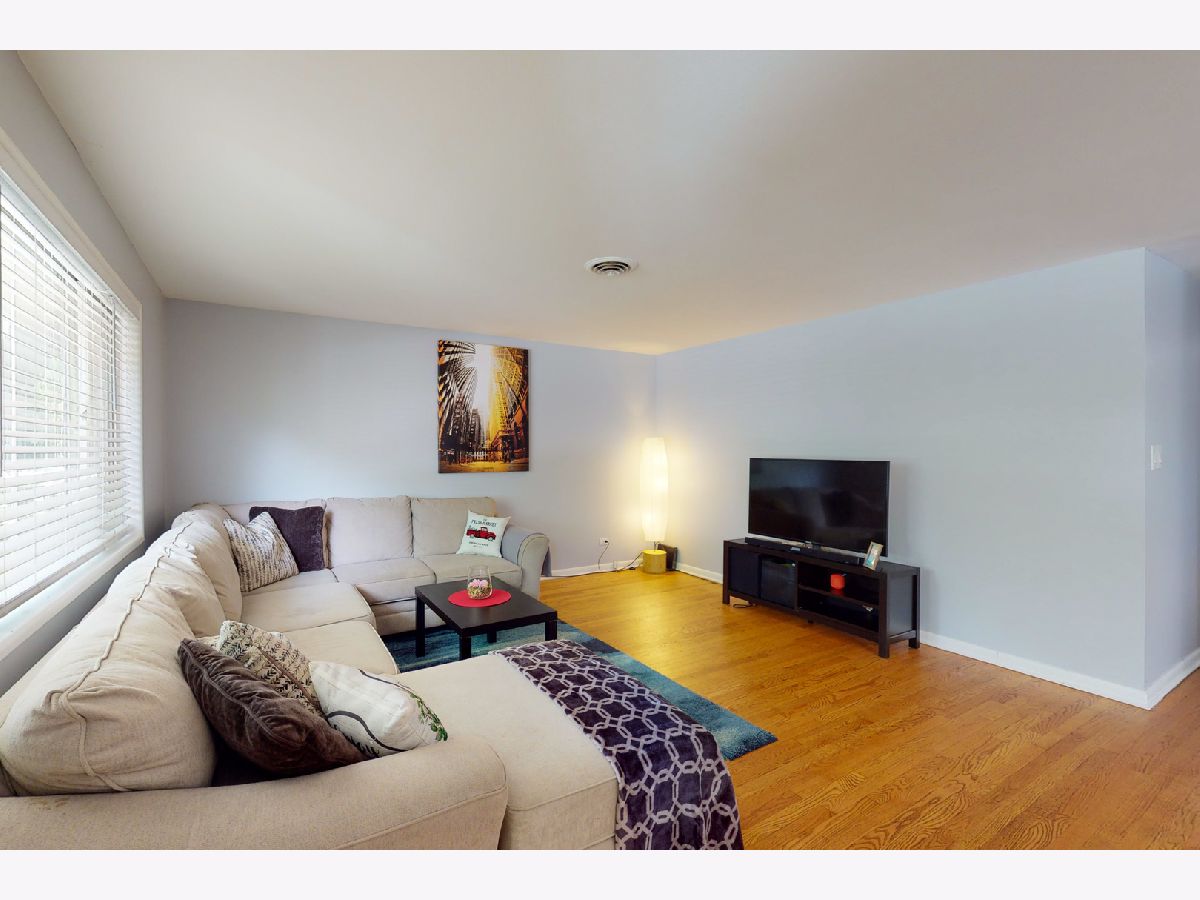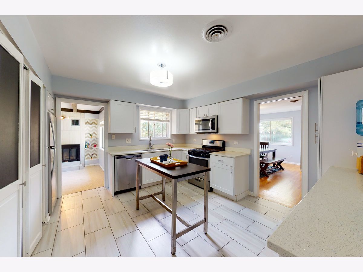 Brand new roof just completed! Step into this open concept living/dining space with fresh neutral paint & hardwood flooring throughout the home. Large windows let in the natural light for an airy tranquil setting. Through the dining room the kitchen features stainless appliances and a breakfast bar for added counter space. Plenty of space for an island or table. The stacked washer/dryer are tucked away behind chalkboard bi-fold doors. Down the hall is the master that includes a full bath with new vanity. Two more bedrooms and a full bath with new vanity across the hall. Just off the kitchen a den complete with tiled fireplace and built in shelving. Large windows front & back with a door leading to the mud room & attached 2 car garage. Highly rated Glenview schools. Flick park minutes away. Come see all Glenview has to offer: Kohl Children's Museum, The Grove Landmark & park district. Community events year round. Easy access to main routes/tollway.