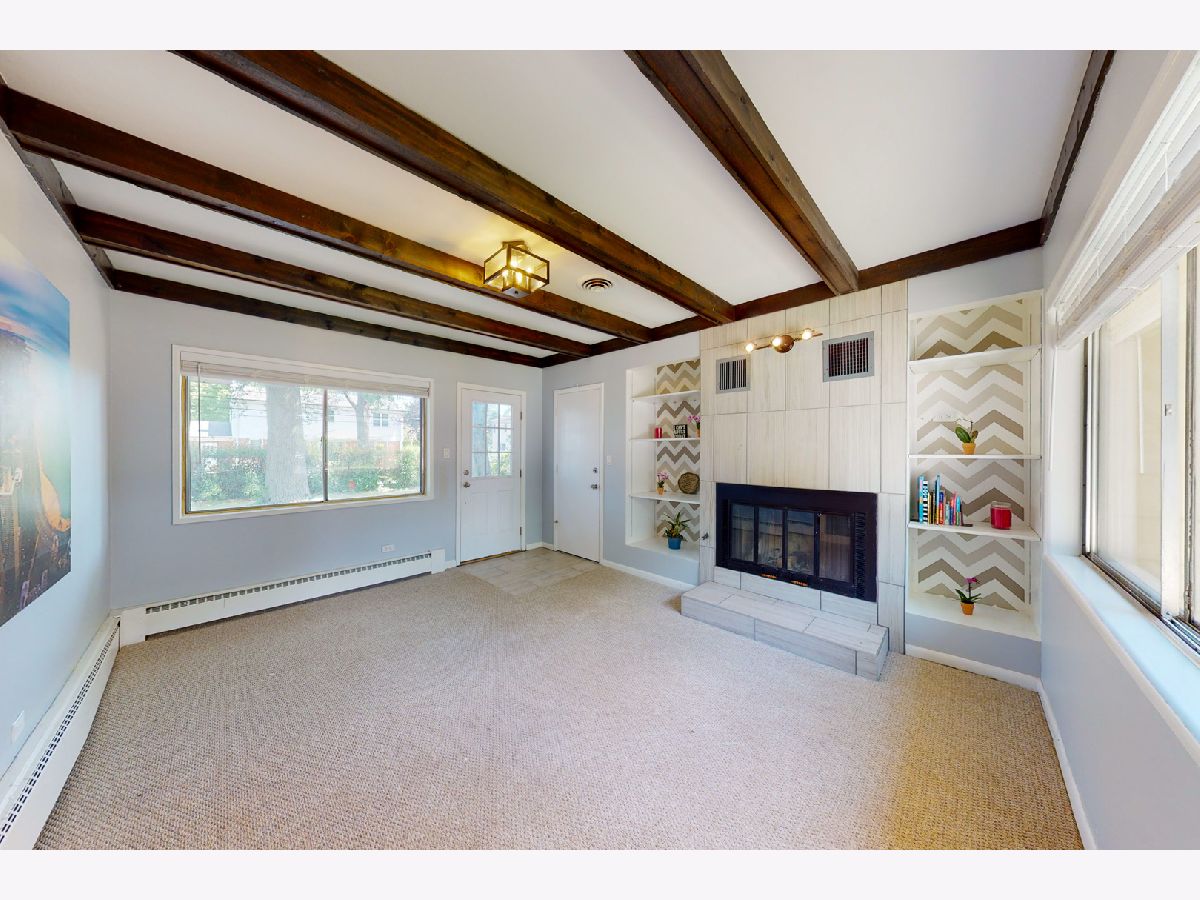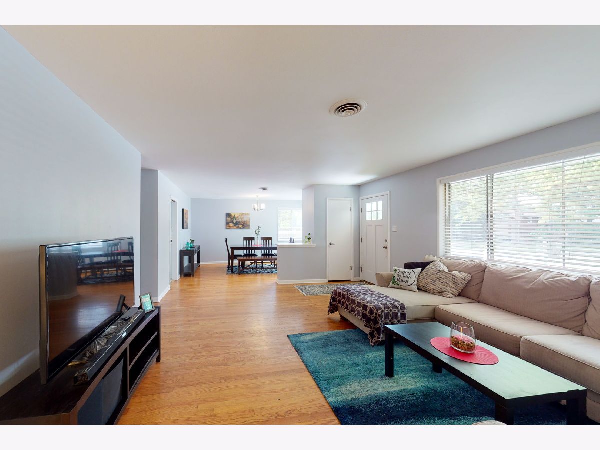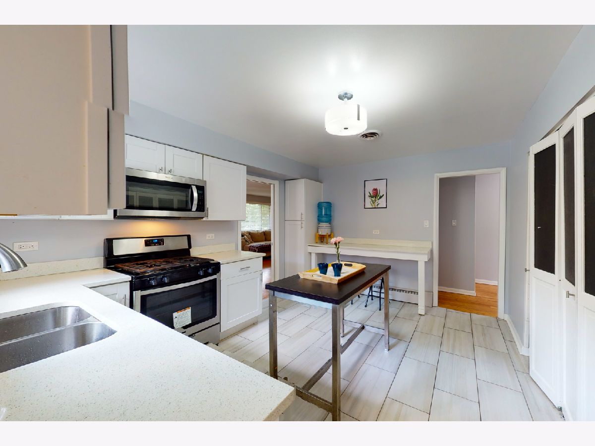 Brand new roof just completed! Step into this open concept living/dining space with fresh neutral paint & hardwood flooring throughout the home. Large windows let in the natural light for an airy tranquil setting. Through the dining room the kitchen features stainless appliances and a breakfast bar for added counter space. Plenty of space for an island or table. The stacked washer/dryer are tucked away behind chalkboard bi-fold doors. Down the hall is the master that includes a full bath with new vanity. Two more bedrooms and a full bath with new vanity across the hall. Just off the kitchen a den complete with tiled fireplace and built in shelving. Large windows front & back with a door leading to the mud room & attached 2 car garage. Highly rated Glenview schools. Flick park minutes away. Come see all Glenview has to offer: Kohl Children's Museum, The Grove Landmark & park district. Community events year round. Easy access to main routes/tollway.