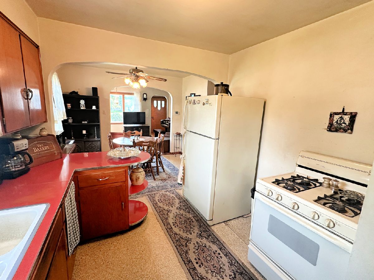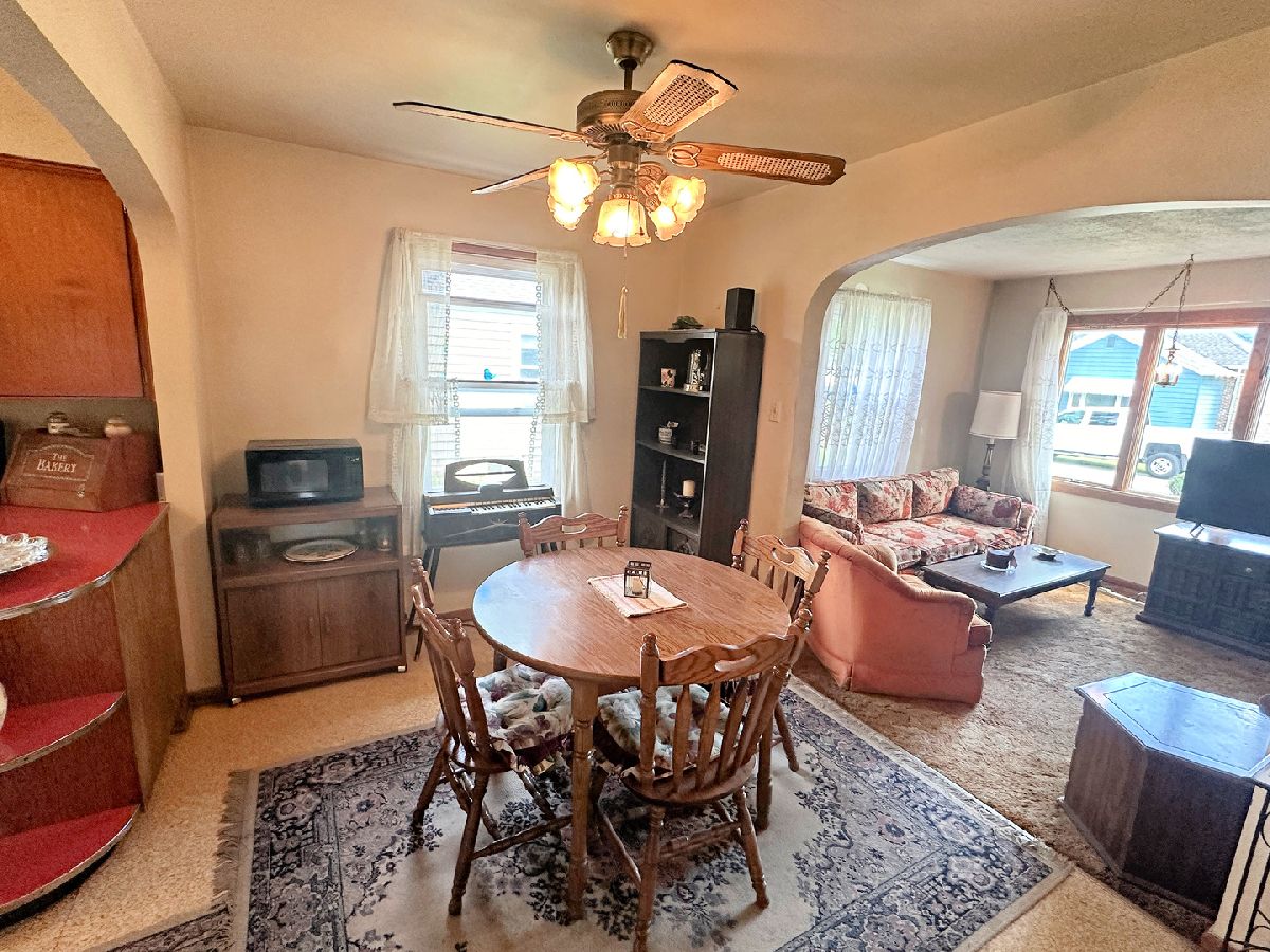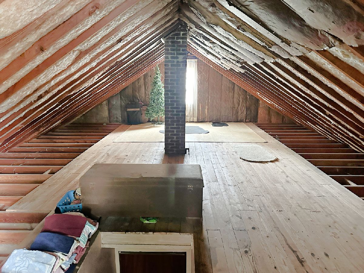 Charming brick home featuring 2 spacious bedrooms, an oversized 2 car garage, a full basement, and an attic that can be converted to finished living space. The home showcases a living room highlighted by a large picture window, a separate dining room, and a kitchen complete with all appliances included. Each bedroom is of desirable size and the spacious full bathroom includes an oversized vanity and a tub/shower combo. The unfinished attic provides opportunity to add bedrooms or additional living space to the home. The full basement includes a washer and dryer, a work room complete with a workbench, and ample storage space. Other interior highlights include closet space and arched entries, giving the home extra appeal. Outside you find a concrete patio, landscape pond, appealing yard, and a 2 car garage. Recent updates to the home include a new garage roof, garage door, and garage door opener in 2023; new house roof, gutters, and gutter guards in 2020; new HVAC in 2018; a new water heater in 2017, as well as vinyl windows. See for yourself the appeal this property holds.