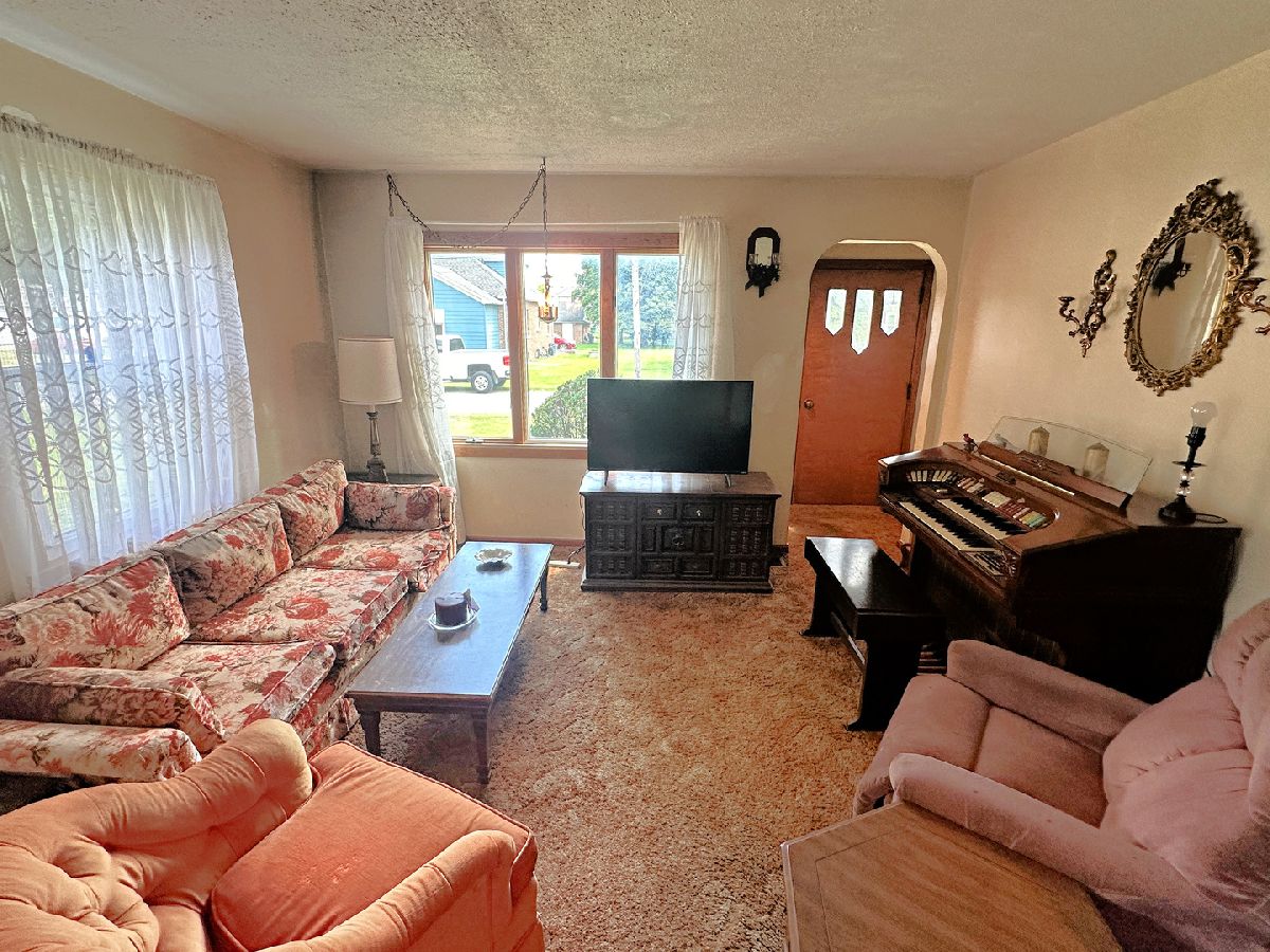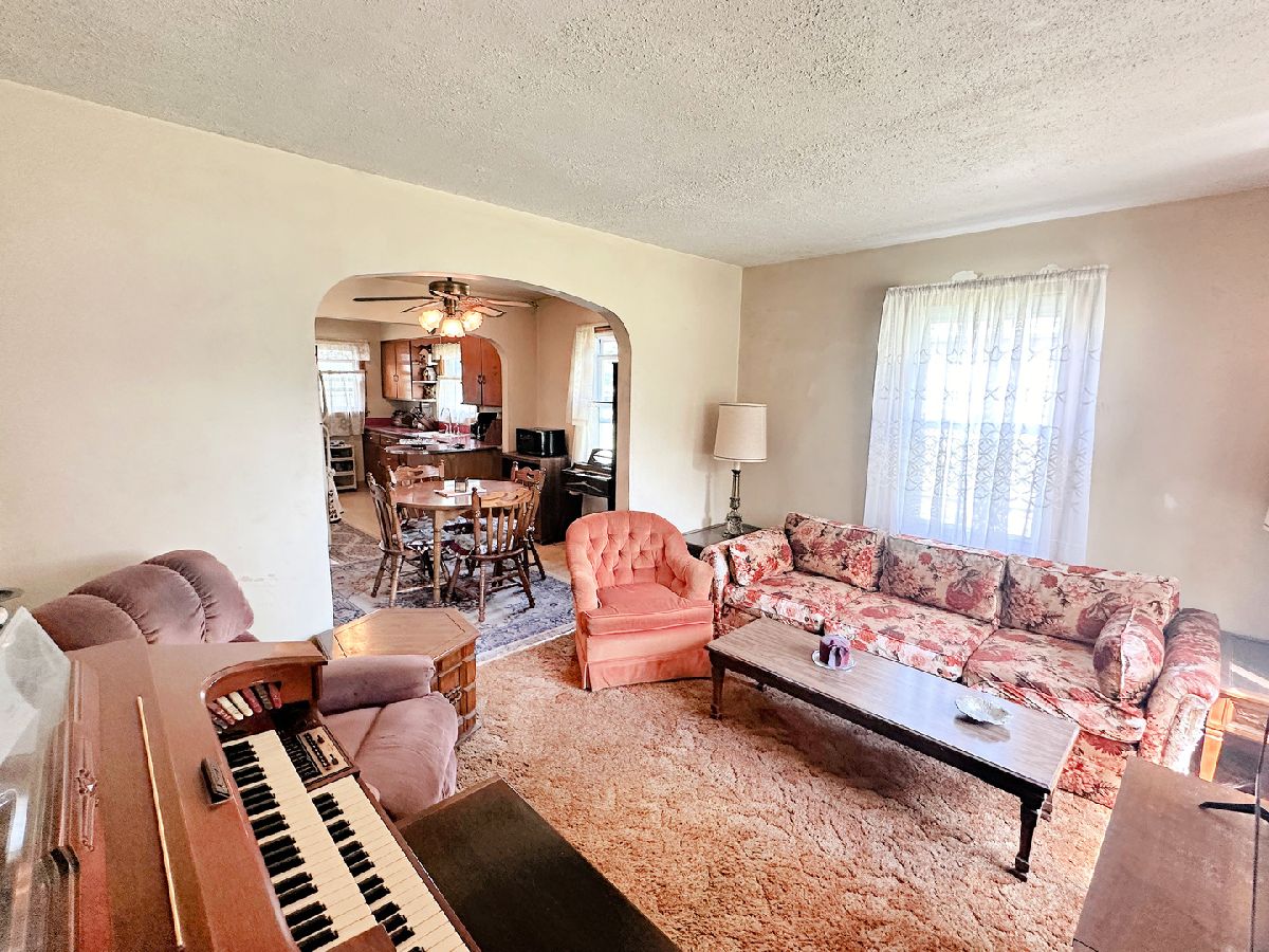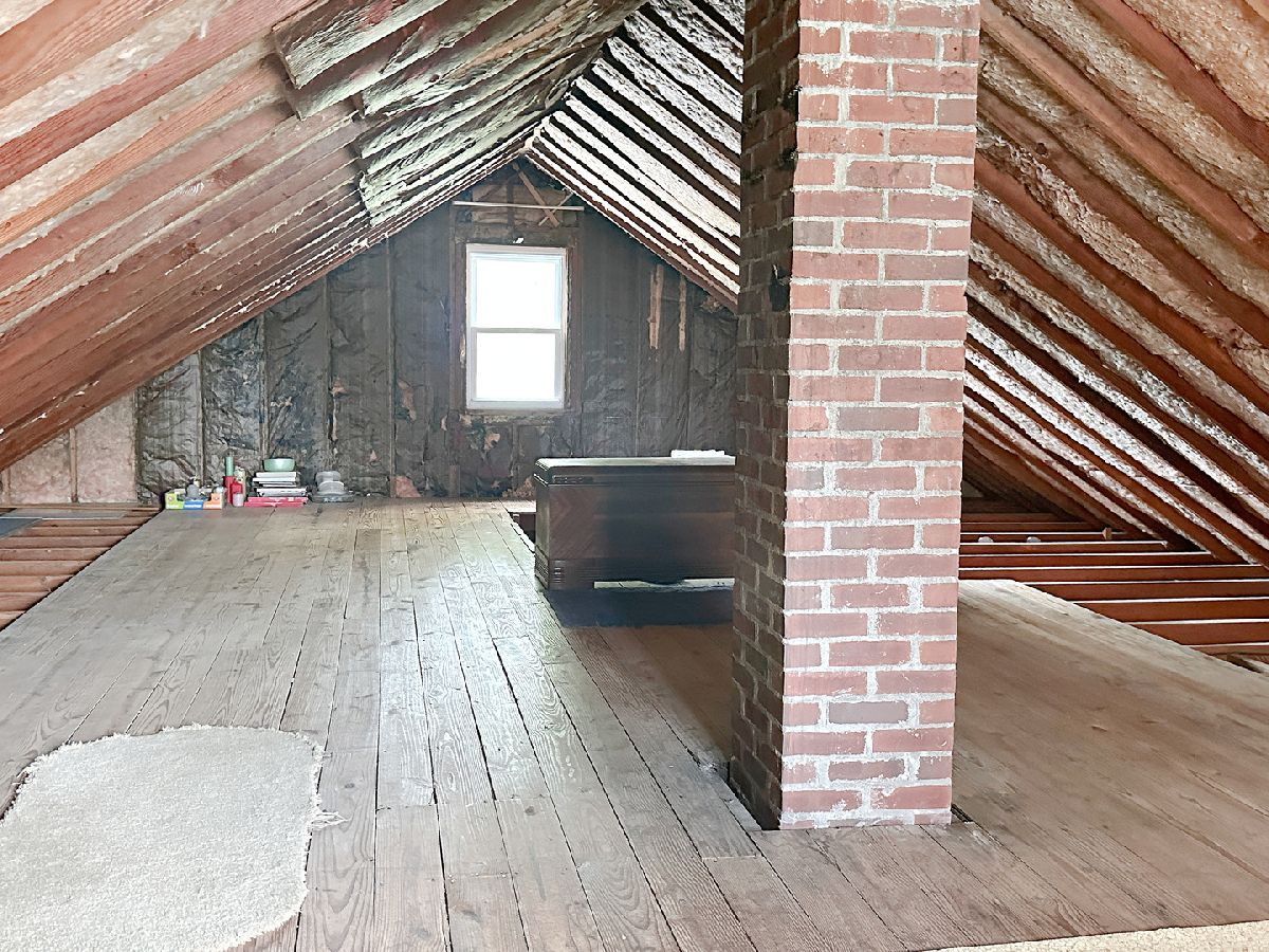 Charming brick home featuring 2 spacious bedrooms, an oversized 2 car garage, a full basement, and an attic that can be converted to finished living space. The home showcases a living room highlighted by a large picture window, a separate dining room, and a kitchen complete with all appliances included. Each bedroom is of desirable size and the spacious full bathroom includes an oversized vanity and a tub/shower combo. The unfinished attic provides opportunity to add bedrooms or additional living space to the home. The full basement includes a washer and dryer, a work room complete with a workbench, and ample storage space. Other interior highlights include closet space and arched entries, giving the home extra appeal. Outside you find a concrete patio, landscape pond, appealing yard, and a 2 car garage. Recent updates to the home include a new garage roof, garage door, and garage door opener in 2023; new house roof, gutters, and gutter guards in 2020; new HVAC in 2018; a new water heater in 2017, as well as vinyl windows. See for yourself the appeal this property holds.