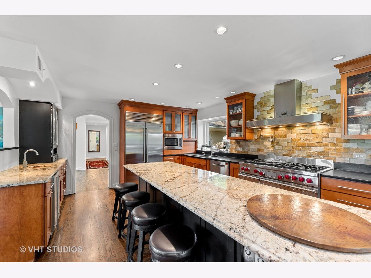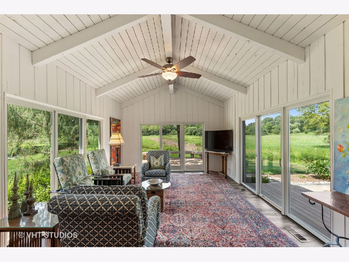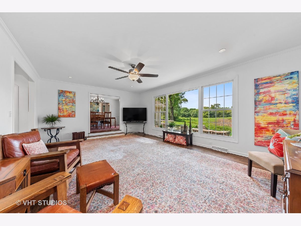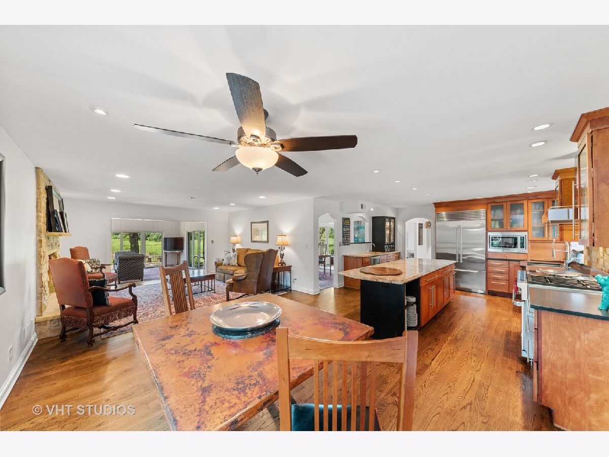 Stunning 4/5 Bedroom, 3.1 Bathroom Fox Point Ranch with prime locaction on a quiet cul-de-sac backing to the Forest Preserve! Enjoy one level living in this fully updated and meticulously maintained 3,300 SF home. A brick paver driveway & walkway lead to the courtyard entry adorned with artful gardens...but wait, the views get even better when you step inside through the double door entry into the spacious Foyer...a large picture window in the Living Room captures beautiful views of the Forest Preserve and nature, literally out your back door. The chef's kitchen includes new top-of-the-line appliances including a SubZero refrigerator, Wolf range, Bosch dishwasher, sleek cherry cabinets, granite countertops, a huge island and a wine bar! The Kitchen is open to the Family Room with a stacked stone fireplace and the Eating Area sliding doors open to the side deck...perfect for grilling or morning coffee. A formal Dining Room is adjacent. The year-round Sun Room is sure to be a favorite with new flooring, vaulted ceiling and three sides of glass sliding doors to the rear deck and patio with a built-in fire pit. There is a large mudroom/laundry room with coat cubbies, pantry closet and half bathroom. The bedroom wing includes a Primary Bedroom with a brand-new Bathroom with marble tiles and double sink vanity & great closet space. There are three additional spacious bedrooms with great closet space and a remodeled hall bathroom. Hardwood flooring throughout the main level, plantation shutters in BRs', crown molding and ceiling fans are other great features. The full basement offers another 3,000 SF of space including a 5th Bedroom, full bathroom, media area, REC room, flex space for an exercise room or WFH plus a huge storage room. Updates since Fall 2017: remodeled bathrooms, HVAC, sliding doors & most windows, KI appliances, back up sump pump, interior light fixtures & ceiling fans, plantation shutters, garage door, hot water heater, basement water softener, all hardwood floors refinished, interior paint, and new landscaping. Enjoy all of Fox Point's amenities including swimming pool, tennis courts, lake, playground and social activities! Close to downtown Barrington, train, schools, shopping and restaurants! Don't miss this wonderful home!