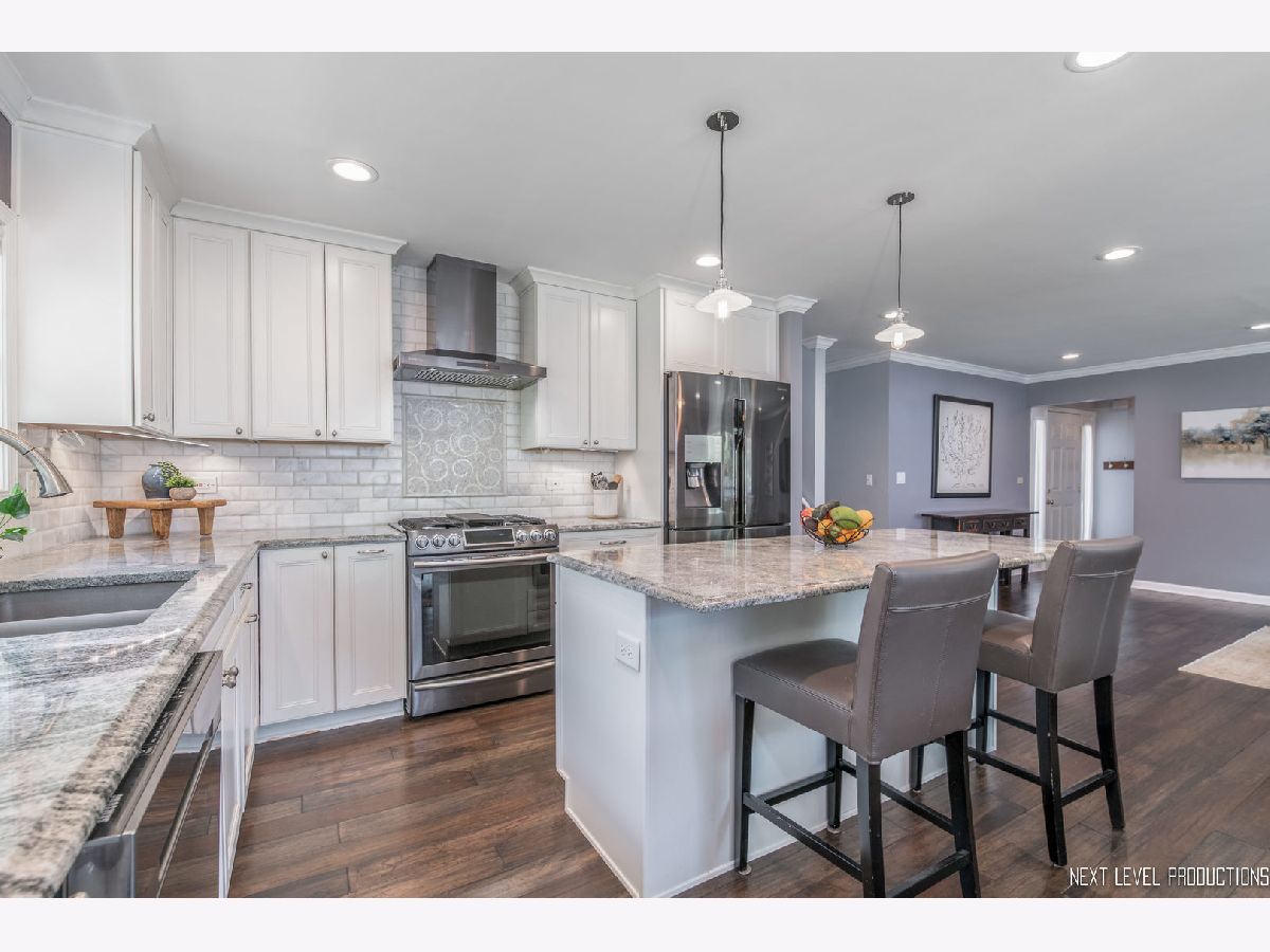 This great home is located in the Kings Terrace subdivision in Naperville's 203 school district and is walking distance to Prairie Elementary. It is also near many wonderful amenities such as Downtown Naperville, golfing and a community pool you can join. Easy access to I-88 and I-355 too! You can get to the Naperville Metra in five minutes or less by the Pace bus that stops in front of the home. The home has been modernized by opening up the main level. The Kitchen was remodeled in 2017 with 42in cabinetry with crown, backsplash, granite counter tops, black stainless steel appliances and an island with pendent lighting. The main level has crown molding, bright recessed lighting and dark engineered hardwood flooring. All bedrooms have ceiling fans and plantation shutters. The sliding glass door in the dining area leads to a brick patio and the expansive, fenced back yard with plenty of room to entertain, relax or play. The interior has today's modern colors and the exterior has been landscaped. There is additional storage behind the garage. Add this one to your list!