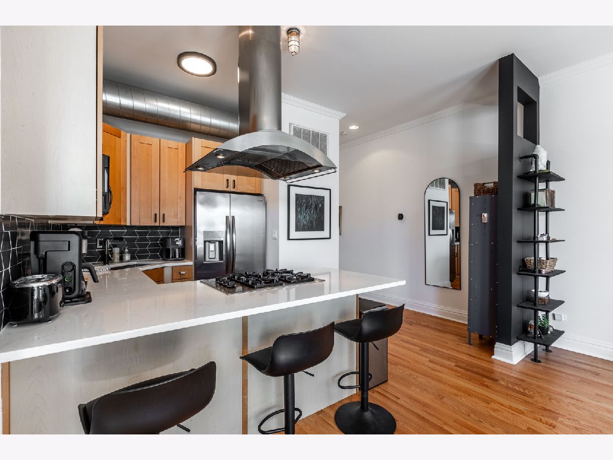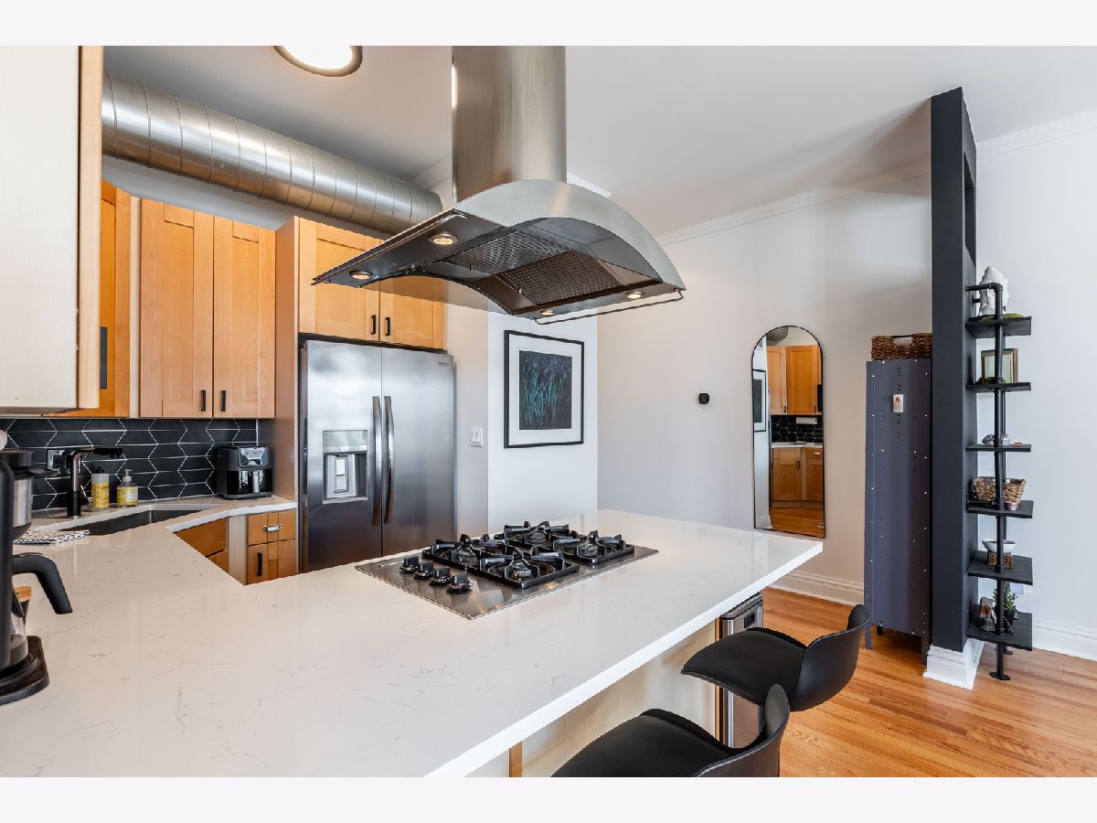 Welcome to your stylish new home in the heart of vibrant Uptown! This spacious 2-bedroom, 1-bath condo offers approximately 1,100 square feet of modern, loft-inspired living. Featuring soaring ceilings, hardwood floors throughout, and oversized rooms, this unit is the perfect blend of comfort and contemporary design. The sleek kitchen is a standout, complete with a ceiling-mounted hood range, a large peninsula perfect for dining or entertaining, and plenty of cabinet space. The open-concept layout flows seamlessly into the living area, where a private balcony awaits - ideal for your morning coffee or evening unwind. Enjoy the convenience of in-unit laundry, generous closet space, and a bright, airy atmosphere throughout. Located just steps from the Red Line and the brand-new Lawrence station, you'll have unbeatable access to everything Uptown has to offer: amazing restaurants, entertainment, parks, and the lakefront with Montrose beach.