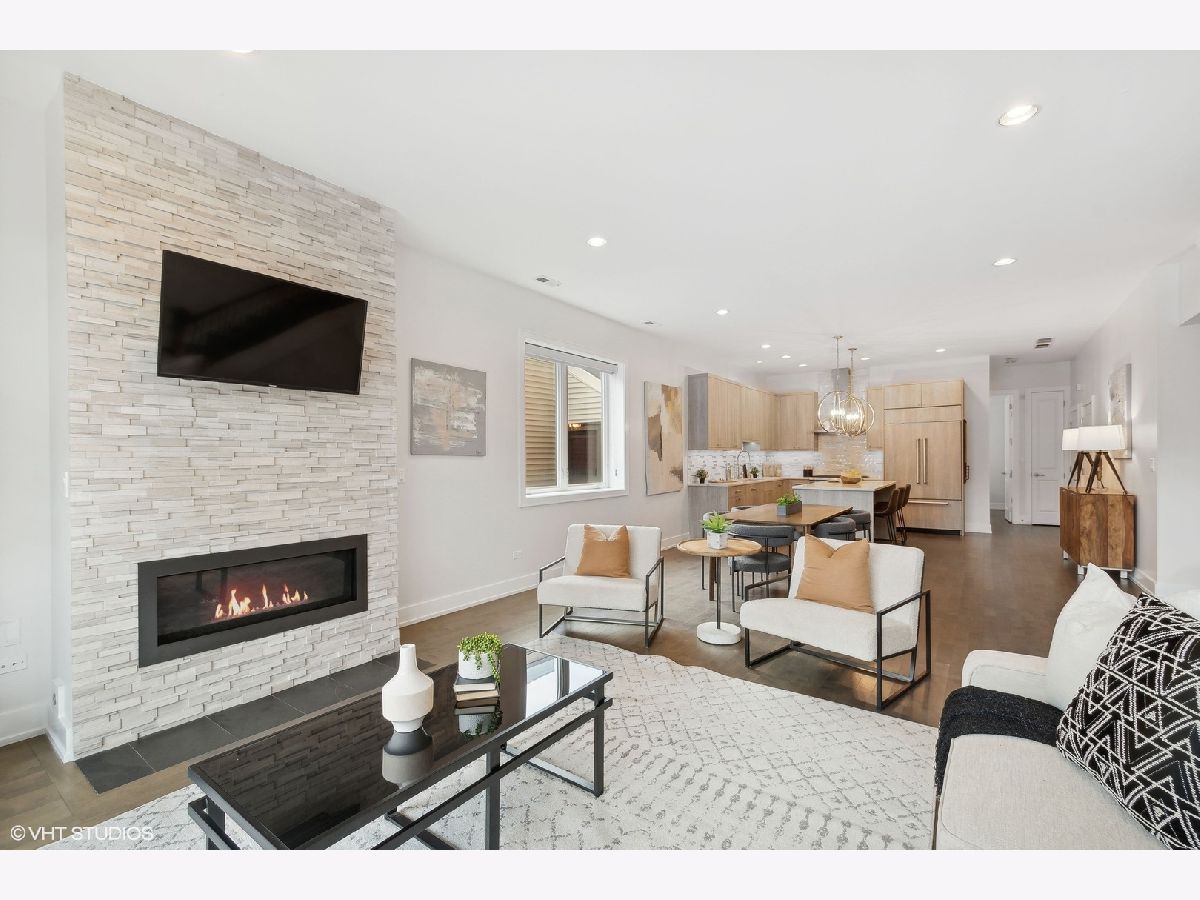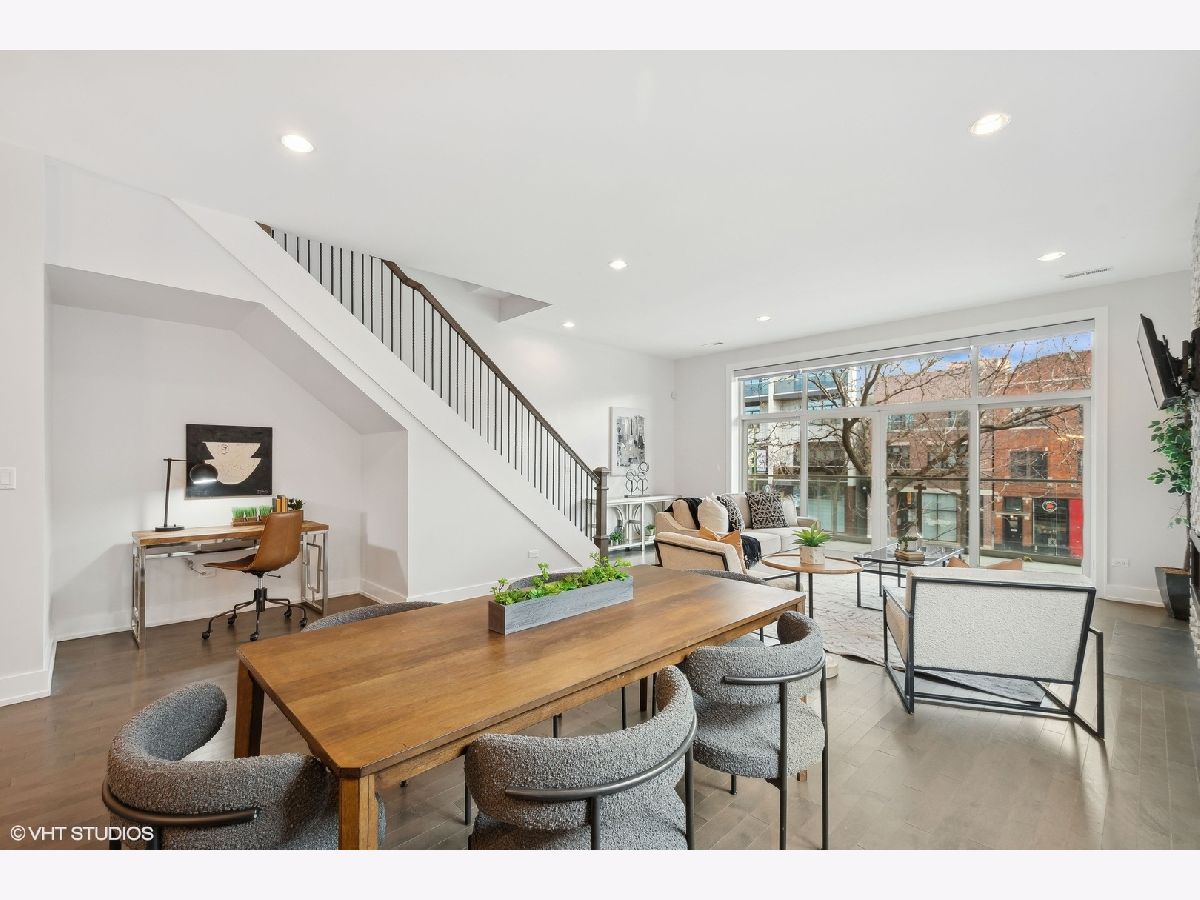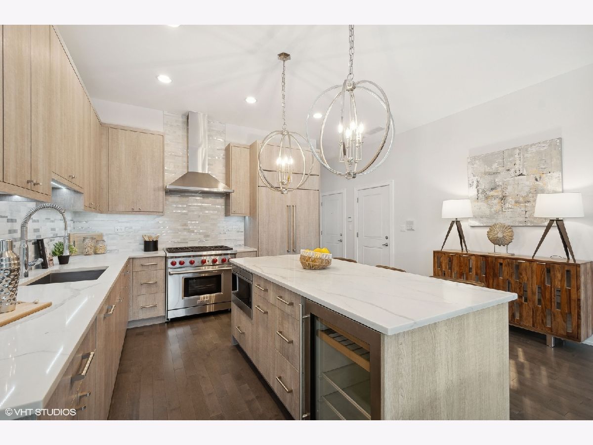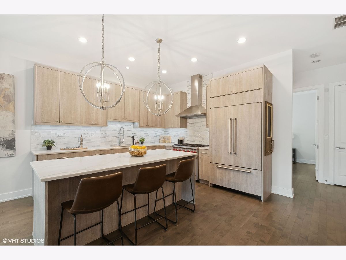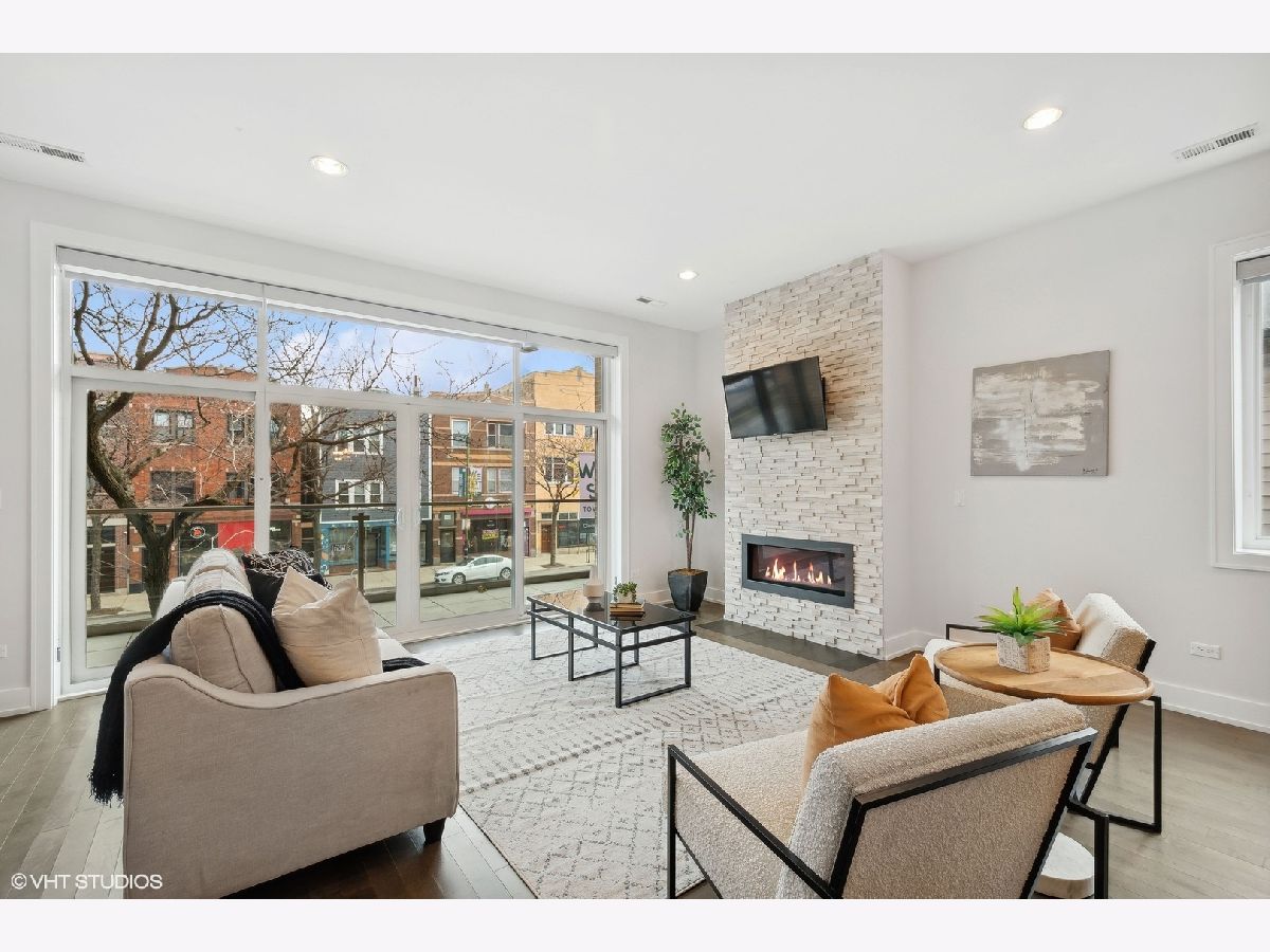 Amazing duplex condo in the heart of Wicker Park just steps from the epicenter of Division Street. This stunning extra wide, 3-bedroom, 3-bathroom home boasts a thoughtfully designed open floor plan ideal for entertaining and everyday comfort. Soaring ceilings combined with its extra width give the main living space of this home jaw-dropping volume. The front living space is anchored by gas fireplace with cool stacked stone surround and flows seamlessly to a dining area large enough for practically any size table. The kitchen is the crown jewel of this property. Curated with custom designed cabinetry, premium Wolf and Sub-Zero appliances, a large quartz island with tons of seating and in-island beverage cooler-this is the perfect place for hosting large gatherings or enjoying a quiet evening in. Also on the main level is a bedroom and full bath with penny-round tub and shower surround giving a super dramatic vibe. And not to be overlooked is a sizable nook adjacent to the dining area plenty large enough be a work-from-home office, reading nook or home for a bar-cart or drybar. Ascend to the second floor and retreat to the primary suite, where you'll find a spa-like bathroom equipped with double vanities, heated floors, an expansive shower with body sprays and a rain shower, tub and private water closet. Also on this floor, a large second bedroom, full bathroom and linen closet. For outdoor relaxation, there are two large private terraces: one just off the living room, ideal for unwinding or entertaining guests and a second off the primary bedroom - perfect for a morning cup of coffee, or evening glass of wine. This condo includes the convenience of an attached garage parking space and is located just one block from the Blue Line, providing easy access to the city. Situated in vibrant Wicker Park, you're moments away from popular bars, restaurants, and all that this sought-after neighborhood has to offer. Freshly painted and move-in ready, this home combines comfort, style, and prime location-don't miss this opportunity!