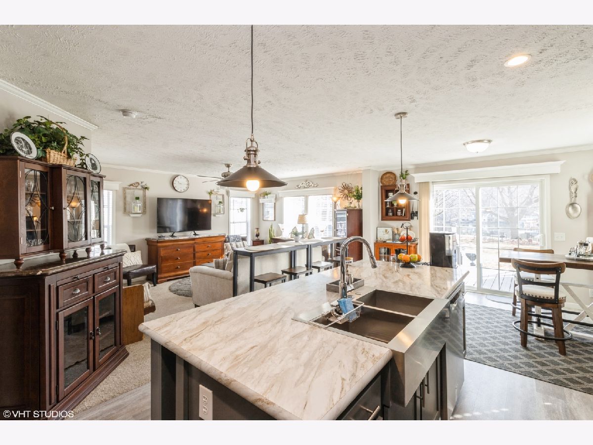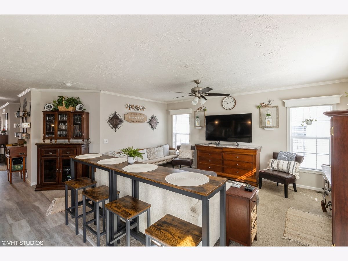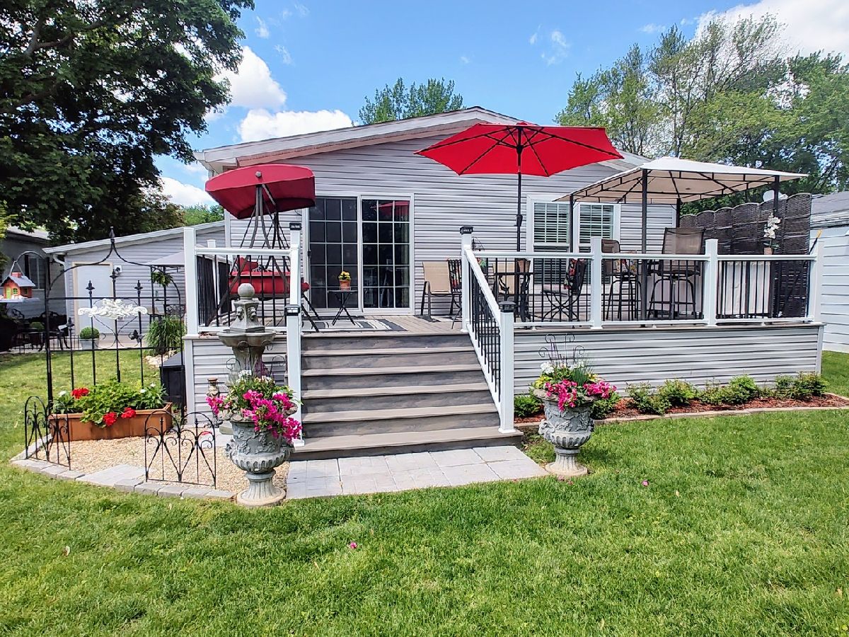Experience year-round bliss on the picturesque Fox River in this stunning manufactured home located in Willow Lake Estates, an AGE-QUALIFIED (55+) COMMUNITY! Boasting 2 bedrooms plus a den and 2 full baths, this residence is designed to maximize views of the river! Step inside to find a seamless flow from the entry through the house, leading to sliding glass doors opening to the Trex composite deck. The den offers versatility and can easily be converted into a third bedroom if desired. The primary bedroom features a ceiling fan, a spacious walk-in closet, and a luxurious en-suite bath with double sinks. A second bath serves the additional bedroom and guests. Entertain effortlessly in the spacious great room, where the living room, kitchen, and dining area harmonize beautifully. The kitchen is equipped with stainless steel appliances, ample counter space, and cabinets galore. Gather around the island for casual meals or snacks! Outside, the deck provides the perfect spot to unwind, with a bar included for cocktail hours and various seating areas to soak in the breathtaking river views. The laundry room conveniently connects to the expansive dry-walled garage, offering plenty of storage, including a custom-made walk-in closet. With everything just 2 years old, enjoy peace of mind and worry-free living for years to come. Don't miss out on this unparalleled opportunity to make every season special in your new Fox River haven! The monthly "HOA" lot rental fee includes lawn care, snow removal and access to the swimming pool, a private stocked lake, and a clubhouse with activities, a workout area and library. Close to I90, METRA stations, PACE, shopping & restaurants; you'll find everything you need just a short drive away. Please note that a lot rental application, credit & background check are required. NO RENTALS ALLOWED.