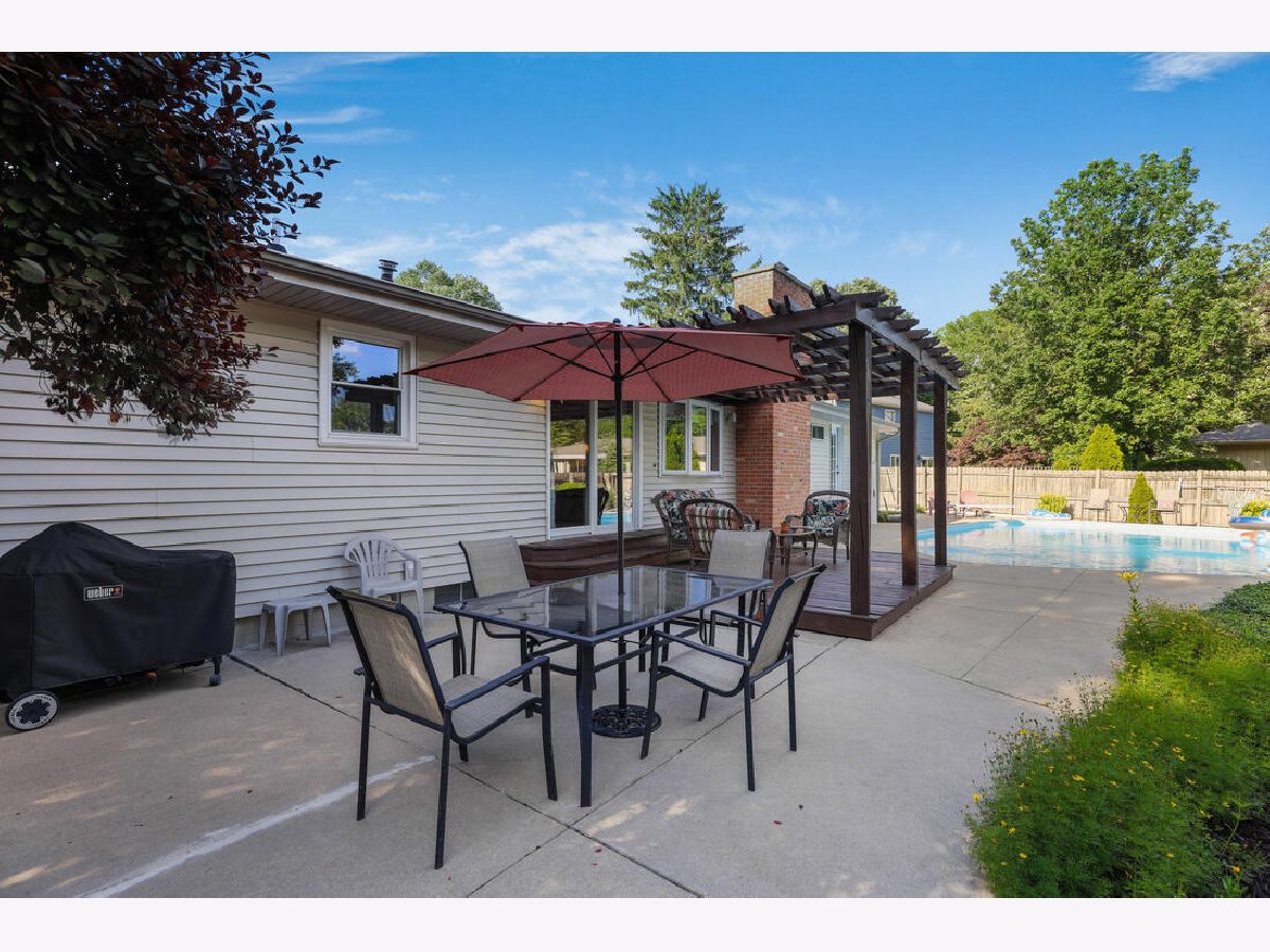 Don't call tomorrow or it will be too late...Our stunning rambling ranch sits on a spacious corner lot directly across the street from Morrissey Park, Also offering a covered front porch & side load garage...Surely you will enjoy endless hours of FUN, but wait - there's more...A Sparkling Inground Pool with a diving board fully fenced in back lawn guarantees endless days of summer fun! Darling shed for housing pool equipment, Wood Trellis covered deck area overlooks back lawn & pool. The Owners suite offers an added access door to the back pool/yard area, plus its been upgraded with a tiled step in shower, new sink, cabinet & toilet. Back it up to entering our home and feel welcomed to the spacious living room that has an oversized picture window & from there you can enter into a private dining area or access the Family Room with a brick walled fireplace. This room connects to our Knockout updated kitchen and both rooms have views of the back pool/trellis/yard. Kitchen showcases updated features like granite countertops, wood flooring, cabinet hardware, ceramic backsplash lighting, appliances, facets, beamed ceilings, center island, buffet. Second bath has double sinks and it too has been updated, Stackable washer/dryer for convenience, updated 1/2 bth. partial basement finished with a FR, Counter Bar area, desk area, eat in space for a table and this is connected to a lounging rec room, the owners are currently using one of the basement rooms as a 5th bedroom but note there is a window but its not an egress window. High efficiency furnace newer 40 gallon H2O heater. This home is so comfortable & move in ready. Squre footage is not totally finished but offers around 360sq ft plus or minus extra living space some ceiling aren't finished. This home has a block foundation along with a crawl space