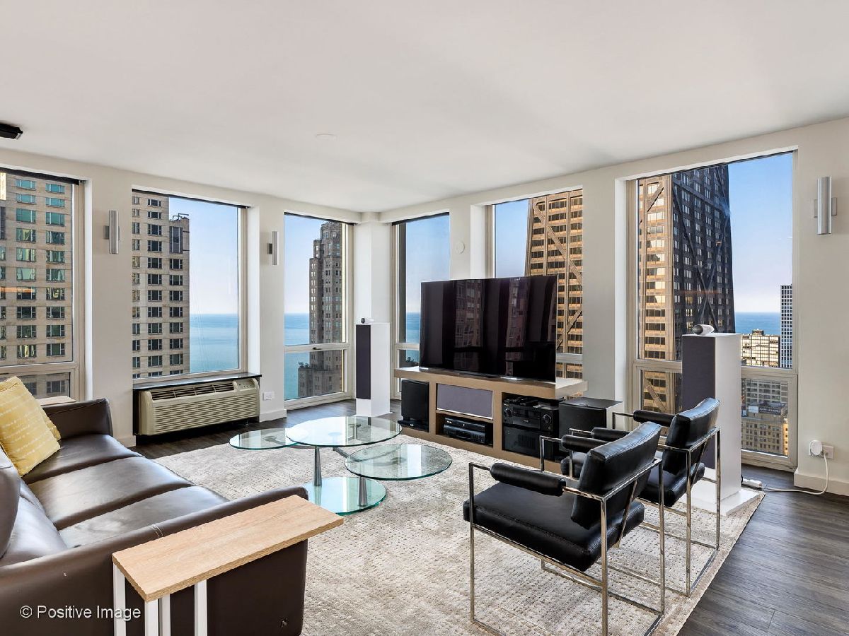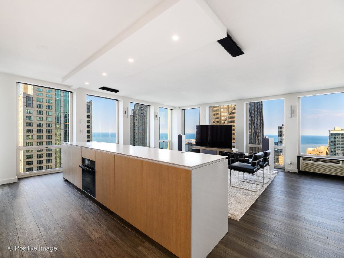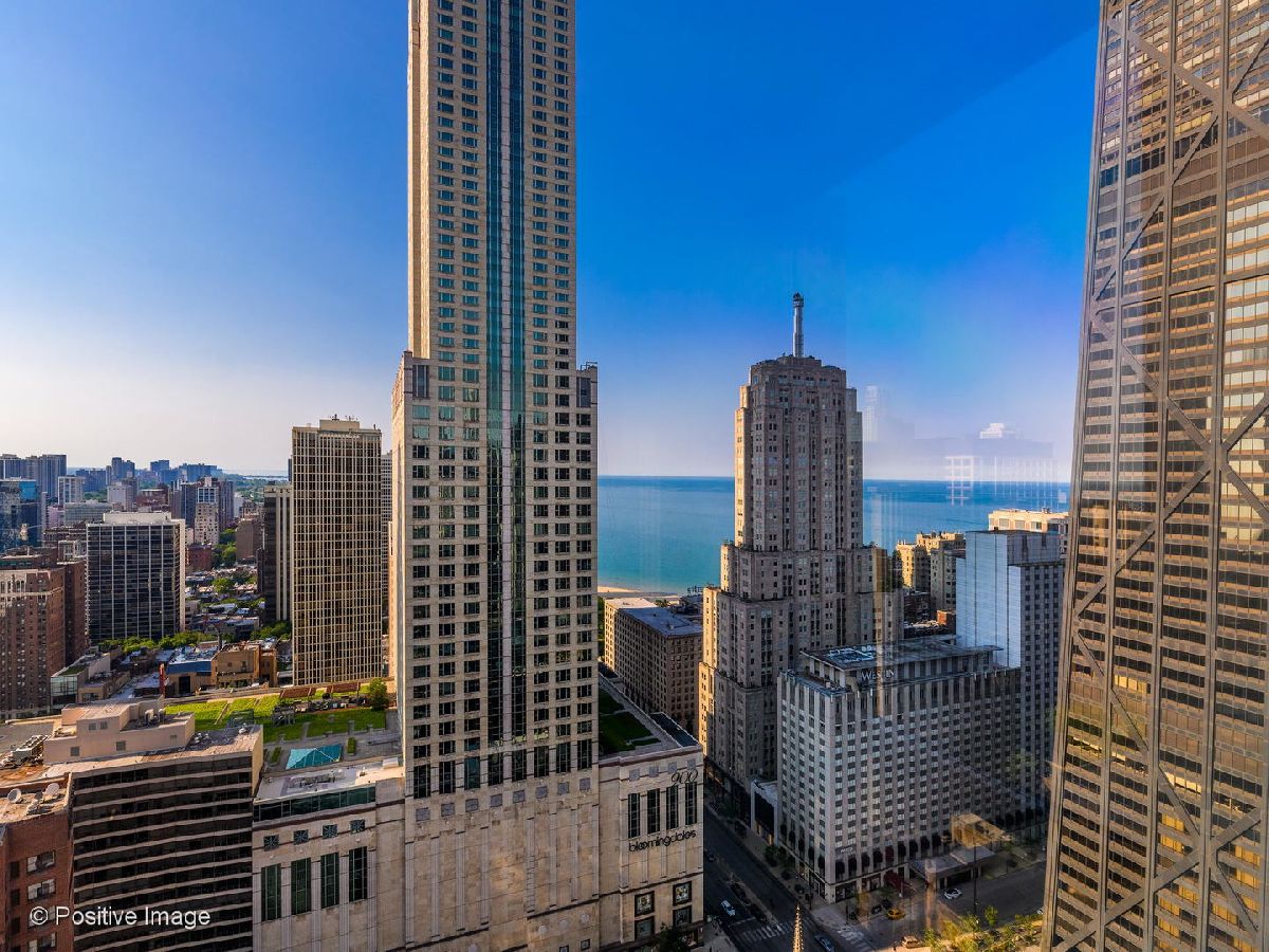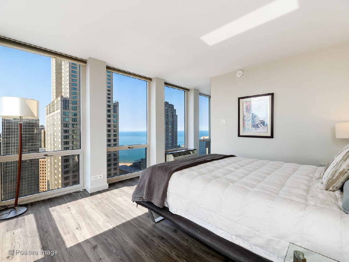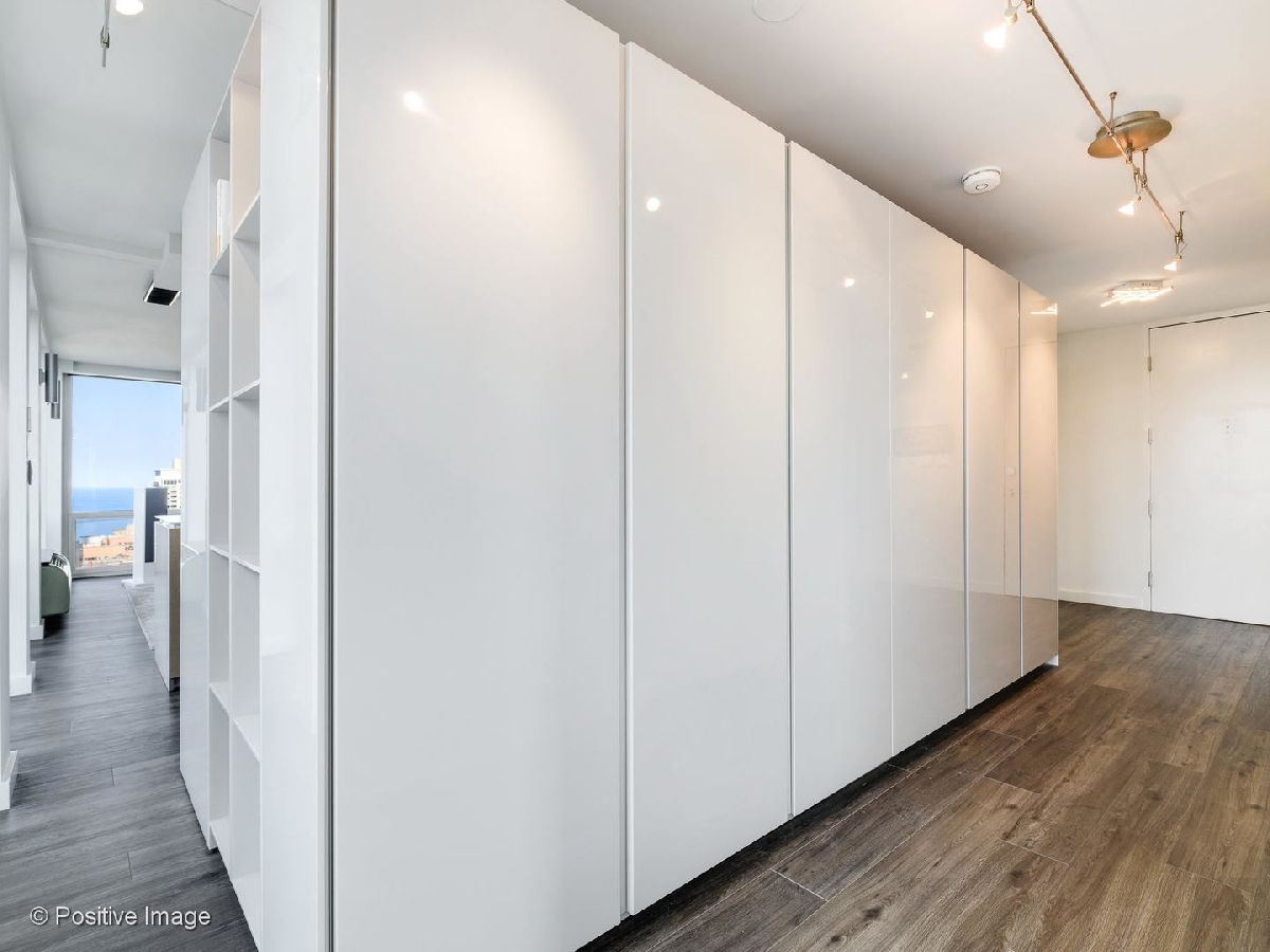 Don't miss this spectacular remodel with striking lake and city views from every exposure in this home. As you enter the home you get a nice peek of the views as you are looking out the north-facing windows. You are then drawn into the open kitchen, living and dining room with a corner exposure and a wall of east and north-facing floor-to-ceiling windows. There is ample room for a large dining table and oversized furniture which creates a perfect space for intimate dinner parties and large scale entertaining. A thoughtful floating built-in was added in the dining room to create additional storage. The kitchen is a chef's dream with two-tone Ernestomeda cabinetry, seamless modern countertops that lead to continual backsplash, an 11' island, integrated Sub Zero refrigerator, integrated Miele dishwasher, Thermador induction cook top and Miele steam and convection oven. There is an additional row of Ernestomeda cabinetry which houses pantry space with shelving for maximum storage and an interior lit, built-in bar cupboard with retracting doors. No detail was overlooked in this kitchen layout and is a show stopper! The master bedroom was reconfigured to accommodate a wonderfully sized walk-in closet but doesn't detract from the usefulness of the corner exposure master bedroom with north and west views. The well thought-out ensuite bathroom has a glass-enclosed walk-in shower with rain shower head and hand-held, wide floating vanity with drawers, a tall built-in wall medicine cabinet and Toto high-end toilet which is heated and self-flushing. The second bedroom has west views and an organized, built-in closet. Located just off the foyer is a large bonus room which serves as a walk-in closet/storage room with built-in shelving - this could easily be a home office as well. For true convenience, the home has an in-unit Bosch washer and dryer, and massive storage unit on the same floor! This full amenity building offers 24 hour door staff, extensive gym, outdoor pool and sundeck, grill deck and large party room. This full service building has immediate access to the Magnificent Mile and everything the area offers, including Oak St. Beach, Lake Shore Drive, Northwestern Hospital, plus an abundant amount of shopping, restaurants and entertainment options. This location has it all! Deeded parking sold separately.