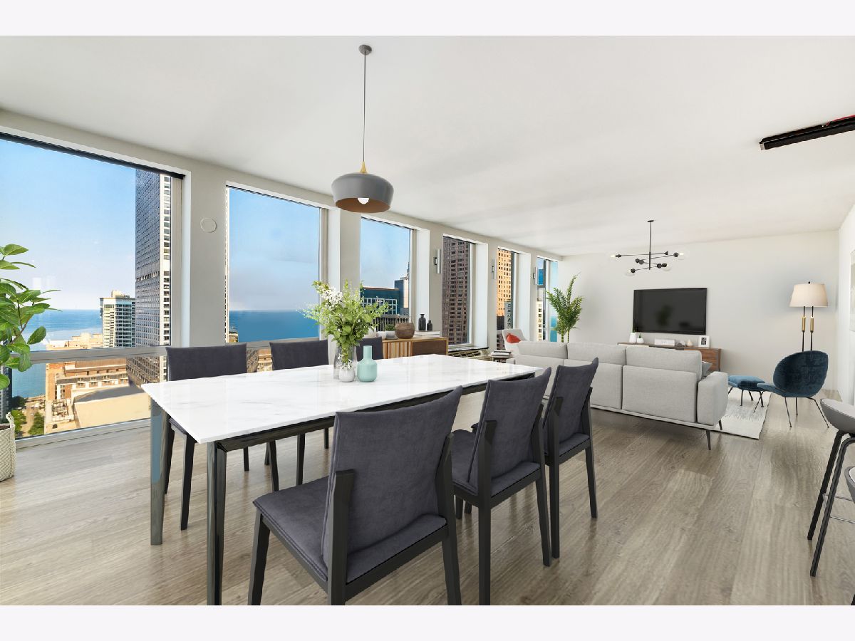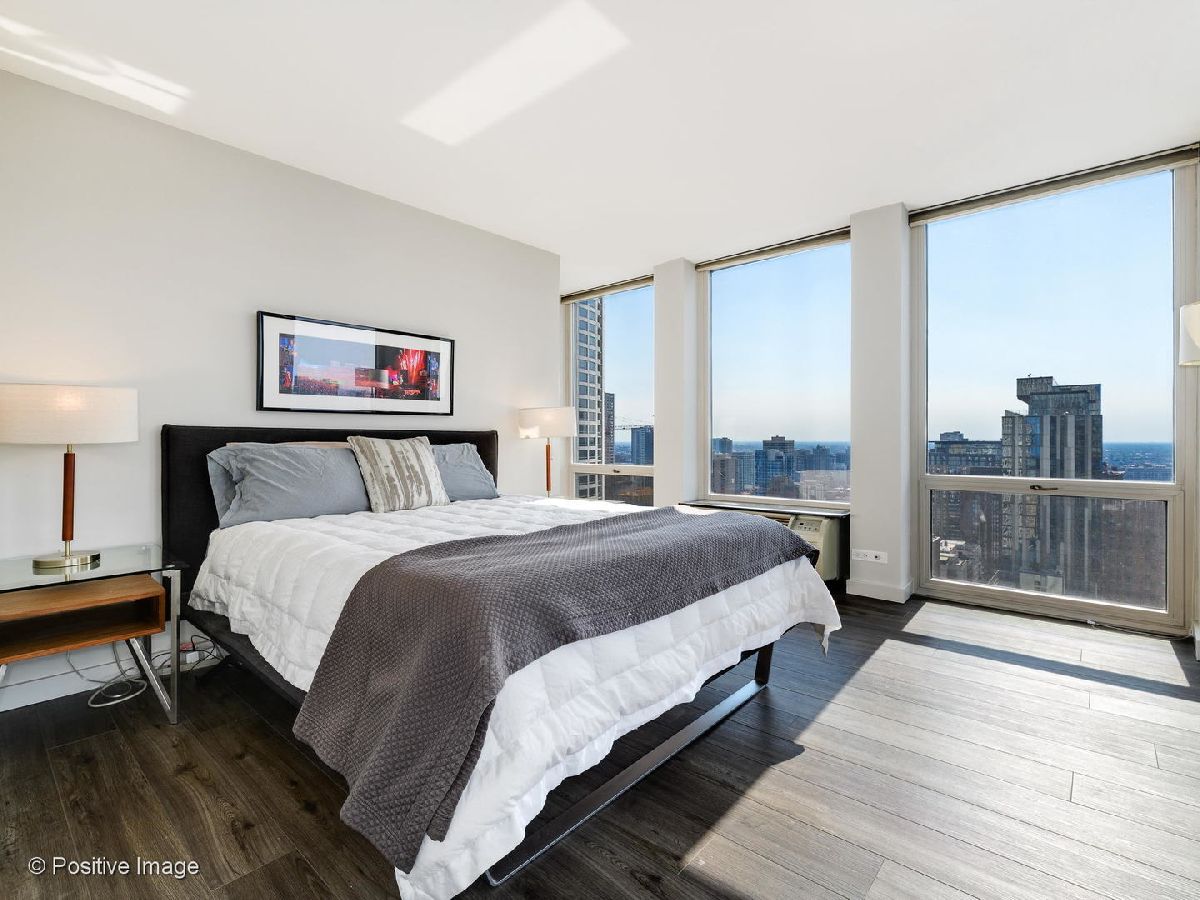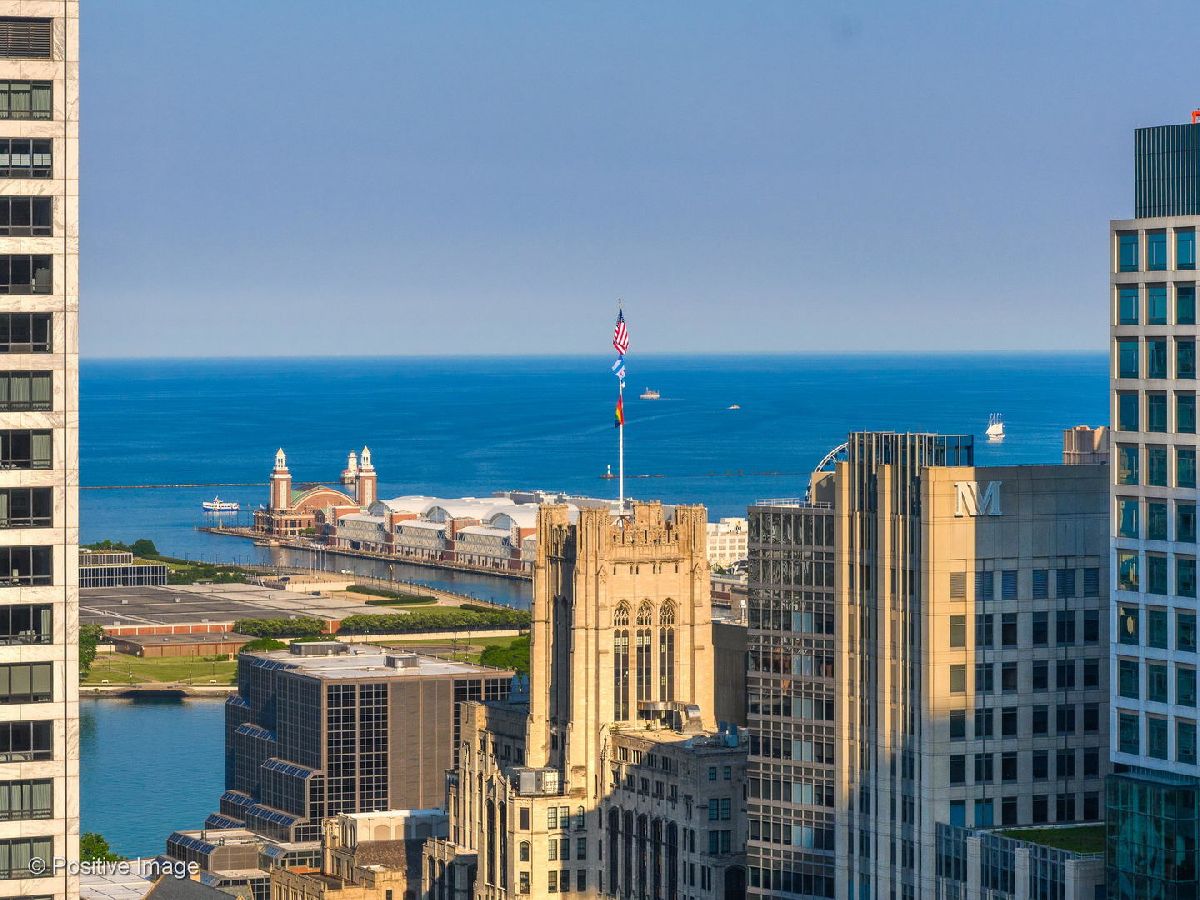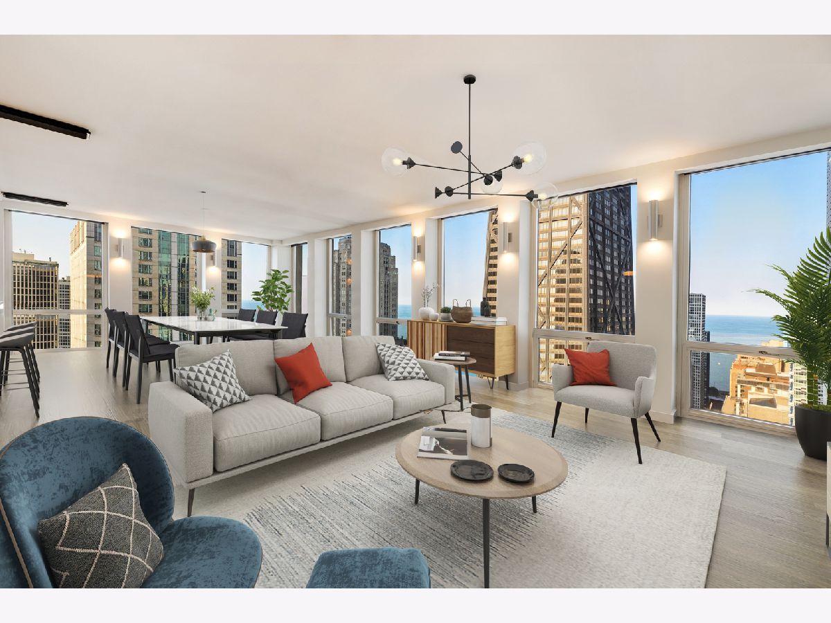 Don't miss this spectacular remodel with striking lake and city views from every exposure in this home. As you enter the home you get a nice peek of the views as you are looking out the north-facing windows. You are then drawn into the open kitchen, living and dining room with a corner exposure and a wall of east and north-facing floor-to-ceiling windows. There is ample room for a large dining table and oversized furniture which creates a perfect space for intimate dinner parties and large scale entertaining. A thoughtful floating built-in was added in the dining room to create additional storage. The kitchen is a chef's dream with two-tone Ernestomeda cabinetry, seamless modern countertops that lead to continual backsplash, an 11' island, integrated Sub Zero refrigerator, integrated Miele dishwasher, Thermador induction cook top and Miele steam and convection oven. There is an additional row of Ernestomeda cabinetry which houses pantry space with shelving for maximum storage and an interior lit, built-in bar cupboard with retracting doors. No detail was overlooked in this kitchen layout and is a show stopper! The master bedroom was reconfigured to accommodate a wonderfully sized walk-in closet but doesn't detract from the usefulness of the corner exposure master bedroom with north and west views. The well thought-out ensuite bathroom has a glass-enclosed walk-in shower with rain shower head and hand-held, wide floating vanity with drawers, a tall built-in wall medicine cabinet and Toto high-end toilet which is heated and self-flushing. The second bedroom has west views and an organized, built-in closet. Located just off the foyer is a large bonus room which serves as a walk-in closet/storage room with built-in shelving - this could easily be a home office as well. For true convenience, the home has an in-unit Bosch washer and dryer, and massive storage unit on the same floor! This full amenity building offers 24 hour door staff, extensive gym, outdoor pool and sundeck, grill deck and large party room. This full service building has immediate access to the Magnificent Mile and everything the area offers, including Oak St. Beach, Lake Shore Drive, Northwestern Hospital, plus an abundant amount of shopping, restaurants and entertainment options. This location has it all! Deeded parking sold separately.