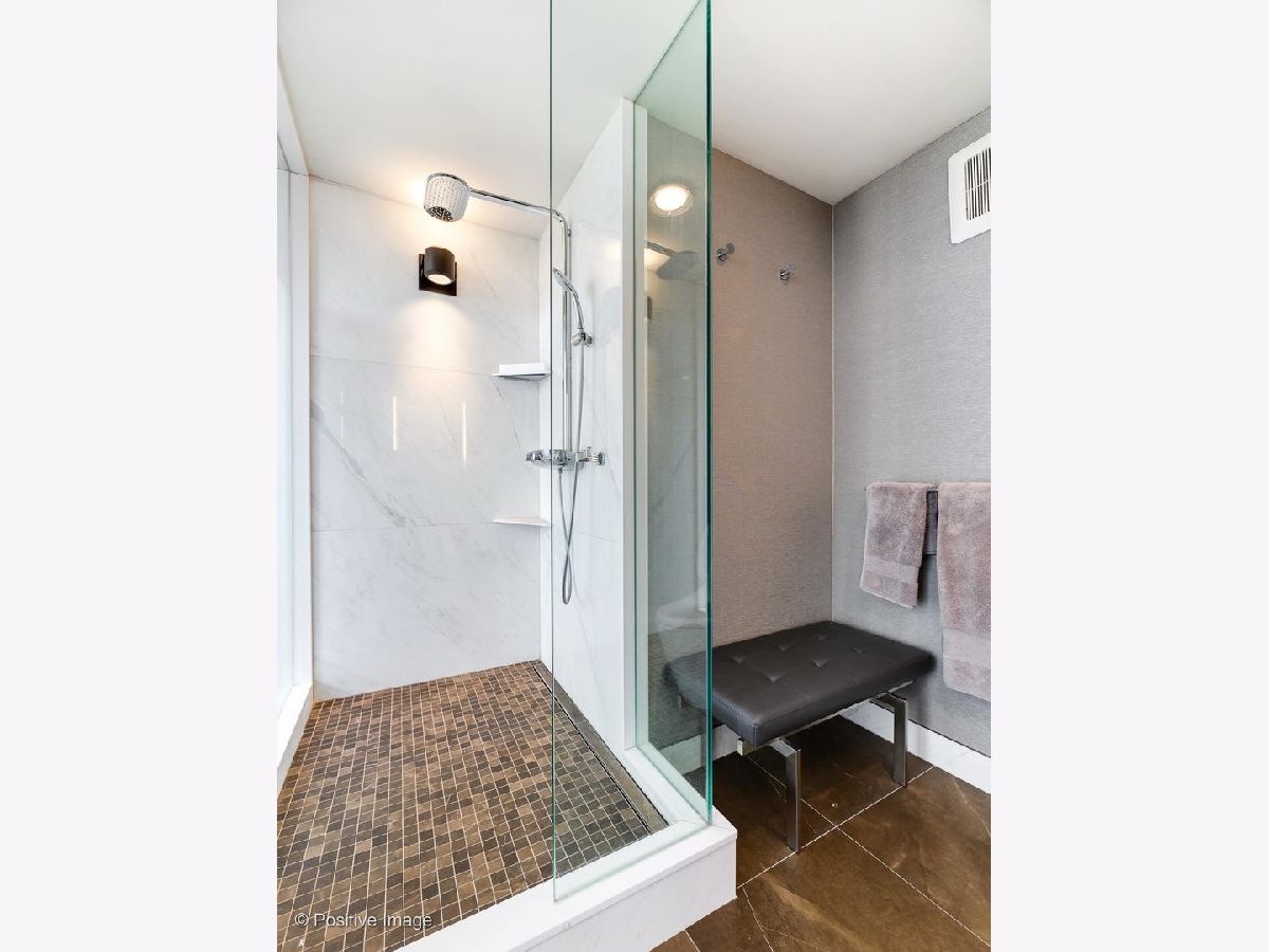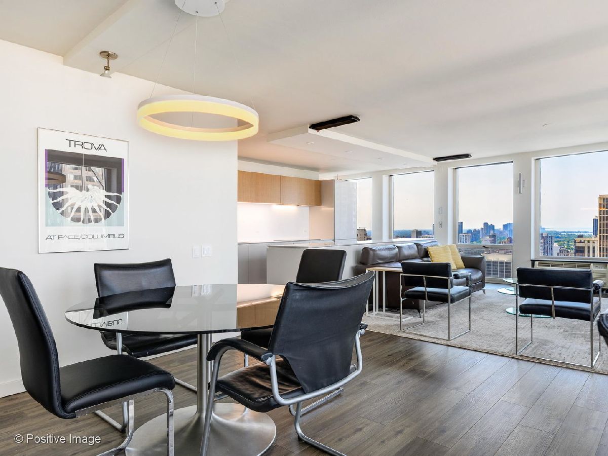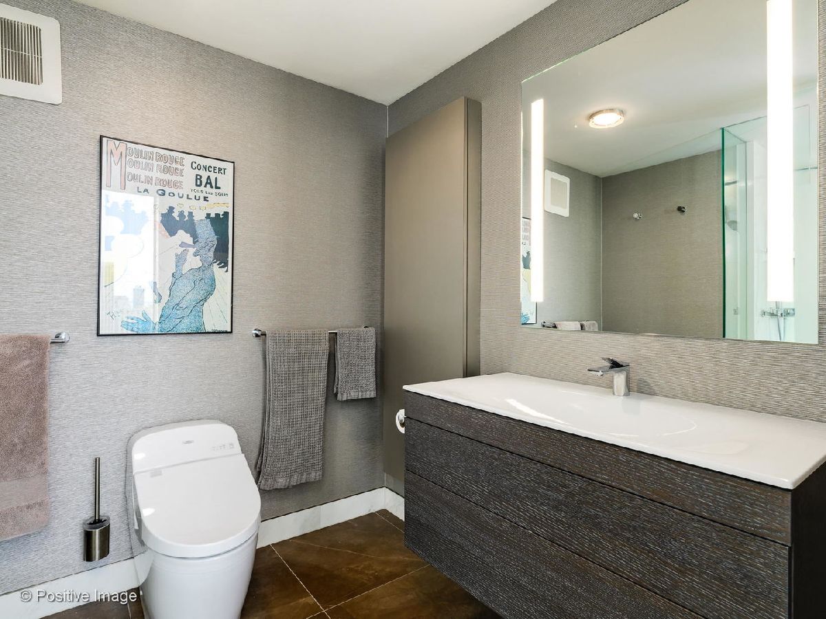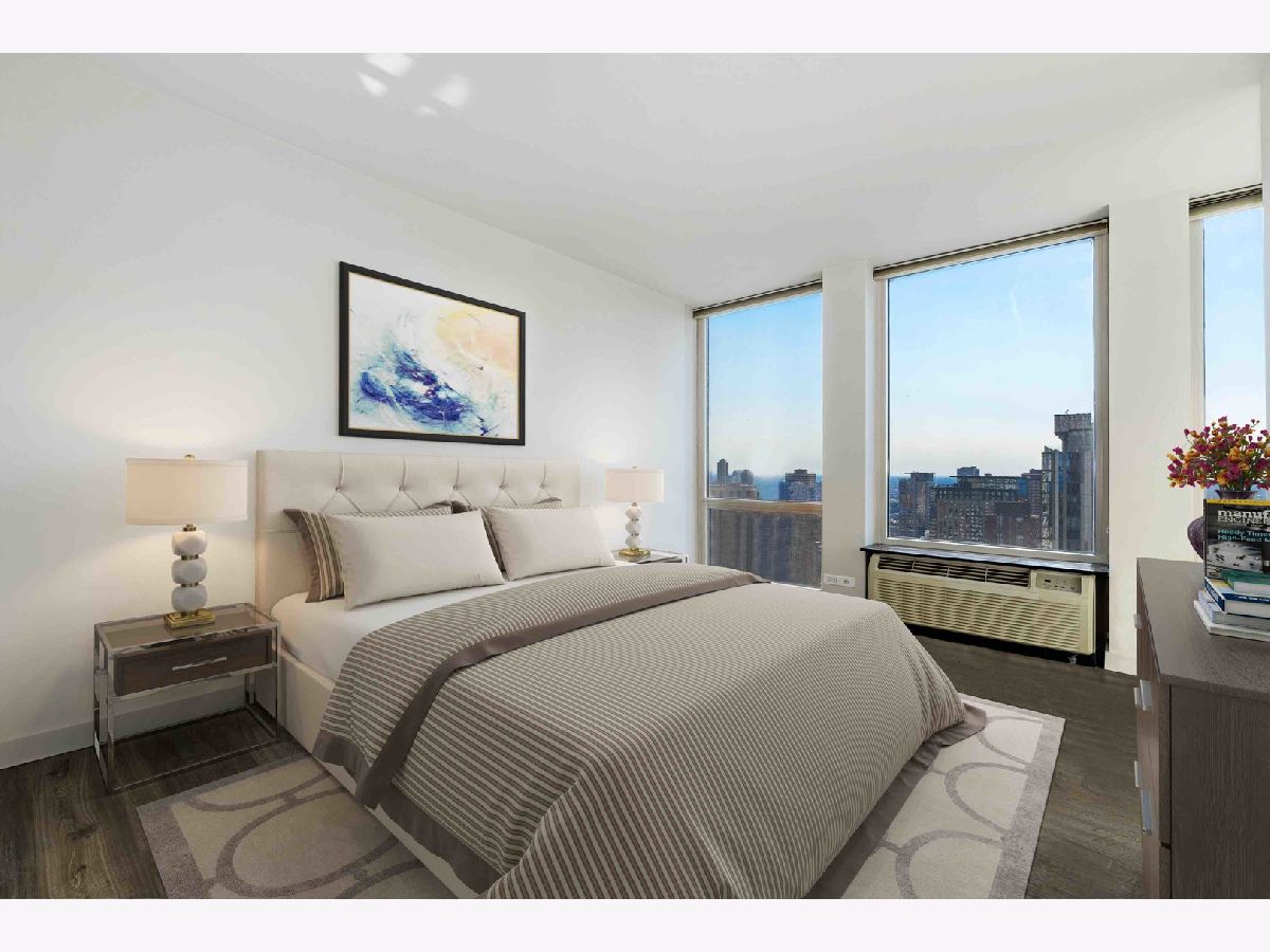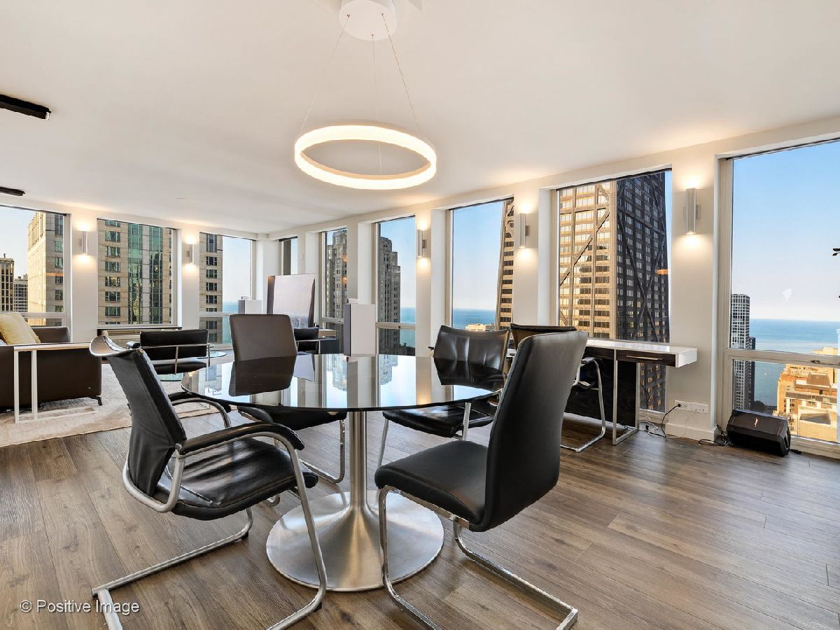 Don't miss this spectacular remodel with striking lake and city views from every exposure in this home. As you enter the home you get a nice peek of the views as you are looking out the north-facing windows. You are then drawn into the open kitchen, living and dining room with a corner exposure and a wall of east and north-facing floor-to-ceiling windows. There is ample room for a large dining table and oversized furniture which creates a perfect space for intimate dinner parties and large scale entertaining. A thoughtful floating built-in was added in the dining room to create additional storage. The kitchen is a chef's dream with two-tone Ernestomeda cabinetry, seamless modern countertops that lead to continual backsplash, an 11' island, integrated Sub Zero refrigerator, integrated Miele dishwasher, Thermador induction cook top and Miele steam and convection oven. There is an additional row of Ernestomeda cabinetry which houses pantry space with shelving for maximum storage and an interior lit, built-in bar cupboard with retracting doors. No detail was overlooked in this kitchen layout and is a show stopper! The master bedroom was reconfigured to accommodate a wonderfully sized walk-in closet but doesn't detract from the usefulness of the corner exposure master bedroom with north and west views. The well thought-out ensuite bathroom has a glass-enclosed walk-in shower with rain shower head and hand-held, wide floating vanity with drawers, a tall built-in wall medicine cabinet and Toto high-end toilet which is heated and self-flushing. The second bedroom has west views and an organized, built-in closet. Located just off the foyer is a large bonus room which serves as a walk-in closet/storage room with built-in shelving - this could easily be a home office as well. For true convenience, the home has an in-unit Bosch washer and dryer, and massive storage unit on the same floor! This full amenity building offers 24 hour door staff, extensive gym, outdoor pool and sundeck, grill deck and large party room. This full service building has immediate access to the Magnificent Mile and everything the area offers, including Oak St. Beach, Lake Shore Drive, Northwestern Hospital, plus an abundant amount of shopping, restaurants and entertainment options. This location has it all! Deeded parking sold separately.
