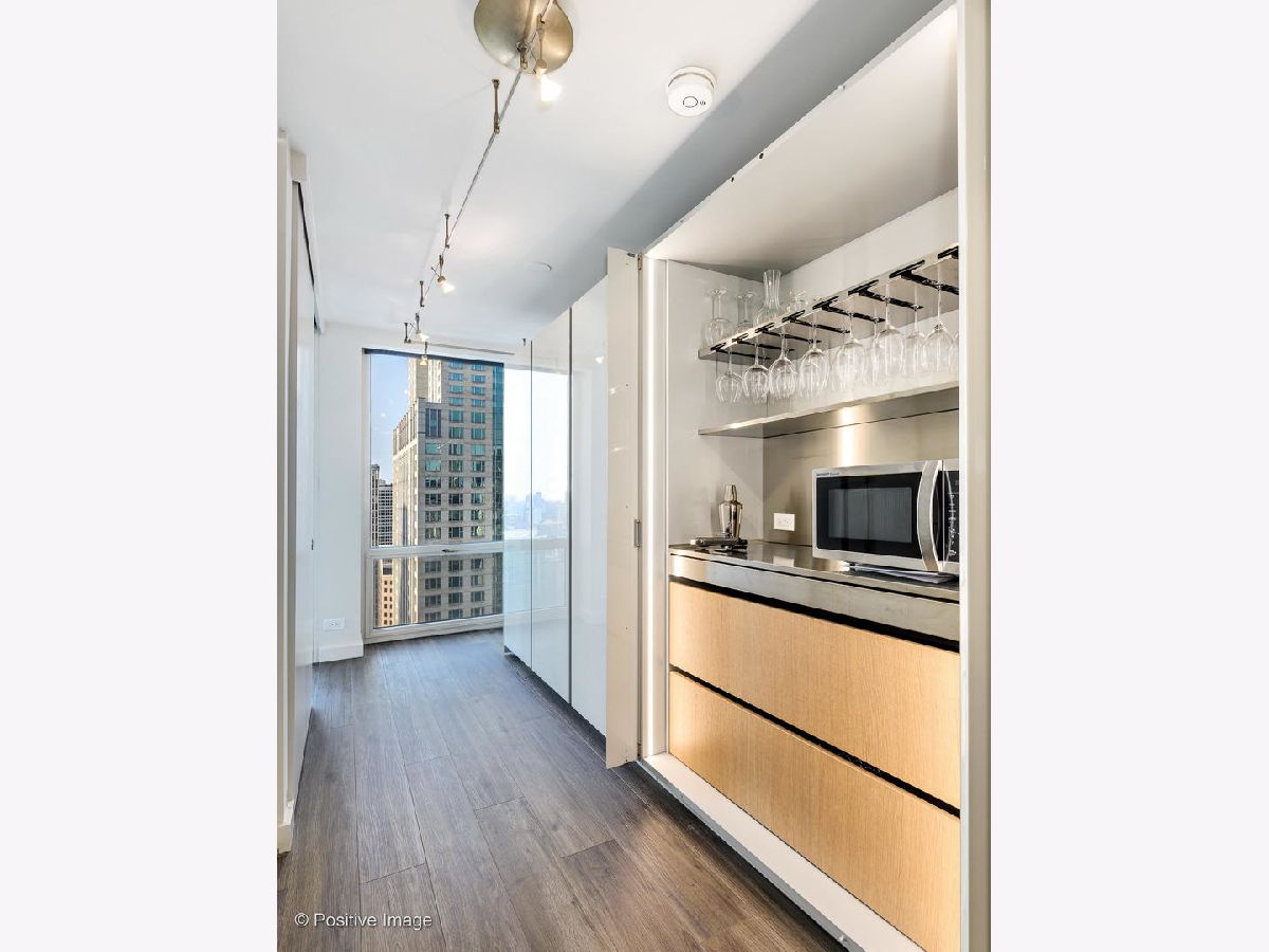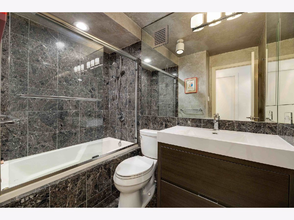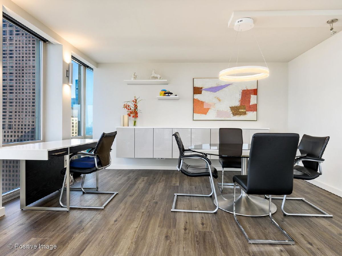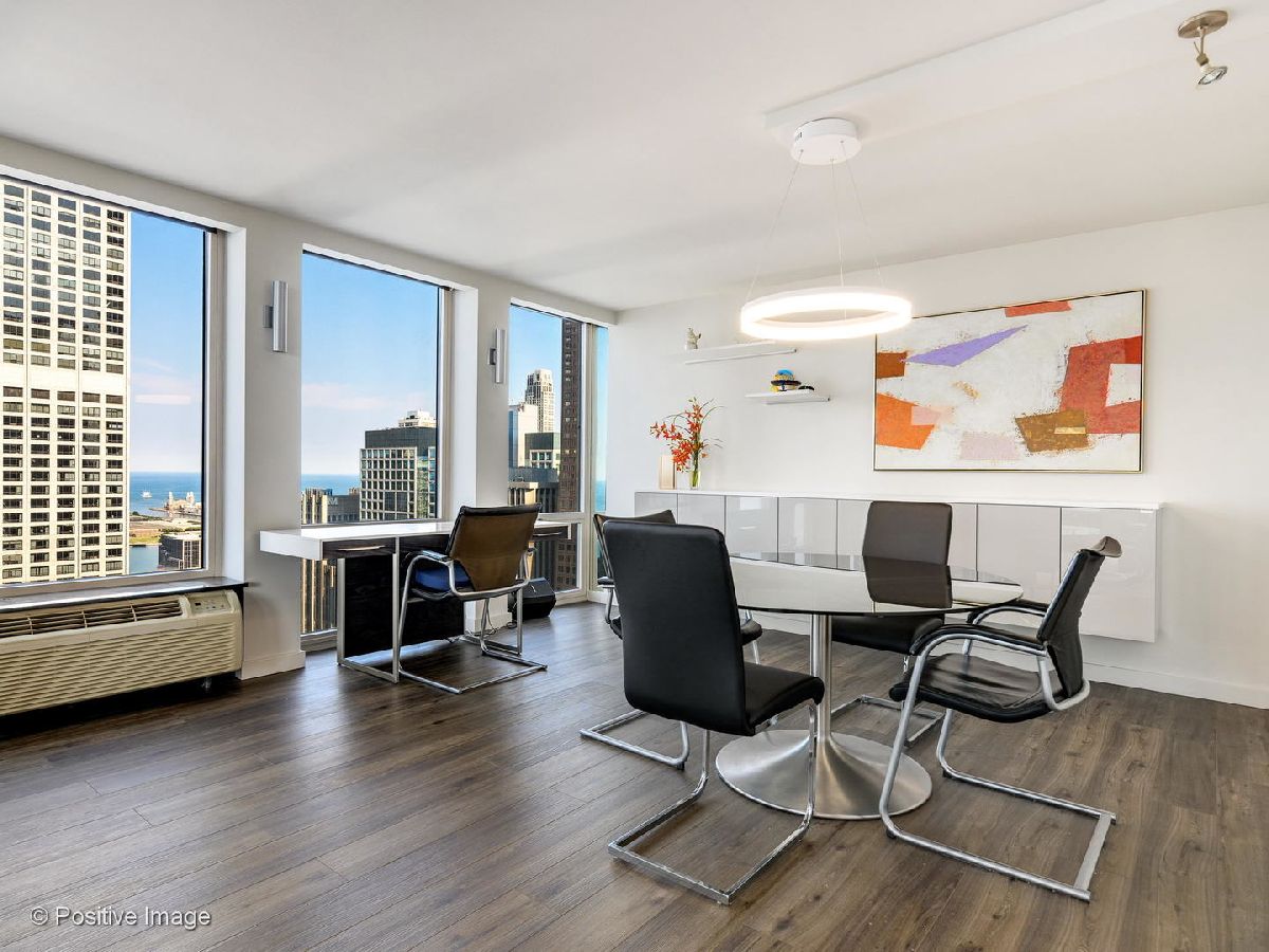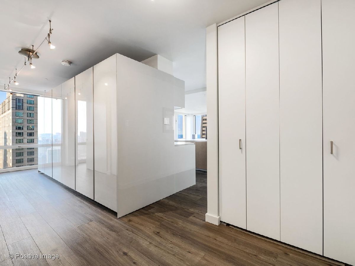 Don't miss this spectacular remodel with striking lake and city views from every exposure in this home. As you enter the home you get a nice peek of the views as you are looking out the north-facing windows. You are then drawn into the open kitchen, living and dining room with a corner exposure and a wall of east and north-facing floor-to-ceiling windows. There is ample room for a large dining table and oversized furniture which creates a perfect space for intimate dinner parties and large scale entertaining. A thoughtful floating built-in was added in the dining room to create additional storage. The kitchen is a chef's dream with two-tone Ernestomeda cabinetry, seamless modern countertops that lead to continual backsplash, an 11' island, integrated Sub Zero refrigerator, integrated Miele dishwasher, Thermador induction cook top and Miele steam and convection oven. There is an additional row of Ernestomeda cabinetry which houses pantry space with shelving for maximum storage and an interior lit, built-in bar cupboard with retracting doors. No detail was overlooked in this kitchen layout and is a show stopper! The master bedroom was reconfigured to accommodate a wonderfully sized walk-in closet but doesn't detract from the usefulness of the corner exposure master bedroom with north and west views. The well thought-out ensuite bathroom has a glass-enclosed walk-in shower with rain shower head and hand-held, wide floating vanity with drawers, a tall built-in wall medicine cabinet and Toto high-end toilet which is heated and self-flushing. The second bedroom has west views and an organized, built-in closet. Located just off the foyer is a large bonus room which serves as a walk-in closet/storage room with built-in shelving - this could easily be a home office as well. For true convenience, the home has an in-unit Bosch washer and dryer, and massive storage unit on the same floor! This full amenity building offers 24 hour door staff, extensive gym, outdoor pool and sundeck, grill deck and large party room. This full service building has immediate access to the Magnificent Mile and everything the area offers, including Oak St. Beach, Lake Shore Drive, Northwestern Hospital, plus an abundant amount of shopping, restaurants and entertainment options. This location has it all! Deeded parking sold separately.