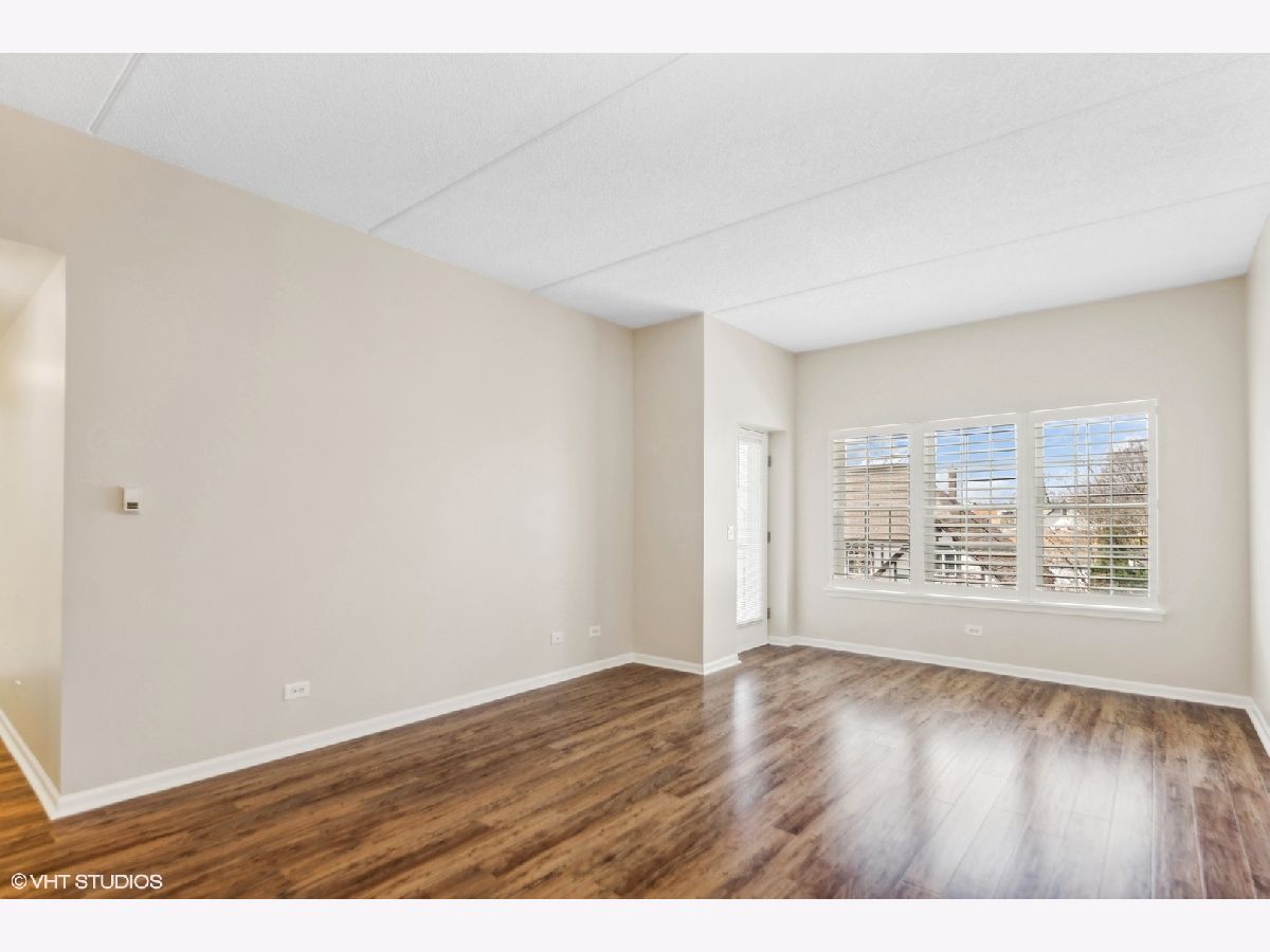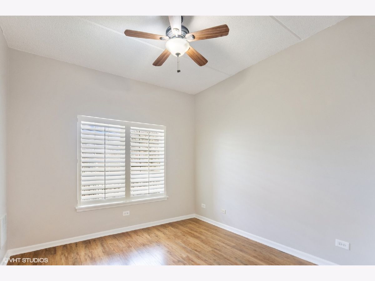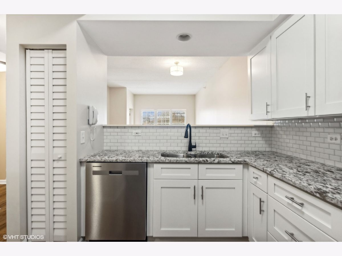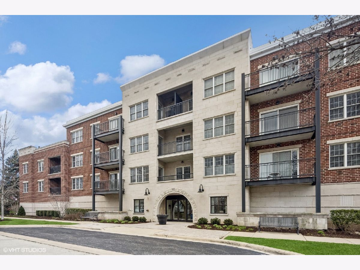This IN TOWN gorgeous 2 bedroom. 2 bath condo has been remodeled to sell with new kitchen, granite counter tops, backsplash, pantry closet, flooring & stainless appliances, all new flooring thru-out (Pergo engineered hardwood), updated baths (shower door, cabinet & lighting), lighting & plantation shutters. Outdoor balcony overlooks the street & there is access from the living room & the primary bedroom - great outdoor space. The oversized primary bedroom has a walk-in closet & private bath - plenty of space for a home office. Guest bedroom (no closet) also makes a good home office. Laundry closet. Front hall closet. Open modern layout! There is a 1 car garage spot (#9 - South door off elevator) & outdoor parking spots (1st come). This beautiful unit sits on a mostly residential treelined street & is IN TOWN! Lots of natural light. Storage locker off north side underground garage. Elmhurst train station, library, art museum, gym, restaurants, shopping and more are all in the neighborhood!