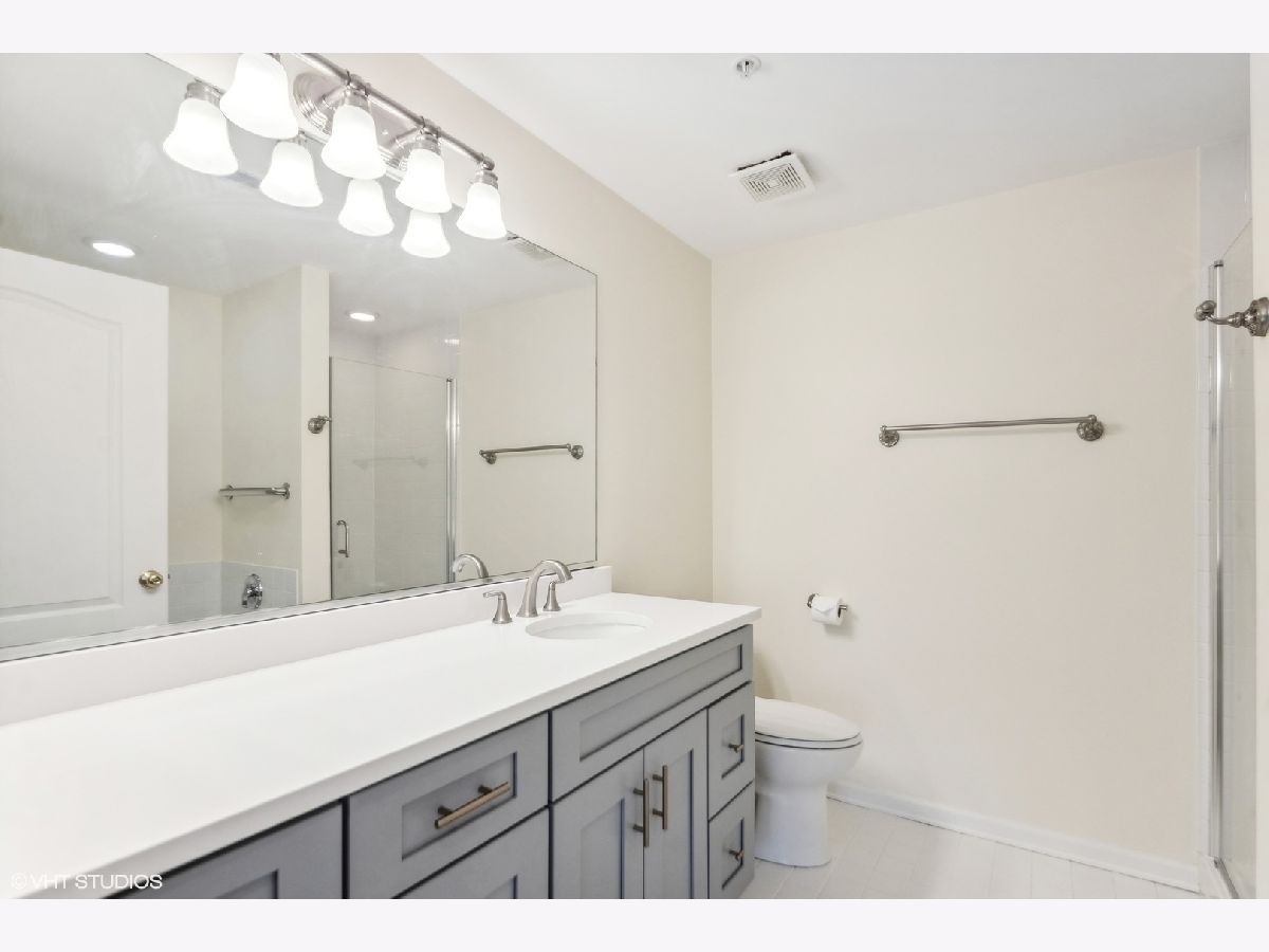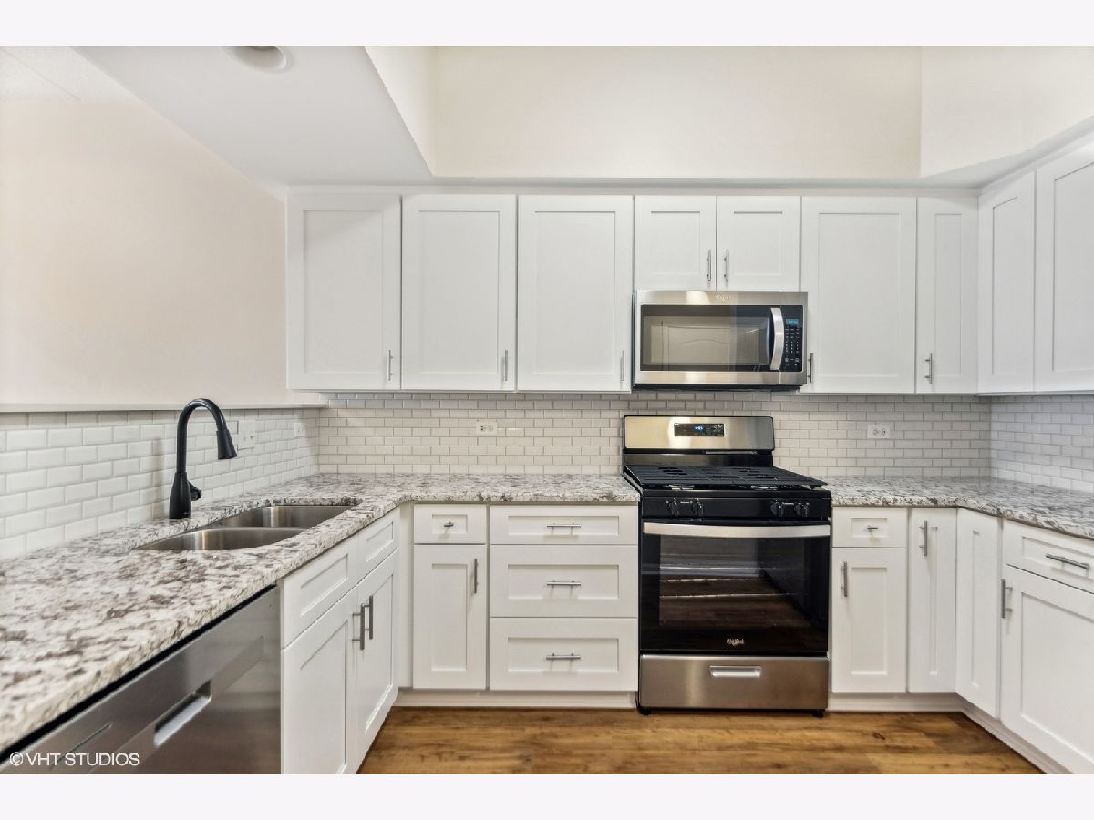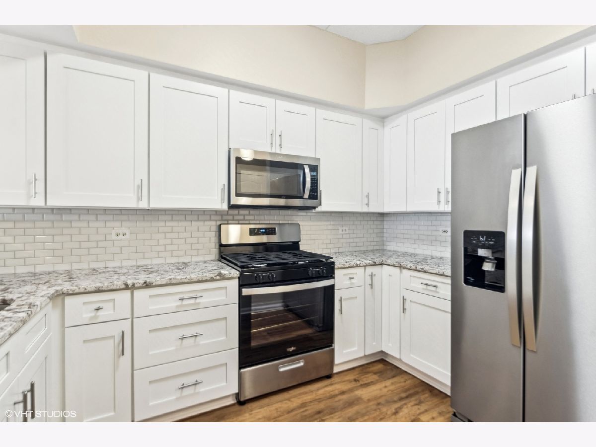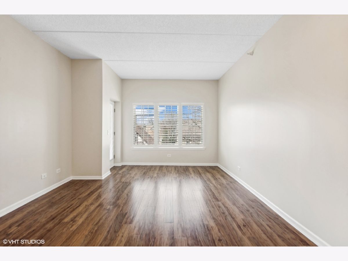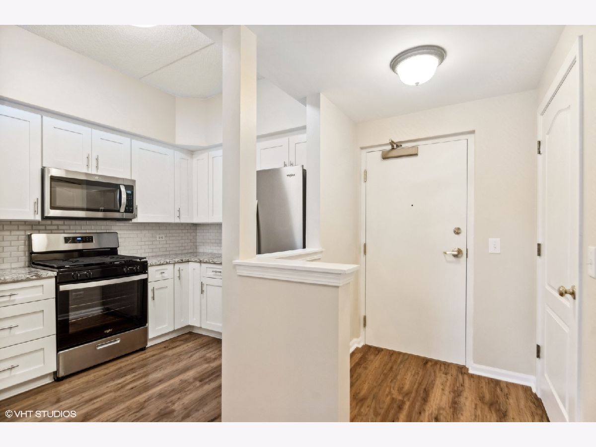 This IN TOWN gorgeous 2 bedroom. 2 bath condo has been remodeled to sell with new kitchen, granite counter tops, backsplash, pantry closet, flooring & stainless appliances, all new flooring thru-out (Pergo engineered hardwood), updated baths (shower door, cabinet & lighting), lighting & plantation shutters. Outdoor balcony overlooks the street & there is access from the living room & the primary bedroom - great outdoor space. The oversized primary bedroom has a walk-in closet & private bath - plenty of space for a home office. Guest bedroom (no closet) also makes a good home office. Laundry closet. Front hall closet. Open modern layout! There is a 1 car garage spot (#9 - South door off elevator) & outdoor parking spots (1st come). This beautiful unit sits on a mostly residential treelined street & is IN TOWN! Lots of natural light. Storage locker off north side underground garage. Elmhurst train station, library, art museum, gym, restaurants, shopping and more are all in the neighborhood!