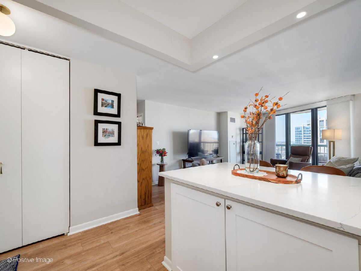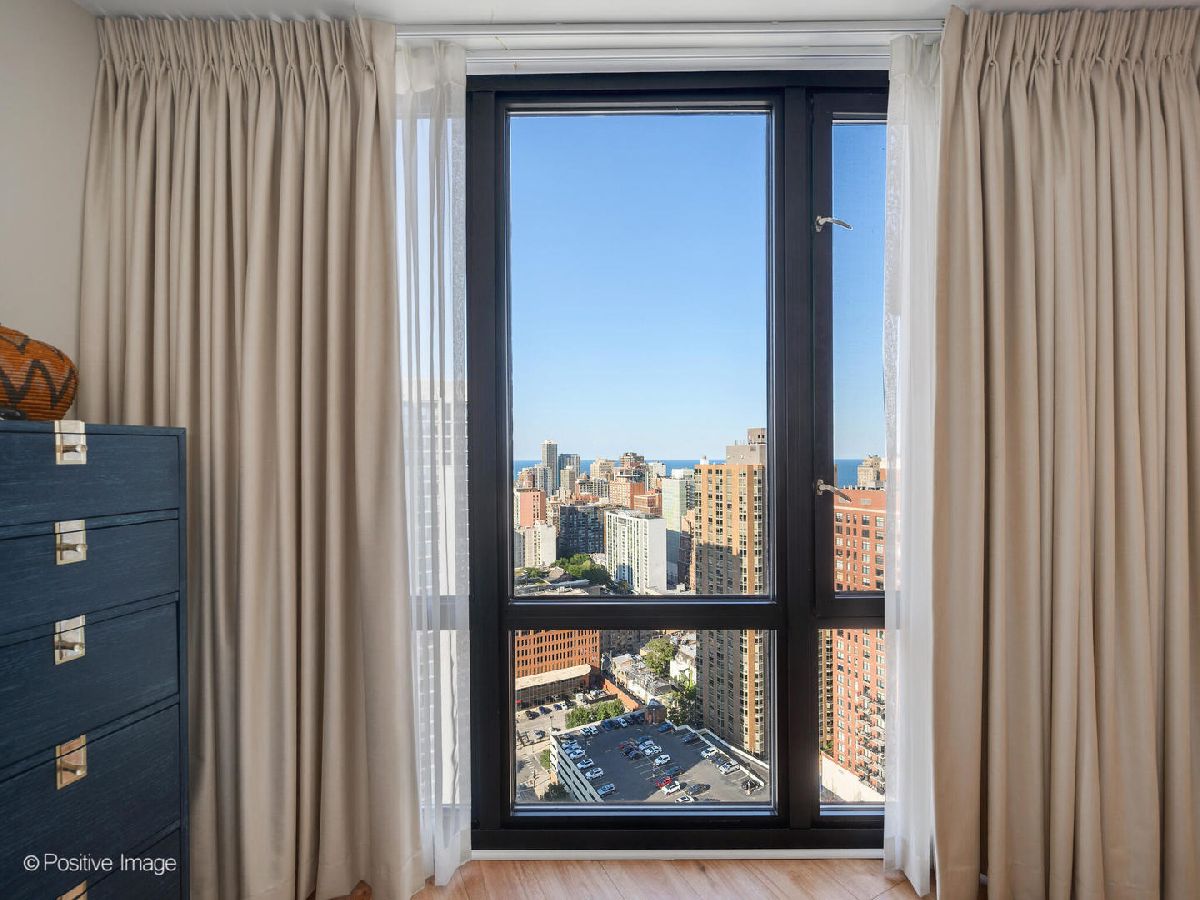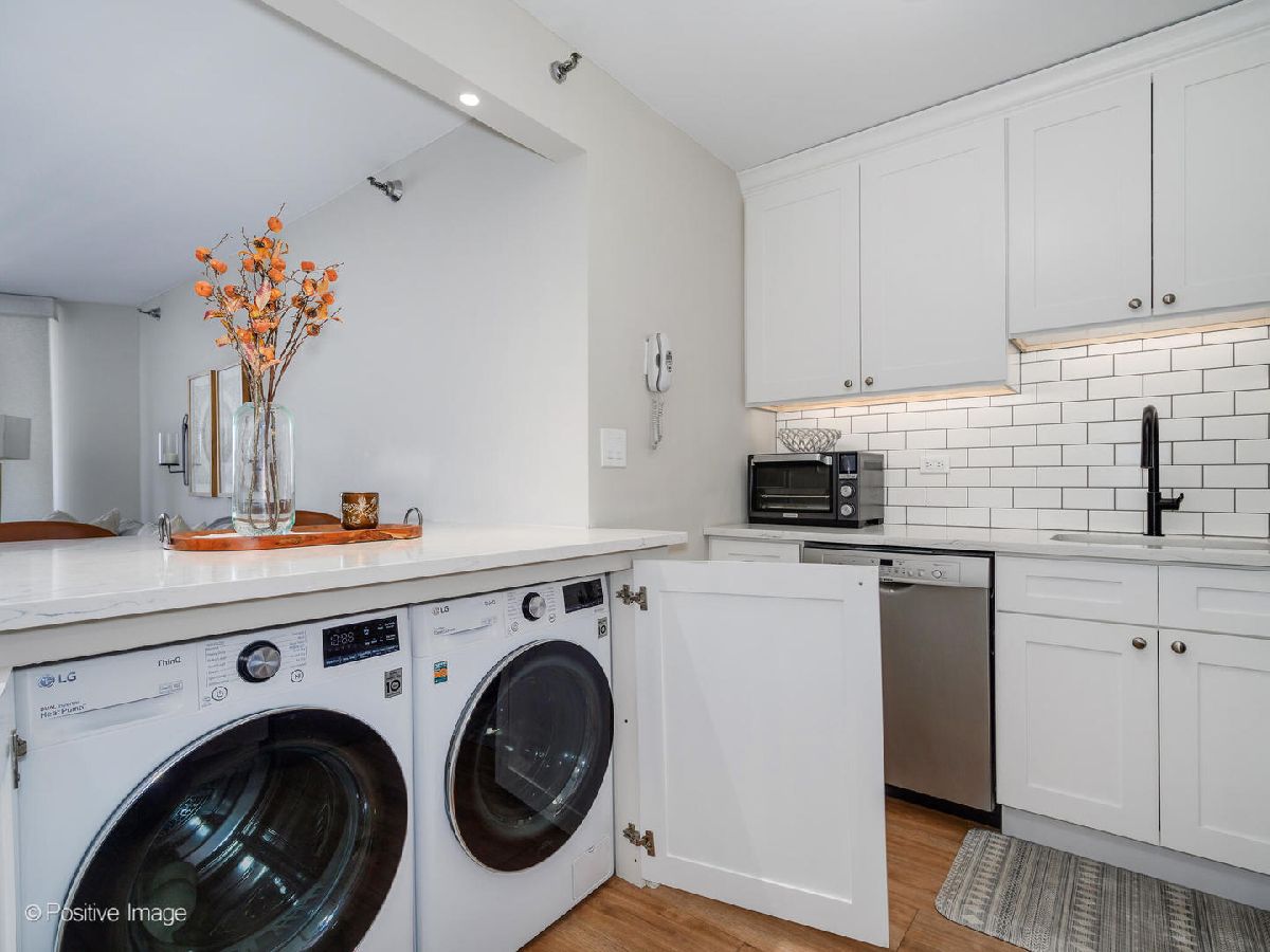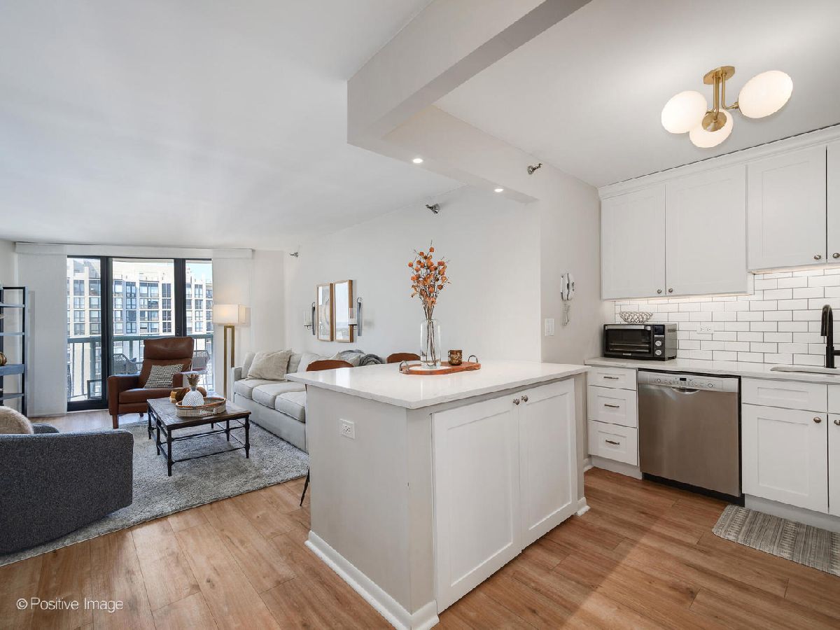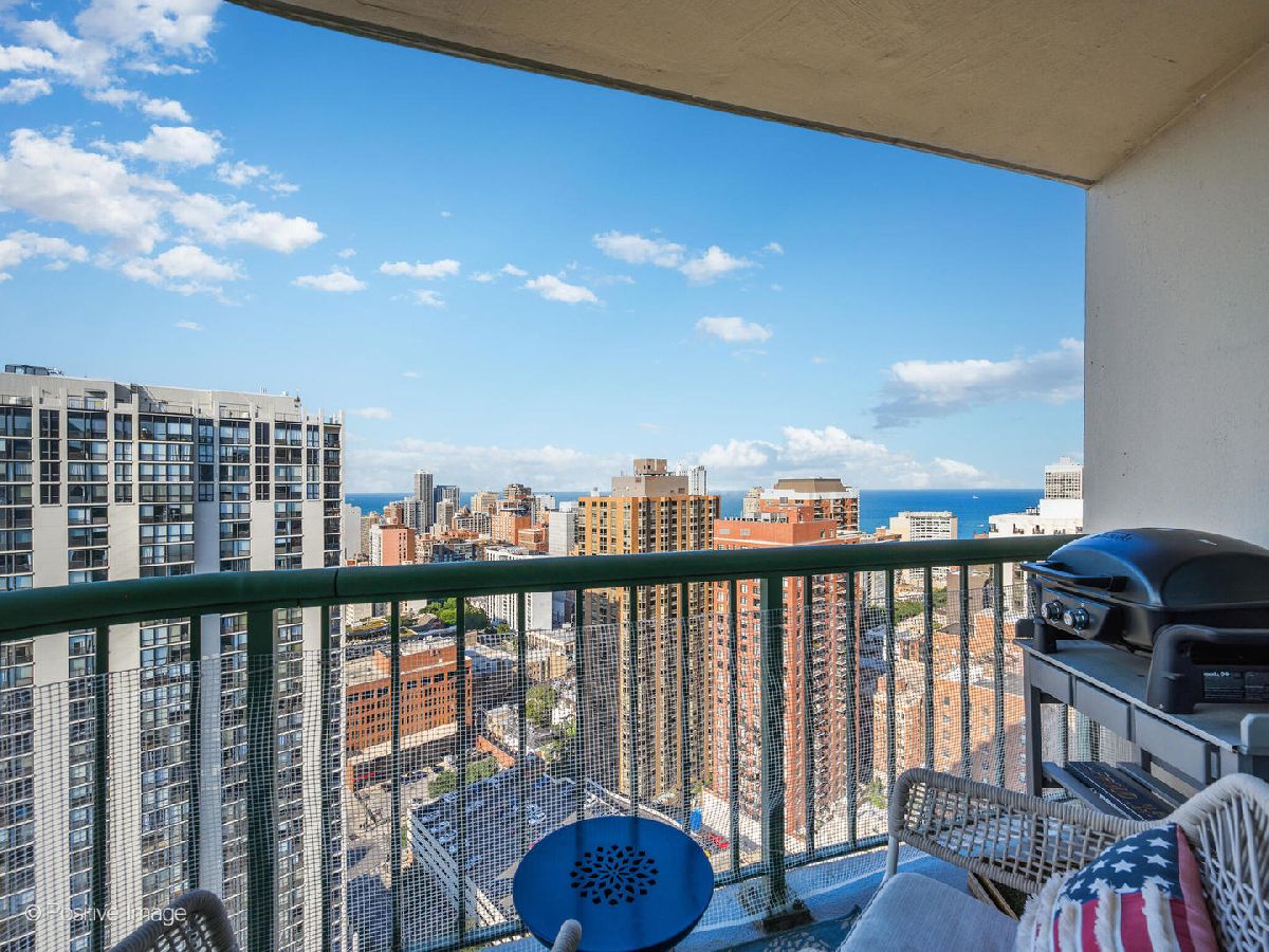 Experience gorgeous unobstructed city and lake views from this spacious high-floor 1-bedroom, 1-bath unit in the Gold Coast Galleria. The building offers full amenities, including a beautifully renovated lobby, updated hallways and elevators, and sun deck on the 8th floor. Residents enjoy direct access to the FFC Health Club, which features a pool, strength training equipment, group fitness classes, personal training services, a spa, and a cafe. With 24/7 door staff, on-site management, and an engineer, convenience and security are top priorities. Inside the unit, natural light pours in through floor-to-ceiling windows adorned with beautiful window treatments. Stunning North-East and West exposure. The kitchen has been completely redone with a new extra large island, new white cabinets, subway tile backsplash, quartz counter-tops and upgraded stainless steel Bosch and Whirlpool appliances. There is a FULL size side by side washer and dryer in the unit. The popcorn ceilings have been removed and repainted and the entire unit has been freshly painted, creating a clean and inviting atmosphere. New wide plank luxurious Mohawk Vinyl flooring throughout the unit. Step out onto your private balcony to take in panoramic North, East and West views-including views of Lake Michigan. Investor-friendly with no rental cap and a minimum lease term of six months, this property is located on a quiet one-way street in the heart of the Gold Coast. You'll be just steps away from restaurants, bars, boutique shopping, and cozy coffee spots. Public transit is easily accessible, with the Red Line just one block away and bus routes 22, 36, 70, and 156 nearby. One garage space #357 included in price!