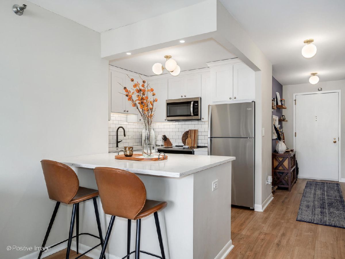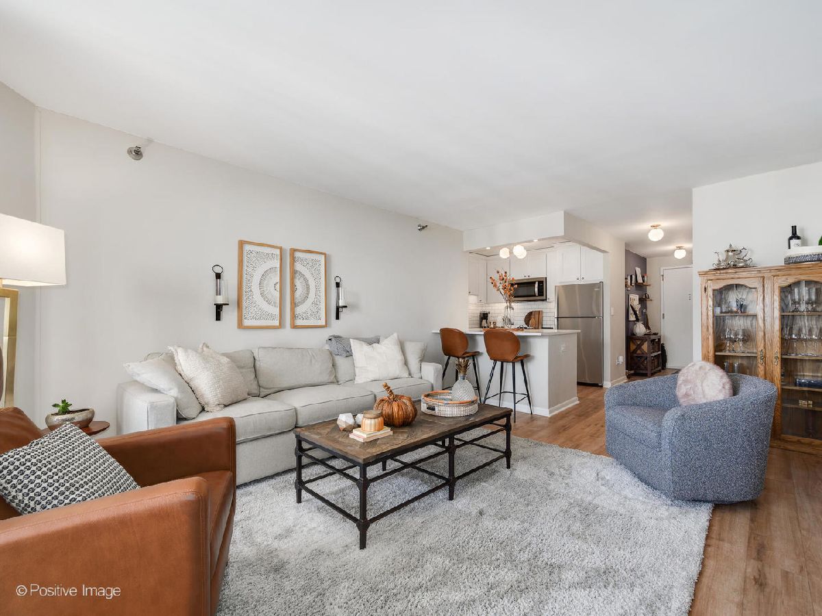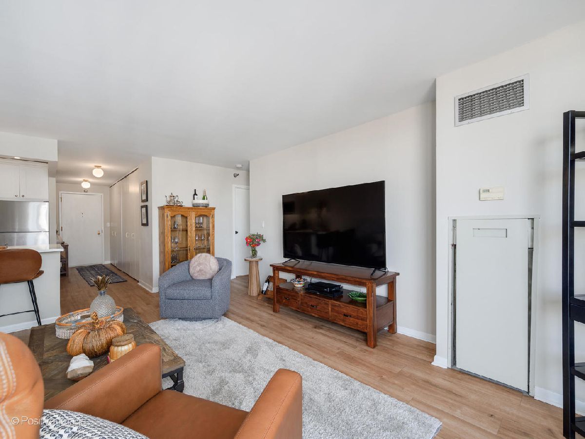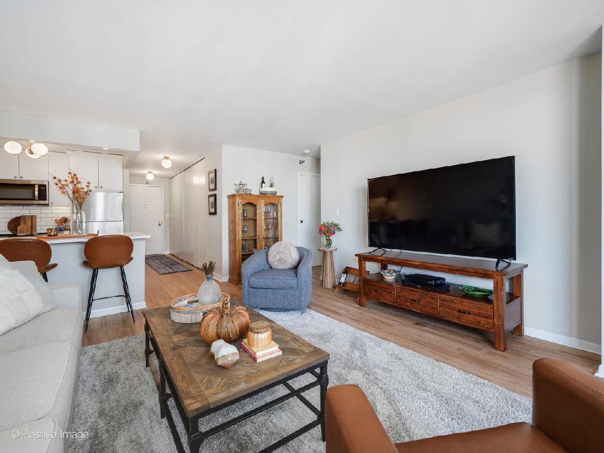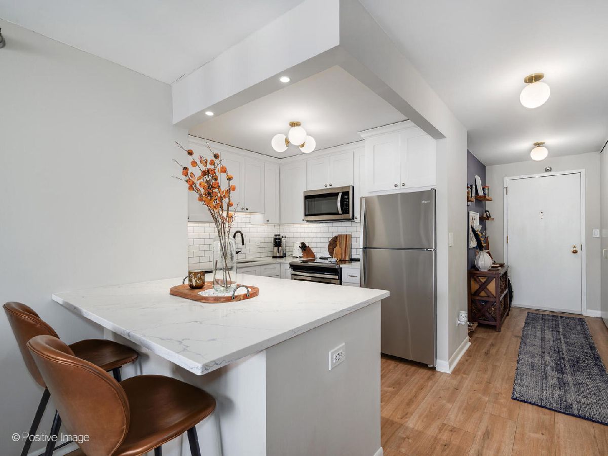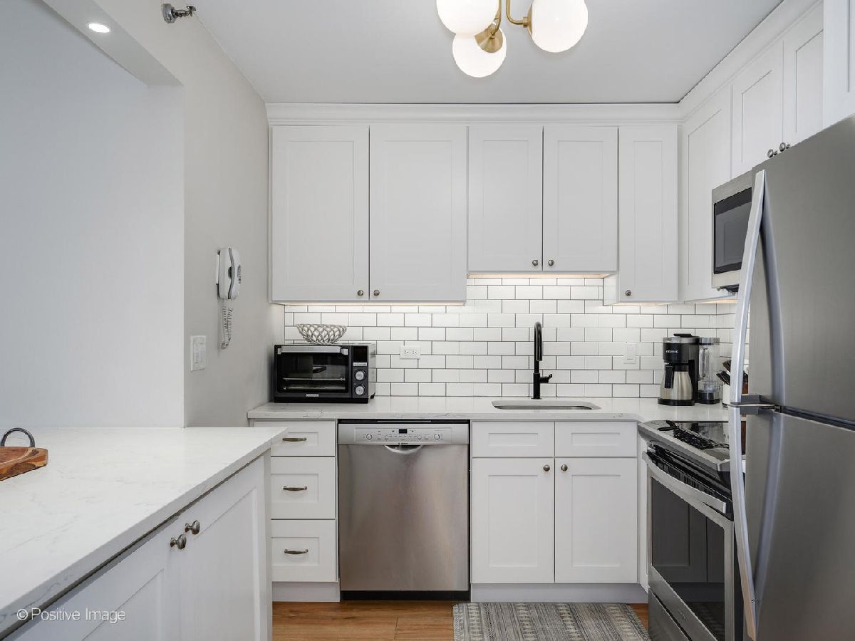 Experience gorgeous unobstructed city and lake views from this spacious high-floor 1-bedroom, 1-bath unit in the Gold Coast Galleria. The building offers full amenities, including a beautifully renovated lobby, updated hallways and elevators, and sun deck on the 8th floor. Residents enjoy direct access to the FFC Health Club, which features a pool, strength training equipment, group fitness classes, personal training services, a spa, and a cafe. With 24/7 door staff, on-site management, and an engineer, convenience and security are top priorities. Inside the unit, natural light pours in through floor-to-ceiling windows adorned with beautiful window treatments. Stunning North-East and West exposure. The kitchen has been completely redone with a new extra large island, new white cabinets, subway tile backsplash, quartz counter-tops and upgraded stainless steel Bosch and Whirlpool appliances. There is a FULL size side by side washer and dryer in the unit. The popcorn ceilings have been removed and repainted and the entire unit has been freshly painted, creating a clean and inviting atmosphere. New wide plank luxurious Mohawk Vinyl flooring throughout the unit. Step out onto your private balcony to take in panoramic North, East and West views-including views of Lake Michigan. Investor-friendly with no rental cap and a minimum lease term of six months, this property is located on a quiet one-way street in the heart of the Gold Coast. You'll be just steps away from restaurants, bars, boutique shopping, and cozy coffee spots. Public transit is easily accessible, with the Red Line just one block away and bus routes 22, 36, 70, and 156 nearby. One garage space #357 included in price!