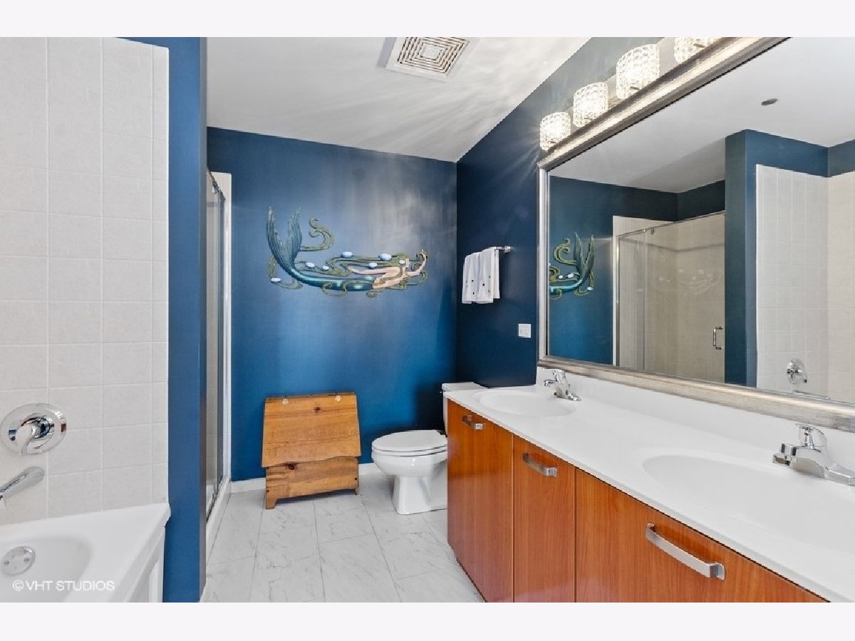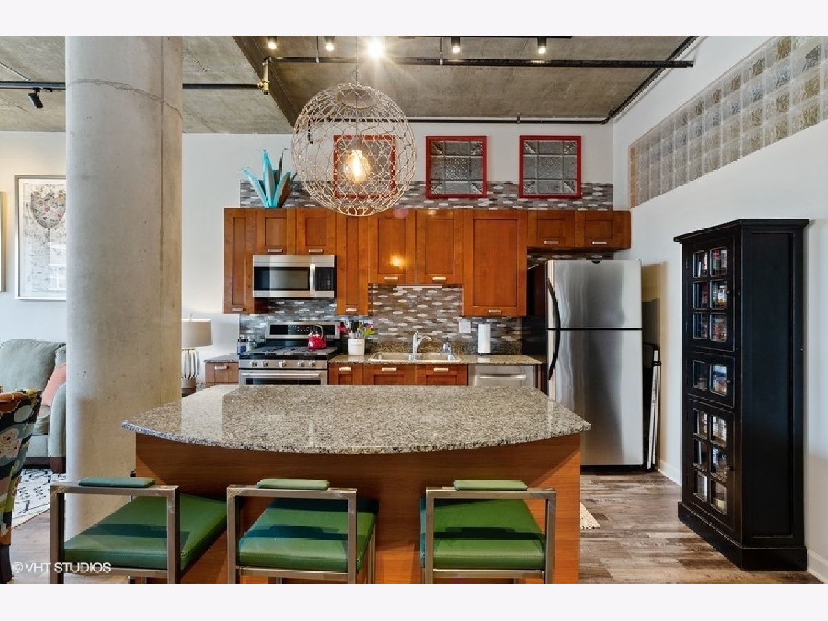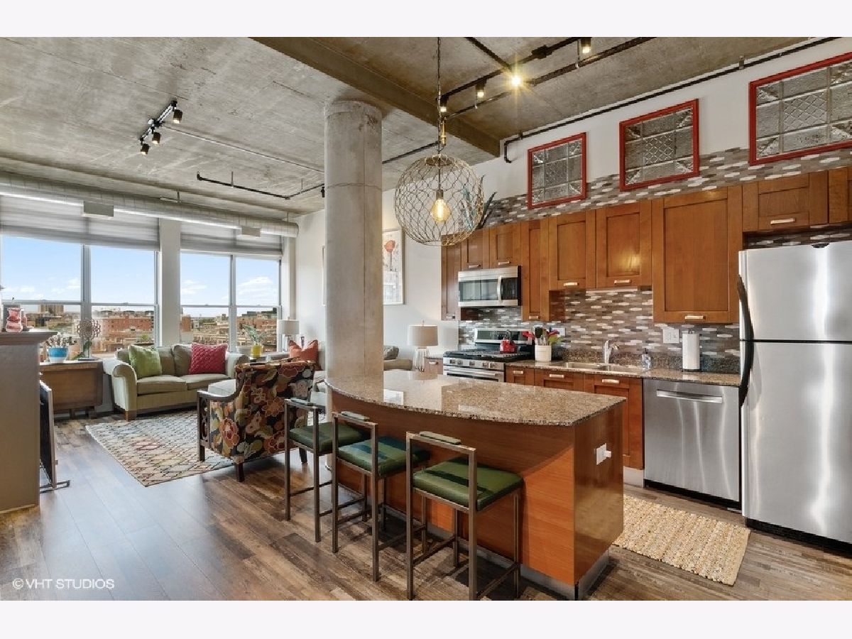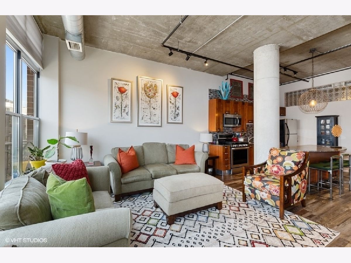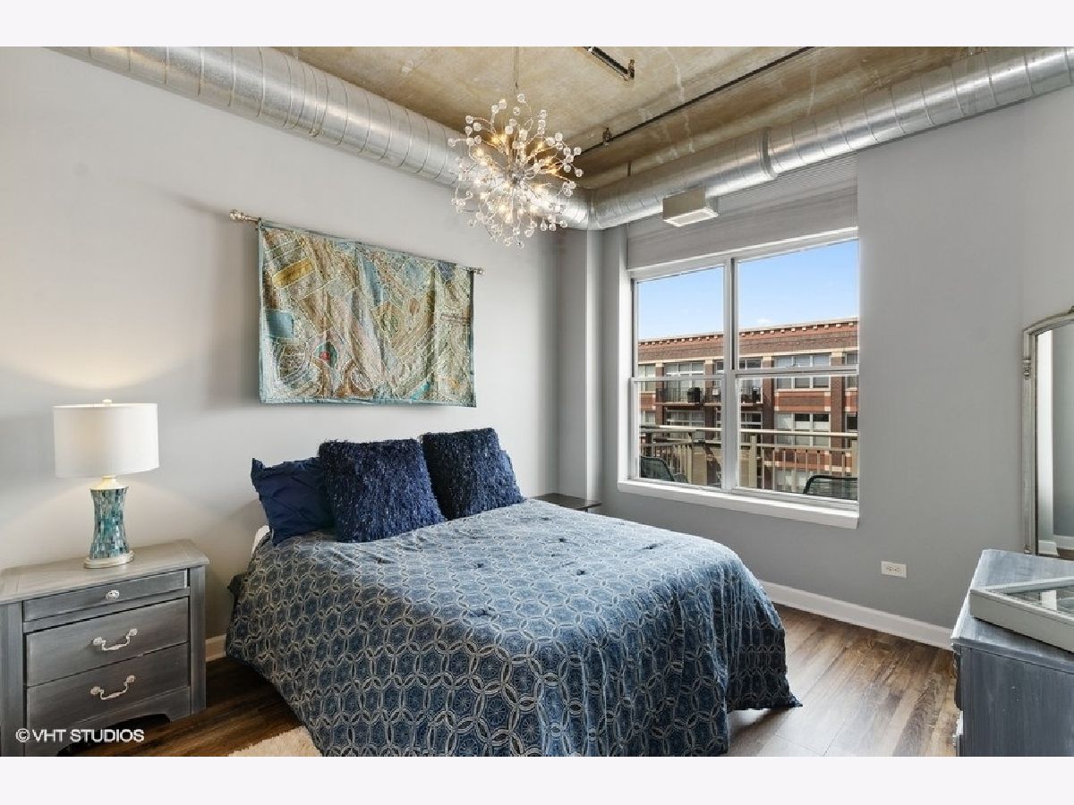 Amazing recently updated two bedroom/two bath condo with unobstructed gorgeous sunset views in the heart of the West Loop! This high floor unit features newer LVF floors throughout, two fully enclosed bedrooms, two newly remodeled baths, central heat/air, in-unit washer/dryer and a west facing balcony. The updated kitchen has tons of cabinets for storage, granite countertops, stainless steel appliances and mosaic tile backsplash. The open floorplan is perfect for entertaining. Large windows in living room and master bedroom allow for tons of natural light. Building offers 24 hour doorperson, on-site property management, dry cleaners, restaurant on first level, bike storage and large additional storage cage included in price. Great walking location to all the West Loop has to offer. Close to Mary Bartlelme Park, public transportation, several grocery stores, Target and many restaurants on Fulton & Randolph St! Prime heated garage spot on first floor, additional $25K.