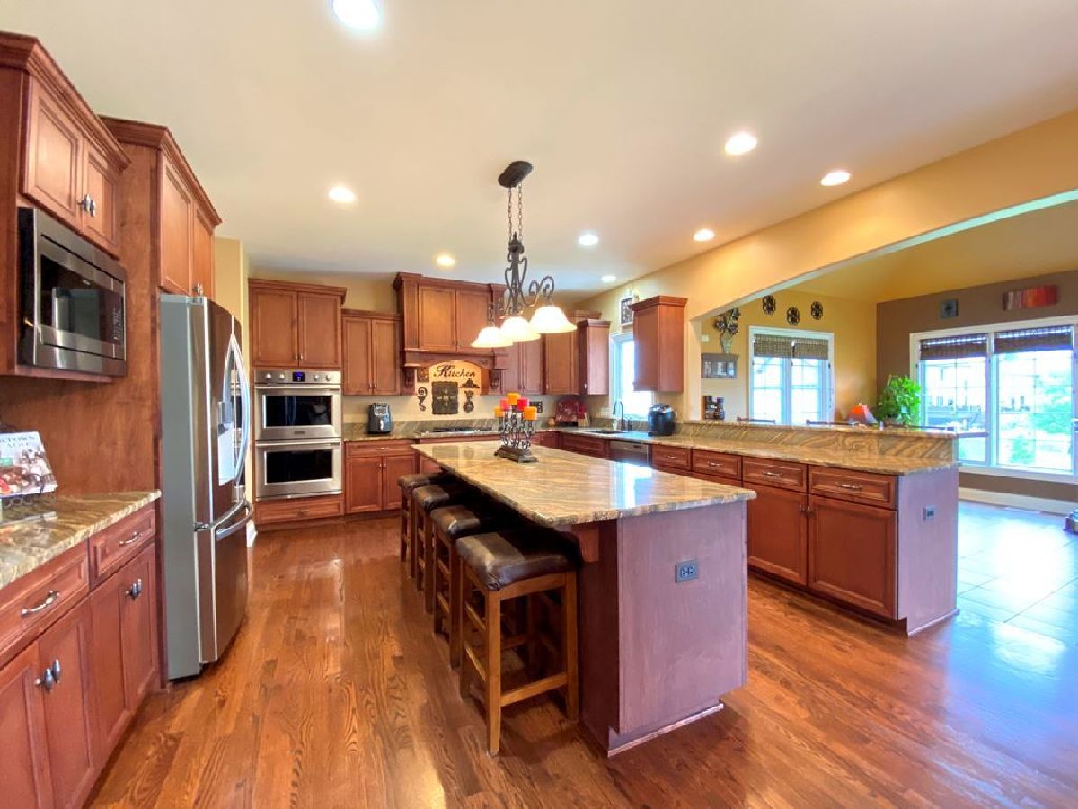 Welcome to SPECTACULAR! Looking to impress? Pride yourself in knowing that you will own one of THE largest homes that Oswego township has to offer ... the "creme de la creme" of Oswego. This East facing custom built home will completely KNOCK YOUR SOCKS OFF! Every feature and amenity you could dream of and more is executed from its stately exterior and curb appeal to its interior charisma and rare walkout basement; every inch of this castle screams class! Stunningly open 2-story entry is adorned by the elegant living room and dining room on each side. The entire floor plan with almost 5800 Square feet of luxury finished living space is the epitome of everything you could need or want from perfect entertaining to an over the top level of comfort living! Hardwood floors and porcelain tile are accented with 5 1/2" baseboards! White solid core door/trim package! Crown molding and dynamic custom trim finishes in all the right places! Oversized 1st level family room w/full masonry fireplace, hearth and mantel opens to dynamic custom gourmet kitchen offering 9ft extended island, 2 breakfast bars, granite c-tops, stainless steel appliances (including double oven and cooktop range hood), generous pantry and an abundance of cascading cabinets w/crown molding. Sunroom off the kitchen is an absolute bonus especially from an entertaining standpoint and provides convenient deck access! Dual staircases are perfectly located! Large mud room w/generous sized closet! Extended laundry room (washer/dryer included) offers utility sink and a full wall of mounted cabinets for extra storage! (2) 1st level 1/2 baths on each end of the home! In this work from home world LOVE the 1st floor den - so large that there's enough room for multiple workstations AND study/gaming areas for the kids! Prepare to be impressed as you embark upon the 2nd level that is full of nothing but intentional surprises! HUGE 2nd level family room w/2nd fireplace and study area! Incredible master suite features double door entry, ceiling fan, sitting area, and a vaulted deluxe master bath complete w/dual sink stations, Jacuzzi tub, walk-in shower w/dual shower heads and overhead rain shower head, private water closet AND a 14 x 13 walk-in closet! All generous sized secondary bedrooms offer tray/vaulted ceilings, walk in closets and ceiling fans! Bed 2 and 3 w/connecting Jack-n-Jill bath have framed and insulated dead space behind the walls for future room expansion. Bed 4 offers an attached bath! Oh but that's not all!!! The FULL (and rare) walkout basement offers another grand space of endless possibilities! Owners have finished 470sf of the lower level to include (1) bedroom, 1/2 bath, exercise room and sitting area and remaining is framed in to include a future 2nd kitchen, bedroom w/closet and attached full bath (rough-in plumbing in place), dining area, rec area w/future 3rd fireplace. 7,715 square feet of potential finished living space! Located on a quiet street and situated on a premium lot (partially fenced) with privacy to die for! Oversized deck w/staircase lighting! Have you ever wanted to make your own wine? Prepare to be "wowed" by the ground level patio with its charming trellis that's covered with wine making grape vines to cool you during the warmer summer months! 220 amp ready for your future hot tub! If you are looking for a home to create memories for a lifetime then look NO further! You have truly found the supreme of homes, everything you could ever need or want is at 111 Spencer Lane! OTHER ITEMS INCLUDED: Grey Fox home system *Cat 5 intercom system *Owners have approval for future in-ground pool & layouts * Home offers full footing for full brick exterior if you choose to add in the future *Flat screen wiring/cable in all 2nd level bedrooms, MBB, Kitchen, sun room, (2) family rooms and Den, *Pella windows throughout! Andover Park Development & Playground is approved and will be 1/2 block away! Highly rated School District #308!