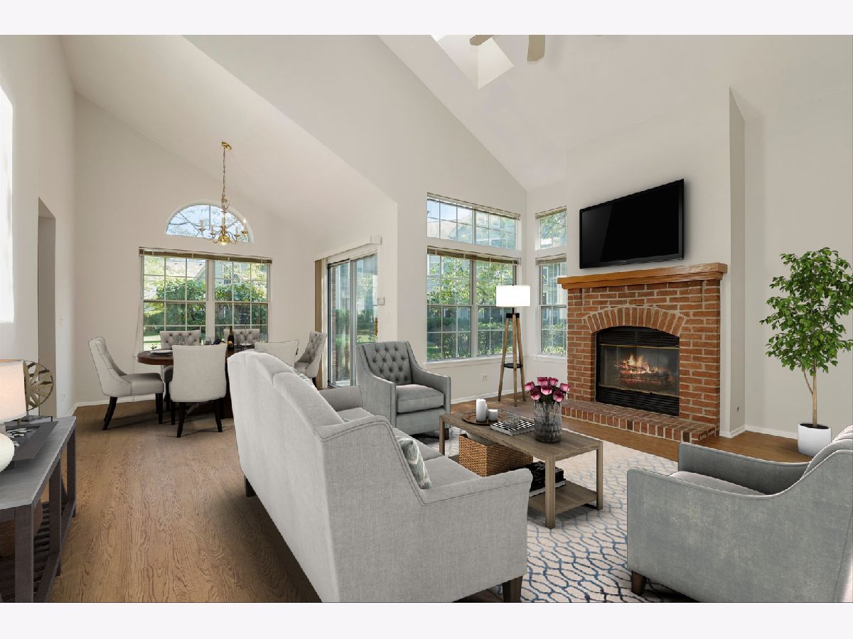 *Great Location across from the Clubhouse in Towne Place of Schaumburg* End Unit backs to greenspace is Freshly Painted Neutral and has Hard surface flooring throughout (except stairs) ~ 2 bedrooms, Main floor office with built-ins, and 2.5 baths. Features: extra windows that stream natural light into the Two-story Living room with Skylights, Transom and Half Round windows. Second floor offers, small Loft area and Two En-suite Bedrooms. Owner's Suite has a Cathedral Ceiling, Walk-in Closet, Double bowl Vanity, and Bathtub with separate Shower. Eat-in Kitchen has a convenient nearby laundry-mud room, New Quartz Counters, New Sink & Faucet and Breakfast area surrounded by windows. Formal Dining area provides access to your private end-unit patio. Bring your inner most HGTV decorating self and make this house your home!! Watch the 3D Tour and Hurry Over ~ Quick Close is Available. Rentals are allowed-No Cap! RE TAX DOES NOT REFLECT A HOMEOWNER EXEMPTION & WILL BE LOWER FOR OWNER OCCUPANT. Backup offers welcome.