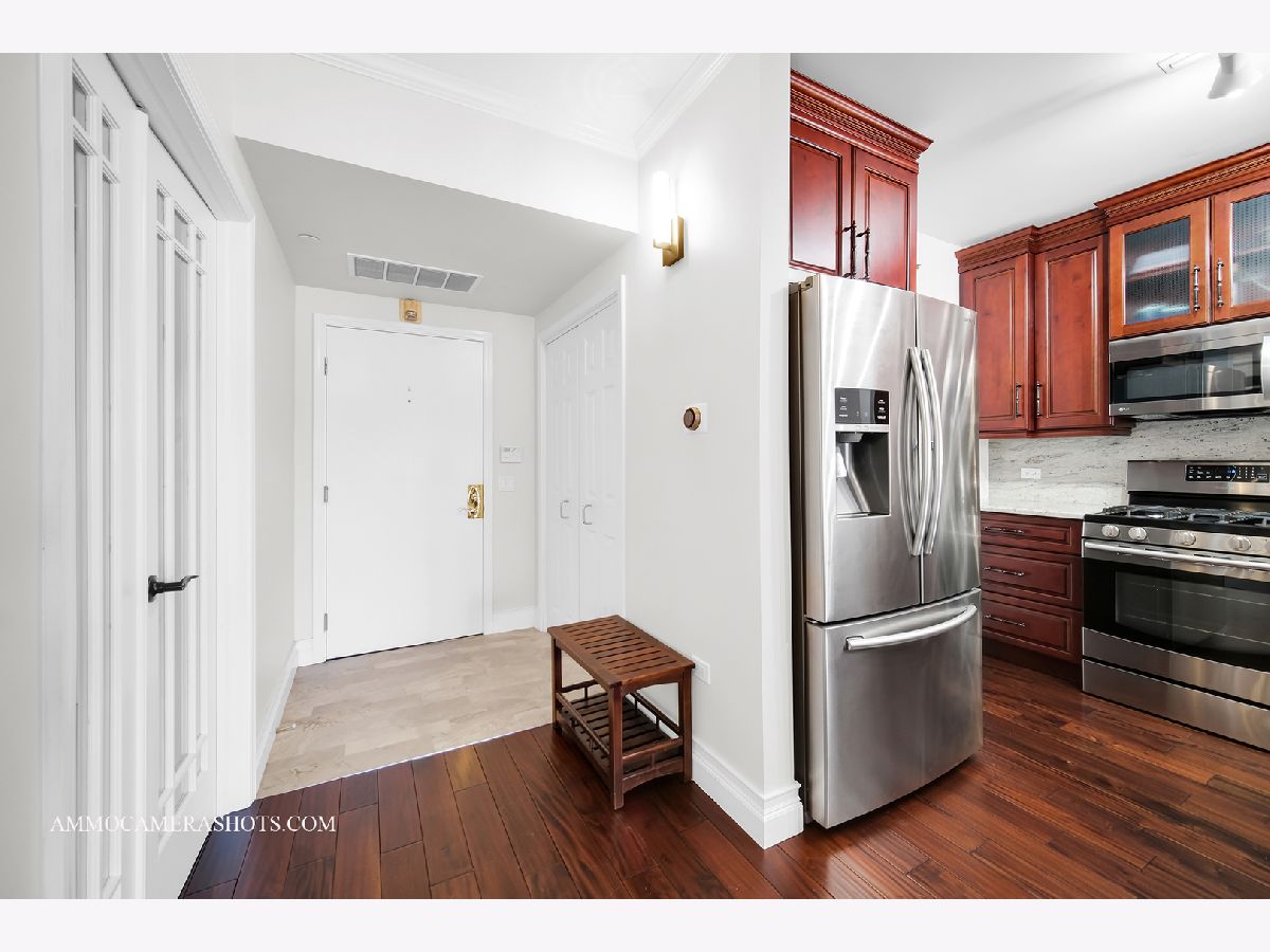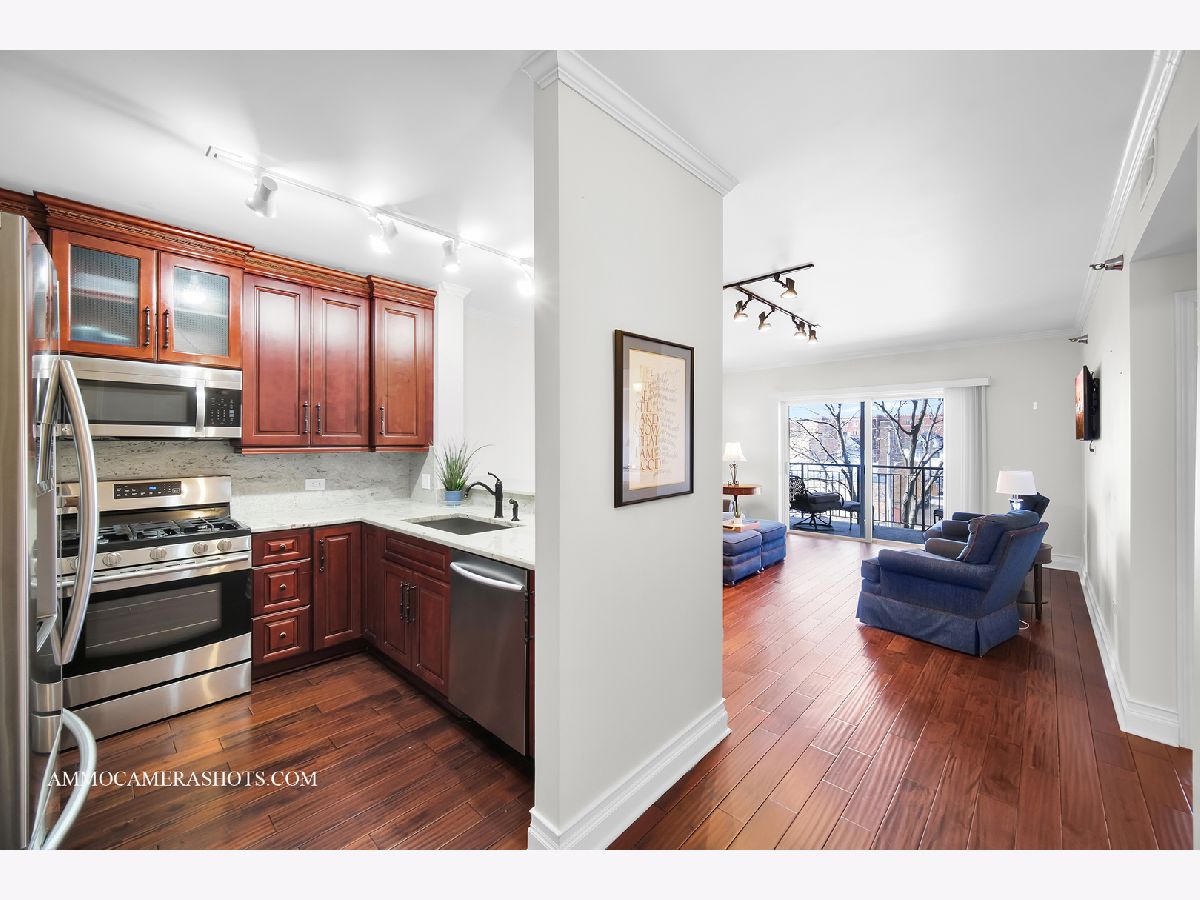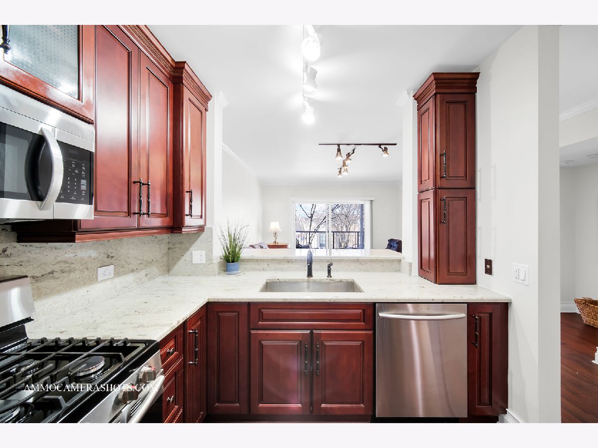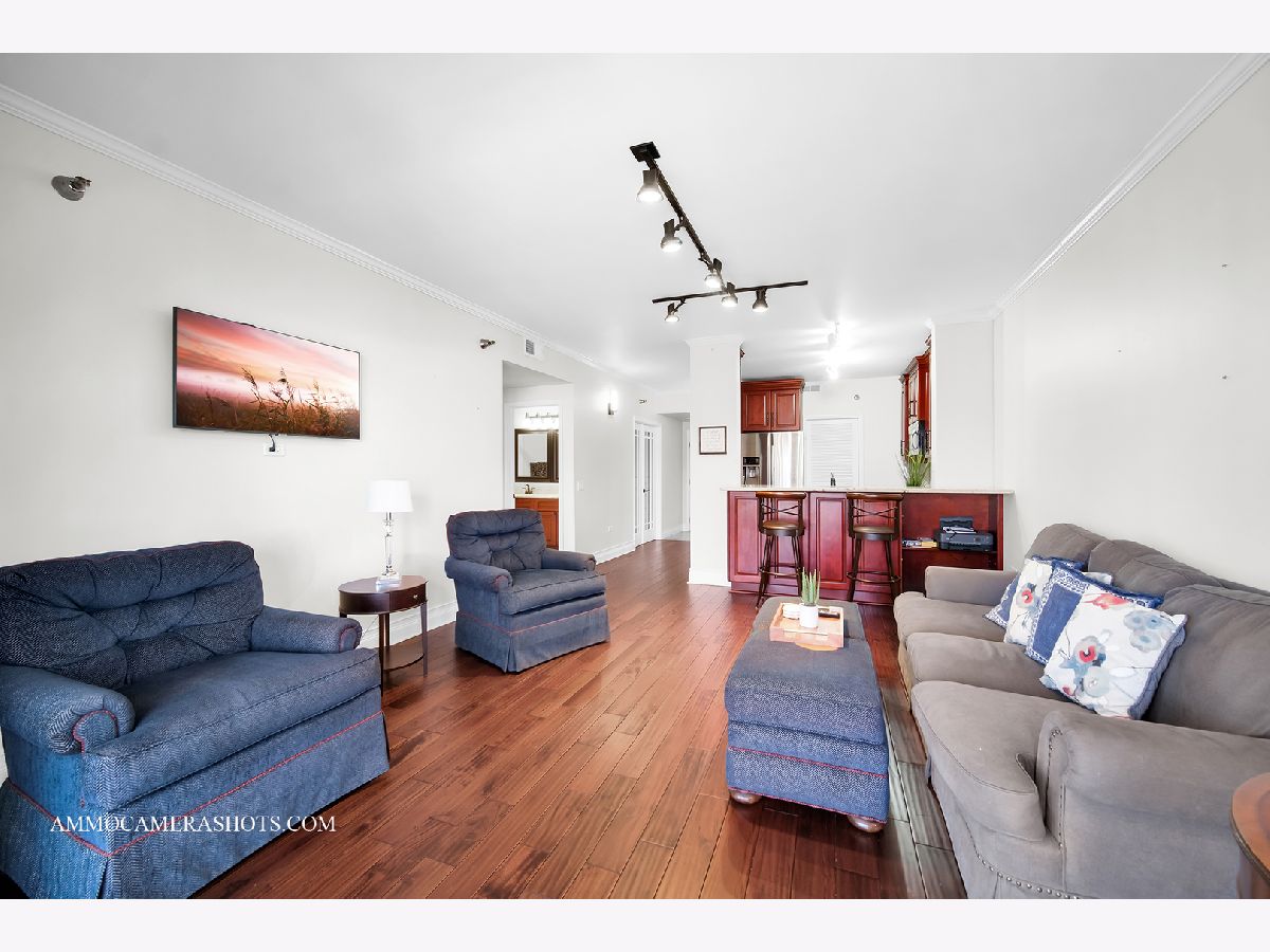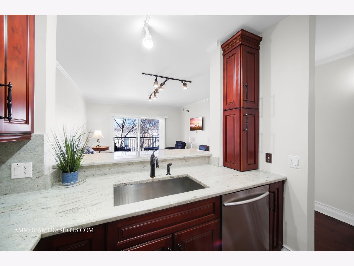 Welcome to Wheaton Place, located in beautiful downtown Wheaton with all it has to offer! Walk to amazing restaurants, quaint coffee hangouts, charming shops, the beloved seasonal French Market, the library, and Metra Station! This 1 Bedroom + Den third floor home with its western exposure allows wonderful natural light throughout, and a private balcony ideally situated for morning coffee, an evening glass of wine... and is the perfect place to watch Wheaton's awesome 4th of July Parade this summer! Expect a welcoming Foyer; stylish bamboo flooring; French doors to the Den/Home Office; a renovated Kitchen with tall cherry cabinetry, granite tops, stainless steel appliances, & peninsula with seating; In Unit Laundry; a spacious Great Room; a renovated Hall Bath; a Primary Bedroom with generously sized walk-in closet, and door to balcony. A Gym is just steps away near the elevators. Additional storage space (#19) is down the hallway in a common area. The deeded parking space (#37) is in first position when entering the garage. Easy suburban style living with a touch of urban conveniences!