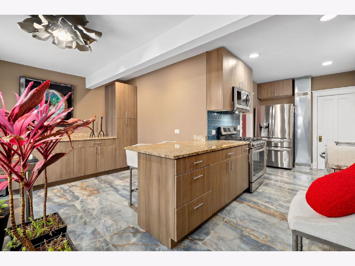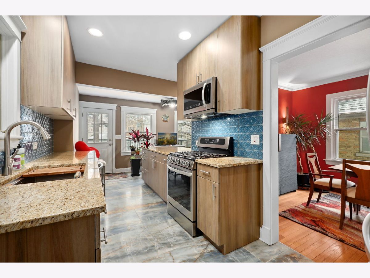 You won't want to miss this charming updated four square. You will notice the beautifully refinished hardwood floors when you enter the cozy living room. Conveniently situated off the dining room is an updated powder room. The fully renovated eat-in kitchen is a chef's dream featuring abundant cabinetry, miles of counter space, a gorgeous custom backsplash along with an island and stainless steel appliances. Truly a knock out kitchen! From here you can access the backyard and the large custom composite deck. All three generous bedrooms are located upstairs along with a lovely fully remodeled bath. There is nothing to do but move in! All in a perfect Oak Park location close to transportation, shopping and all OP has to offer!
