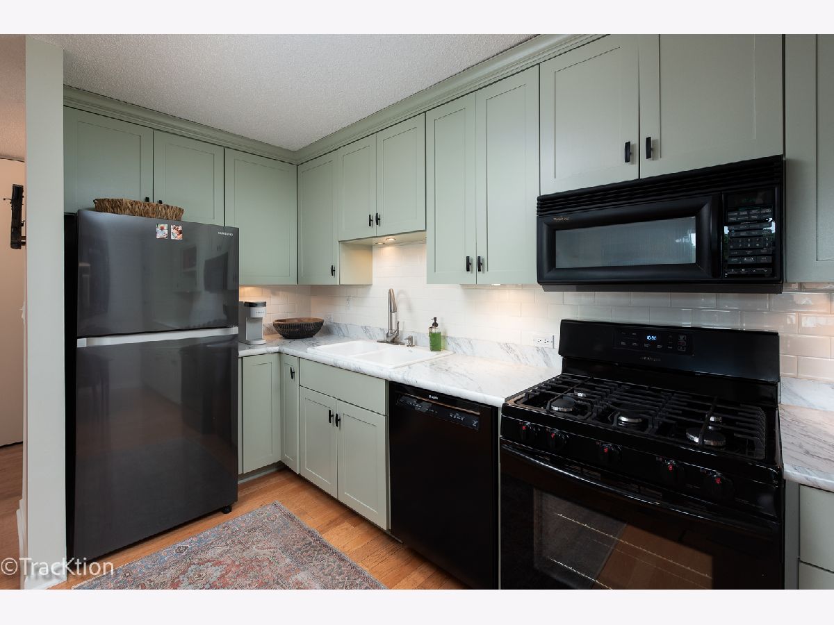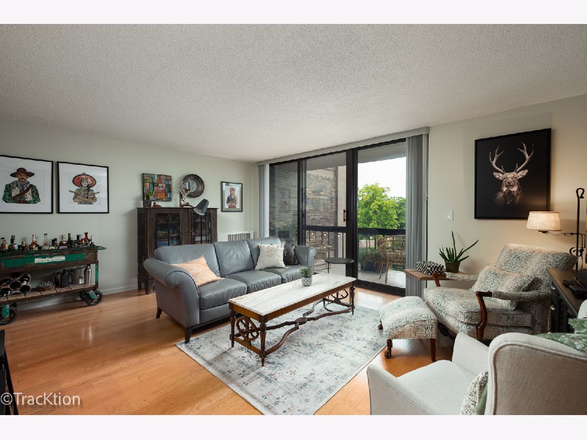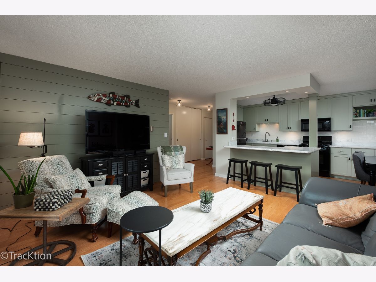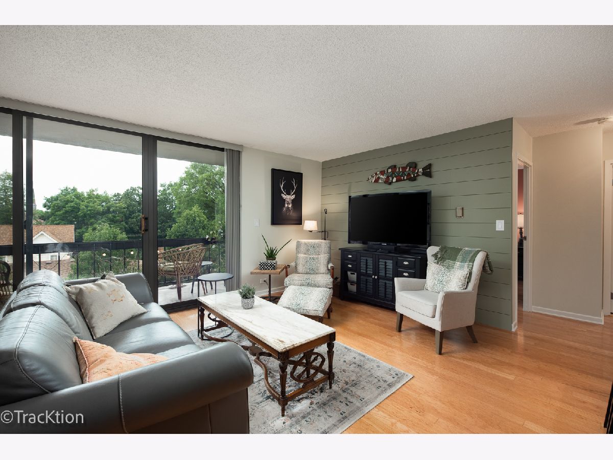 Location, Location, Location! This one bedroom, one bath condo is located just two blocks from downtown Downers Grove and the Main Street Train Station. Updated throughout in 2022 with new light fixtures, paint, wood laminate flooring and shiplap design. Updated kitchen and new appliances in 2017. Kitchen boasts abundant cabinet, counter space and island with seating and is open to the living room. The open floor plan makes this space light and bright. Sliding door opens to large balcony that faces west with a view of the tree tops and lovely neighborhood. Large bedroom has tons of closet space and large window with a great view. Updated bath has walk in shower and plenty of space to store your necessities. Secure building with elevator and laundry facilities. Additional storage on main level of the building. Enjoy Fishel park right next door, and the many restaurants and library just steps away.