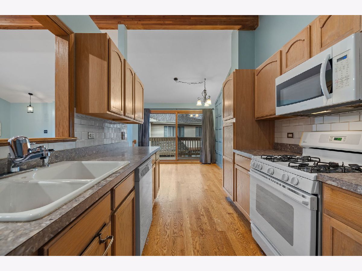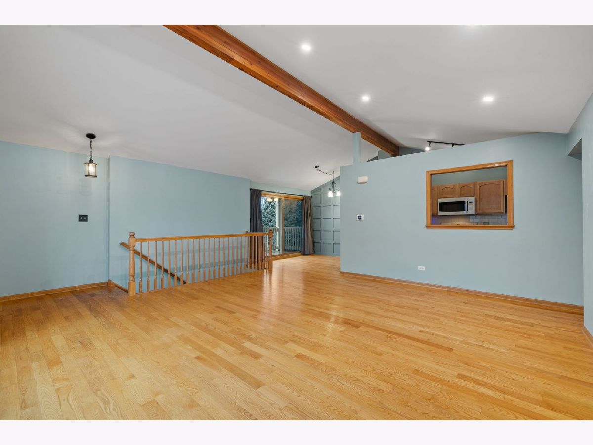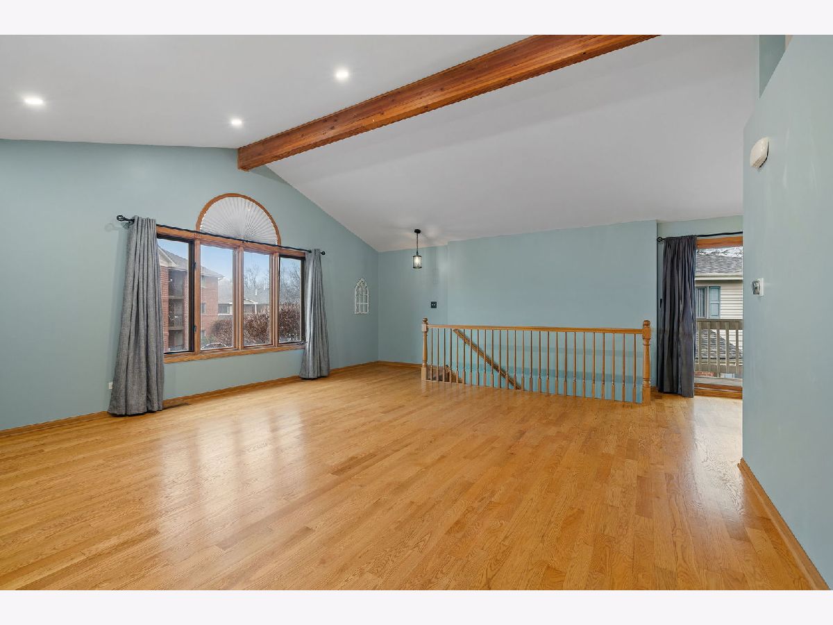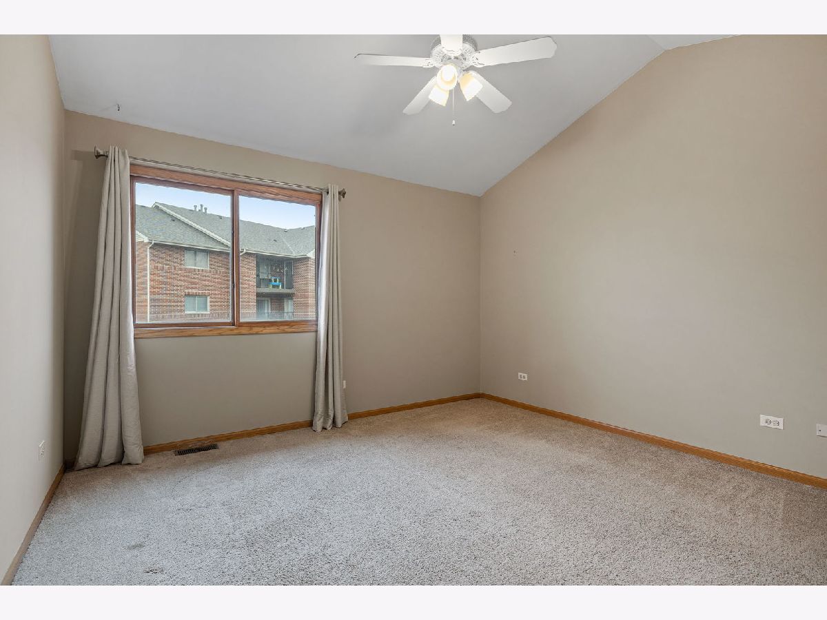 Check out this 2 bedroom/2 full bathroom brick condo with attached 1 car garage. It offers vaulted ceilings, hardwood floors, and a private balcony. Enter this home and head upstairs to the open concept living room which is a great space for entertaining. The dining area offers a custom accent wall and sliding glass door to the balcony. The kitchen has plenty of cabinet space, subway tile backsplash, appliances, and an open cut out view to the living space. Primary bedroom offers a walk-in closet and full bathroom with a stand in shower & stone top vanity. Great size second bedroom with additional full bathroom across the hallway. This condo also has in unit laundry room with washer, dryer, and sink. Head downstairs to the one car attached garage and storage closet. Roof was replaced in 2020 and carpets were just freshly cleaned. Located in the Heritage Cove Manor and right across the street from Moraine Valley Campus which has a state of the art community wellness center. Visit their website for more details on how you can join. Minutes to major roadways, train stations, forest preserves, swallow cliff, and more! Investor Friendly with lower HOA fees.