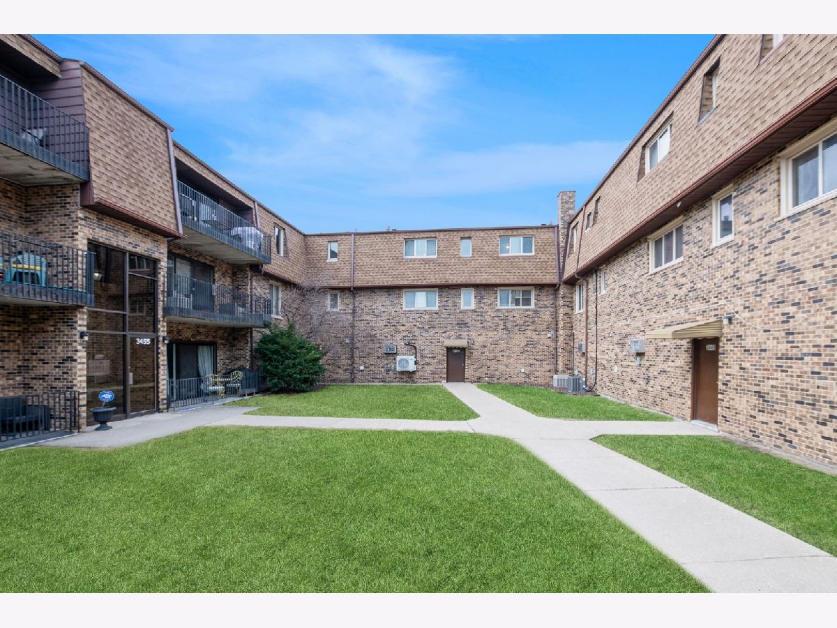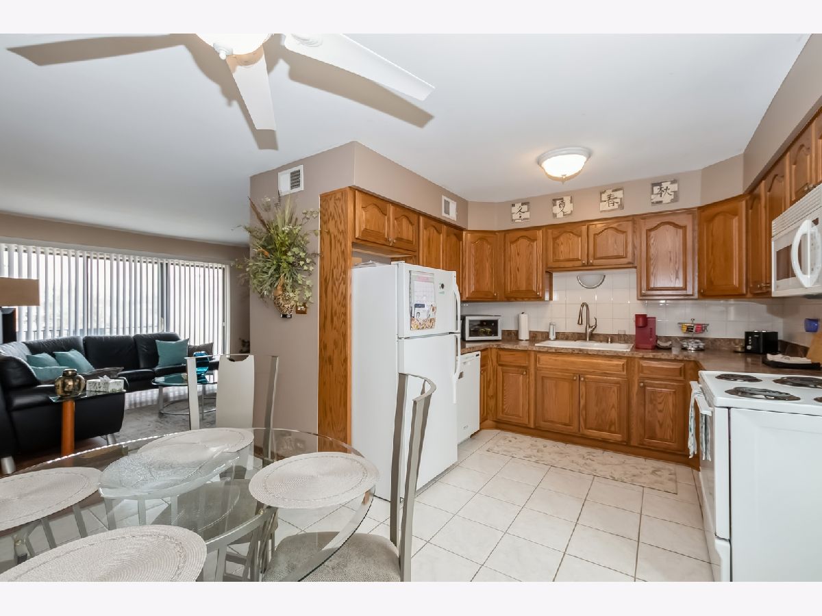 This Mount Greenwood 2 bedroom top floor condo has been lovingly cared for and is move-in-ready! Flexicore building. Condo features gorgeous eat in kitchen with plenty of cabinet and counter space. Spacious living room with coat closet and exposed brick wall which opens up to your own balcony. Beautiful new vinyl wood flooring. Large bathroom with laundry hook up in closet. 2 large bedrooms both with double closets. Low assessments INLCUDE HEAT, water, scavenger, lawncare, and snow removal. Assigned parking space in lot just east of courtyard entryway. Additional laundry and storage in the lower level of building. Fantastic location! Walking distance to retail, park, ice rink, schools, metra, and many restaurants and bars! Come make this beautiful unit your new home today!!