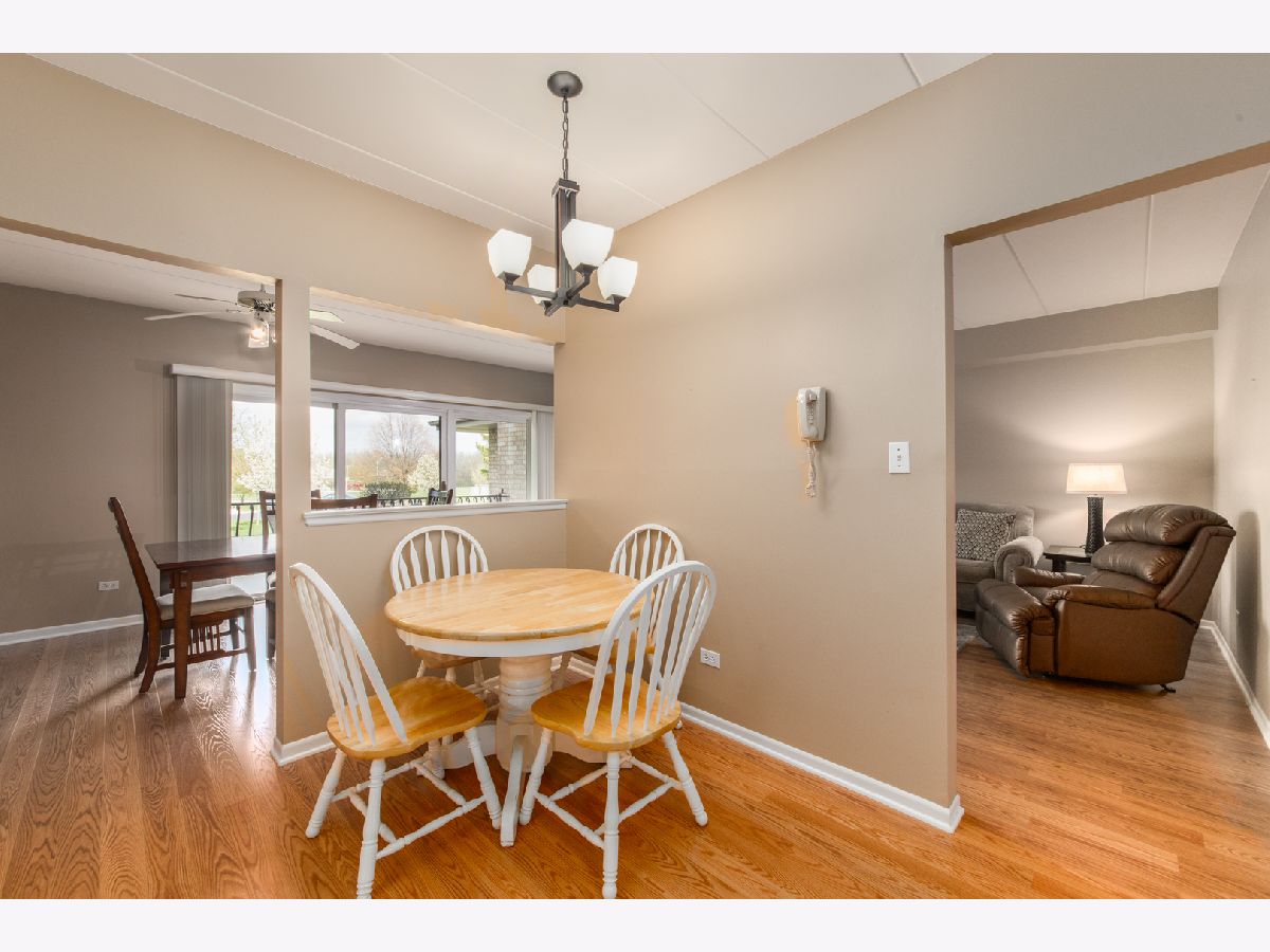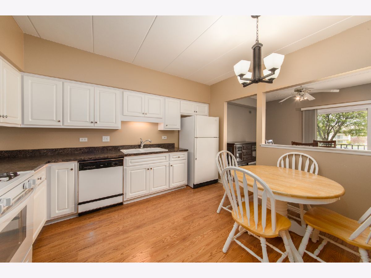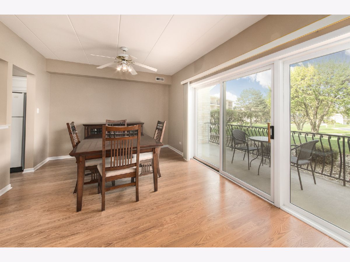Desirable first floor roomy ranch style unit with 2 ample sized bedrooms. Spacious 2 Car detached garage, Pergo flooring in the LR, DR, Kitchen areas. The eat in kitchen has white cabinets, separate dining room, convenient in unit laundry. Prime location with its' proximity to shopping, the train, dining and all Orland has to offer. Clean and immaculate. Estate and being sold "as is".