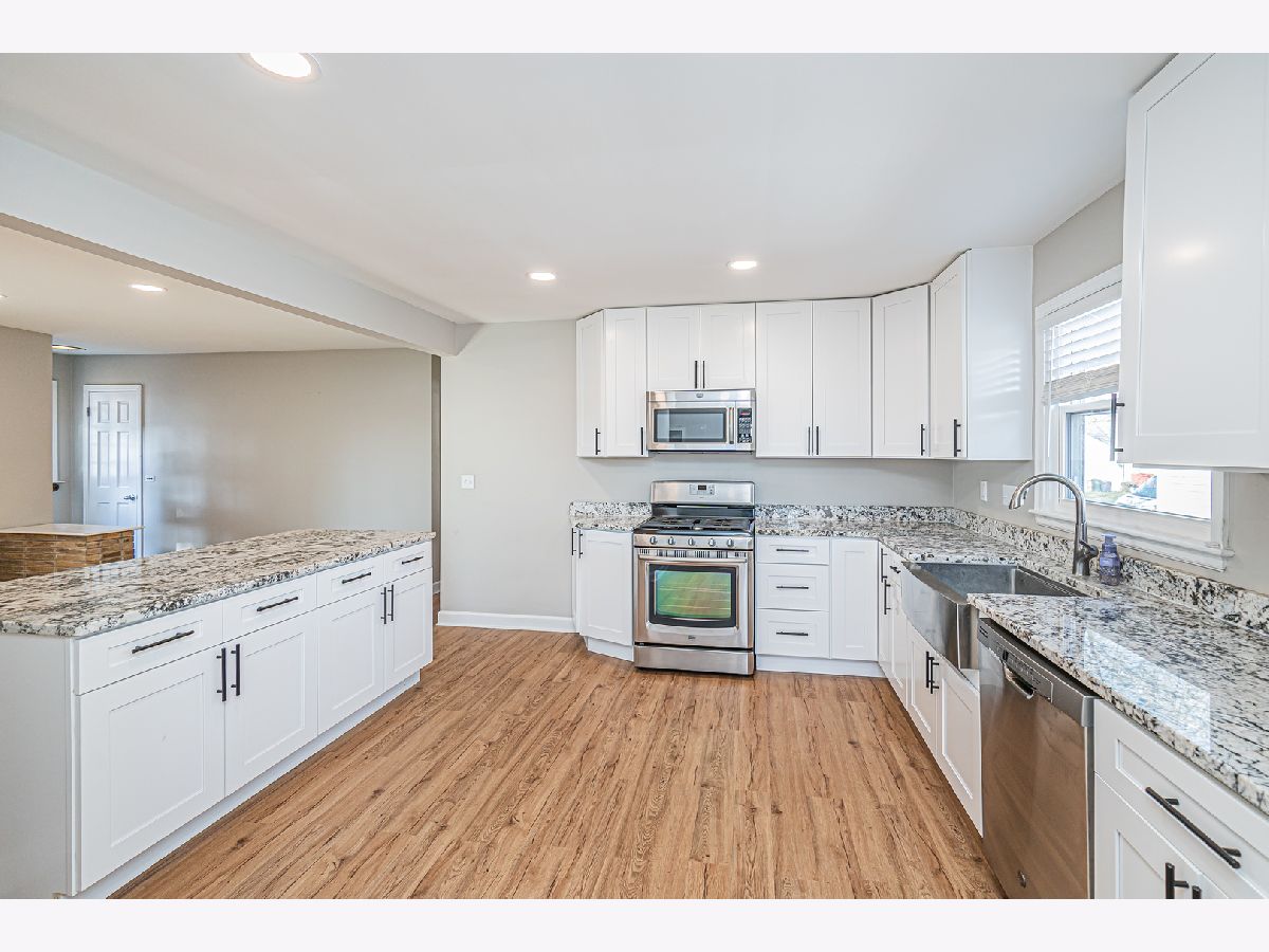 Spectacular and spacious 4 Beds and 2 full bath house that has been recently rehabbed in a quite tree lined street. Main level has 2 spacious bedrooms and a full bath with nice size dining. House features an amazing open concept with tons of storage and closet space. Enjoy cooking in your very own chef's kitchen with top of the line stainless steel appliances, granite countertop, and shaker cabinets. Beautiful fixtures with luxury vinyl flooring. All windows bring plenty of sunshine to the house and floors recently installed. Main level has a bonus room between the garage for extra family entertainment. House also comes with a large patio for enjoyment. Basement is very spacious and fully finished with 2 bedrooms with additional full rehabbed bath. Large recreation Room includes Workshop/Laundry room with sink; allows for plenty of storage throughout. Soak up some sun in the huge fenced backyard for outdoor living or to hosts many BBQ's also has an attached garage.