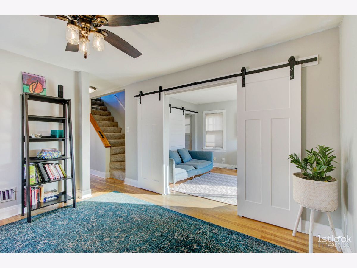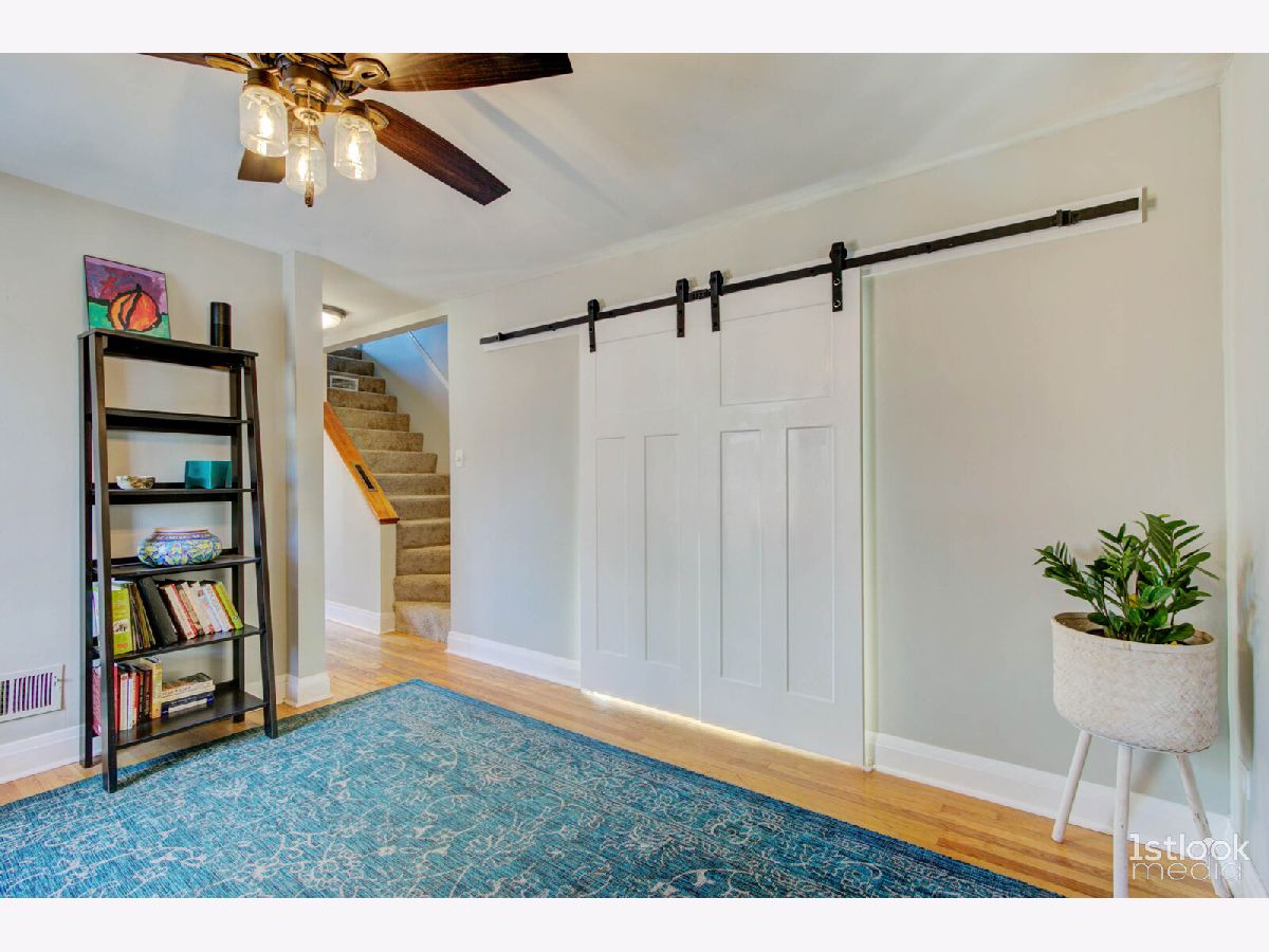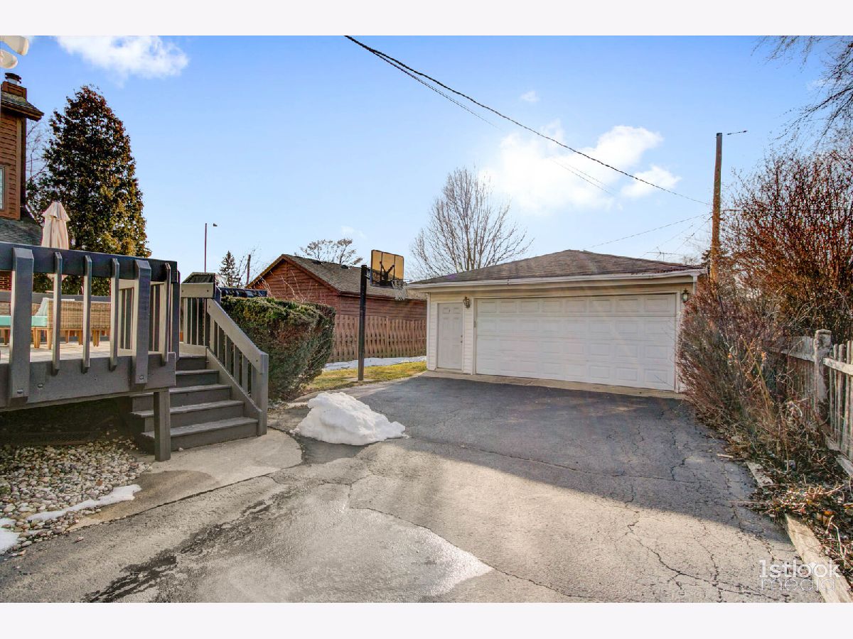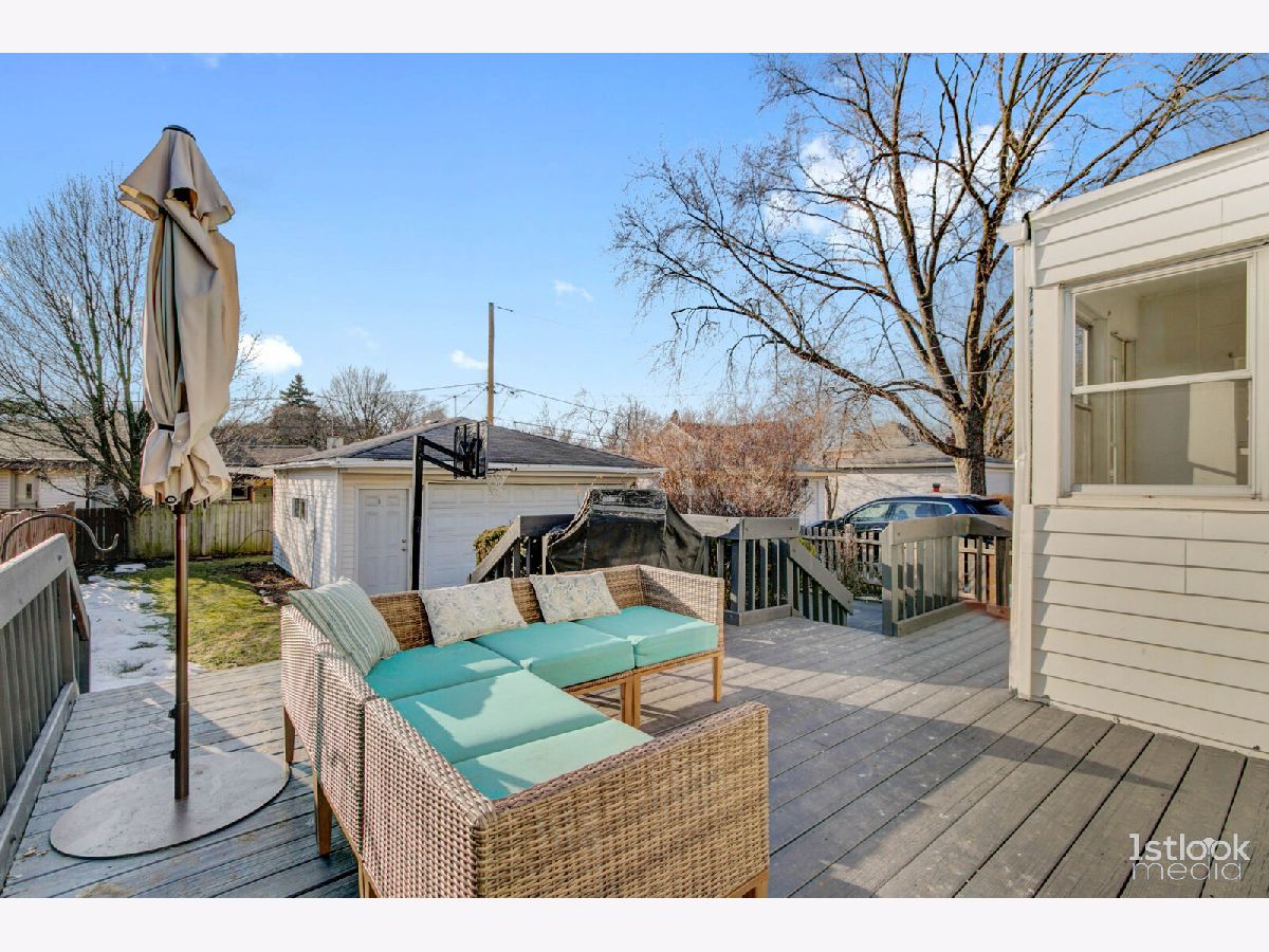 Super charming cape cod with all the living spaces for today's work-from-home owner. Freshly painted and waiting for its new owner. Absolutely great location, super easy access to Dempster / I-94, and only 2 minute drive to Dee Road Metra Station. The long driveway leads to 2 car garage and fully fenced yard. Enjoy outdoor entertaining on huge deck. Kitchen with all new appliances. The full basement adds another 300 SF of living space, with the big ceramic tiled rec room and full bath. Laundry and storage area are huge! Main floor has new bedroom, a flexible space that can also be opened up as a family room. Next to back door is the perfect office space and main floor full bath. Upstairs is a very large bedroom spanning the front of the house, with ample closet space, and new carpeting.