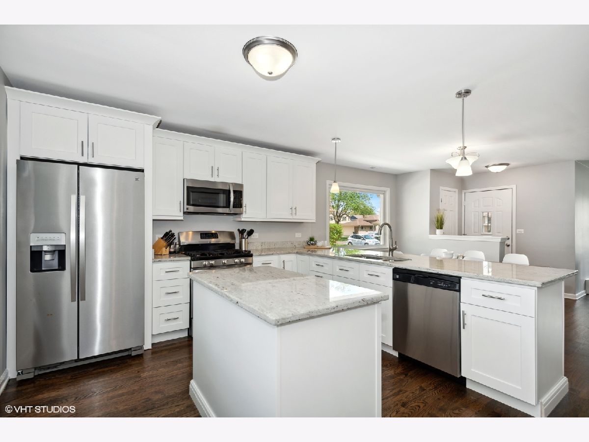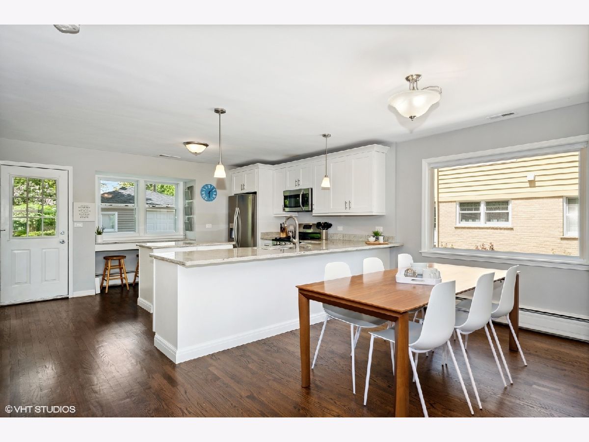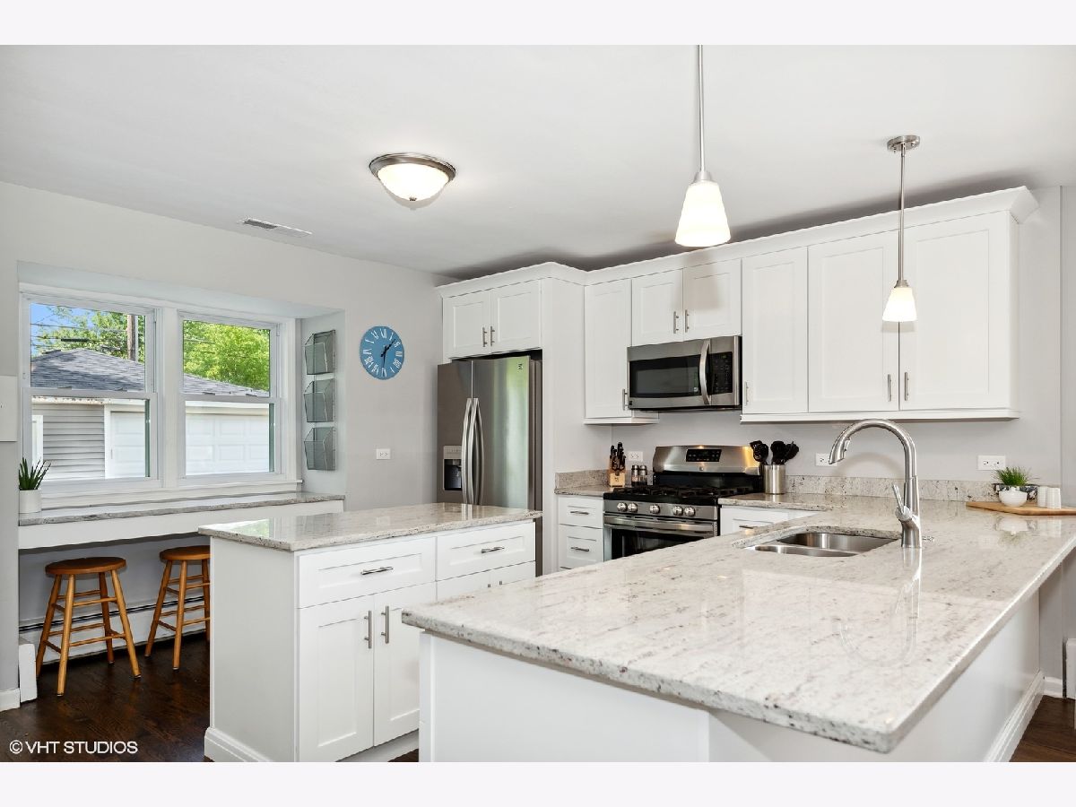 One of a kind and stunning open concept updated home on popular tree lined street, just blocks to town. Gracious Foyer entryway with gleaming hardwood floors leads into the sun drenched Living Room with large windows and opens gracefully into the oversized Dining Room and Kitchen making entertaining a breeze. The Kitchen features granite counters, white shaker cabinetry, stainless steel appliances, island, built-in breakfast bar and pantry for all your Costco supplies! Upper level highlights include spacious Owners Suite with two double door closets, two additional bedrooms with ample closet space and all share exquisite Hall bath with quartz top vanity and tub with subway tiled surround. Lower Level is a dream for family entertainment with fabulous Recreation Room, Play area, Full Bath with porcelain tiled flooring / shower surround and Laundry Room with LG washer/dryer. Not only is this home turnkey but the new owners will enjoy lower energy bills thanks to the maintenance-free SunPower solar panels that were installed last year by locally-based Certasun! Other delightful finds in this home: concrete driveway, extra large garage with spacious attached workshop, newer roof, siding, soffit, fascia, gutters, siding & more! Located in award winning Olive Mary Stitt & Hersey High School districts. Just blocks to downtown Arlington Heights, Metra, shops, dining, schools, parks and recreation. Check out 3D tour and video!